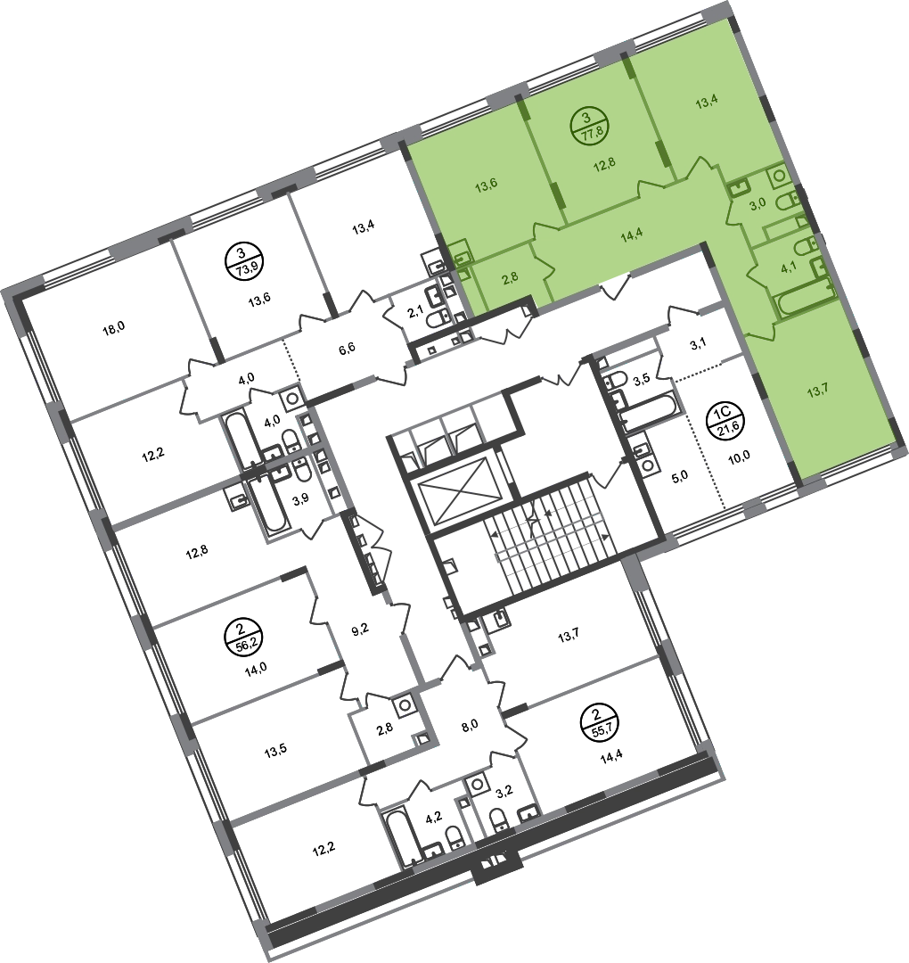 Продается трехкомнатная квартира в городе-парке "Переделкино Ближнее". Общая площадь квартиры - 77,8 кв. м, этаж 2 из 17. Срок сдачи - 3 квартал 2026 года. Тип дома - монолитный. Город-парк "Переделкино Ближнее" расположен в 8 км от МКАД по Боровскому шоссе. ТРАНСПОРТНАЯ ДОСТУПНОСТЬ: - 10 минут пешком до МЦД-4 «Мичуринец» - 15 минут пешком до станции метро «Рассказовка» Солнцевской линии - 10 минут на машине до станции метро «Филатов Луг» Сокольнической линии - 30 минут до центра Москвы - Прямой выезд на дорогу Солнцево-Бутово-Варшавское шоссе, минуя жилую застройку всего ЖК БЛАГОУСТРОЙСТВО: Новая фаза строительства уникальна своим расположением - в шаговой доступности парк на Лукинской улицы, река Алёшинка. На территории 18 фазы строительства будут построены 2 монолитных жилых корпуса повышенного комфорта разной этажности 7, 17 этажей. А также многоуровневый паркинг на 300 м/мест. Вход в жилую часть корпусов каждой секции осуществляется с двух сторон - с наружного контура жилого дома и со стороны дворового пространства, предусмотрен безбарьерный доступ. ВНУТРЕННЯЯ ИНФРАСТРУКТУРА: В рамках данной фазы, для жителей предусмотрено создание пространства, свободного от машин - благоустроенные огороженные дворы с современными детскими и спортивными площадками, разделенными на зоны по возрастам. На территории проекта есть все необходимые объекты социальной и бытовой инфраструктуры: детские сады, школы, магазины, паркинги, аптеки, поликлиники, пожарная часть и др. АВТОРСКИЙ ДИЗАЙН: Современный монолитный дом переменной этажности 7 и 17 этажей. На фасаде предусмотрены корзины для установки кондиционеров. Входные группы домов выполнены по авторскому дизайну. Колясочные располагаются при входе, велопарковка на -1 этаже.О застройщике