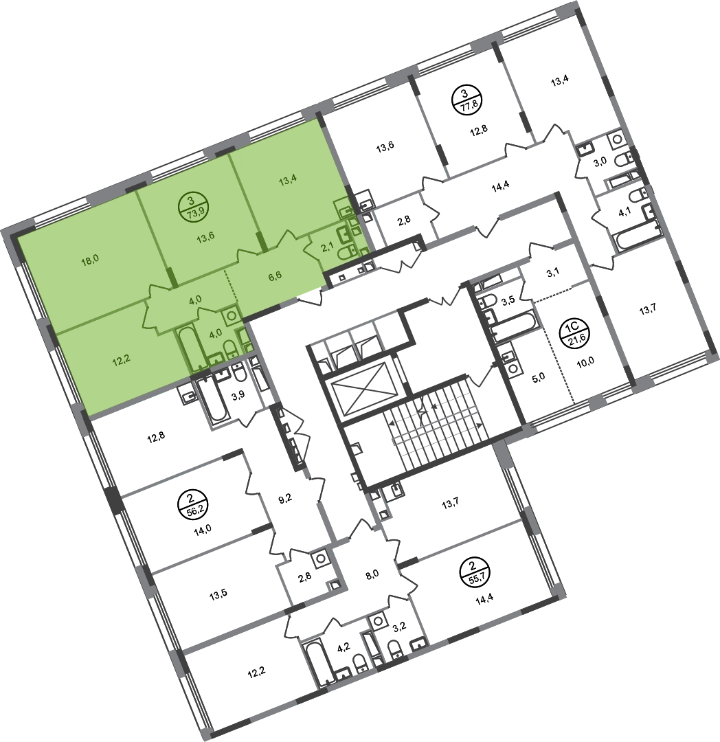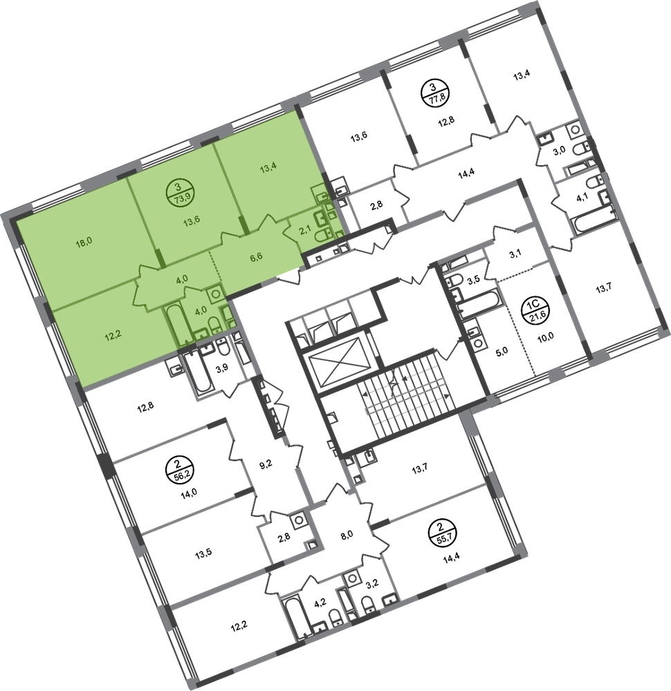 Продается трехкомнатная квартира в городе-парке "Переделкино Ближнее". Общая площадь квартиры - 73,9 кв. м, этаж 4 из 17. Срок сдачи - 3 квартал 2026 года. Тип дома - монолитный. Город-парк "Переделкино Ближнее" расположен в 8 км от МКАД по Боровскому шоссе. ТРАНСПОРТНАЯ ДОСТУПНОСТЬ: - 10 минут пешком до МЦД-4 «Мичуринец» - 15 минут пешком до станции метро «Рассказовка» Солнцевской линии - 10 минут на машине до станции метро «Филатов Луг» Сокольнической линии - 30 минут до центра Москвы - Прямой выезд на дорогу Солнцево-Бутово-Варшавское шоссе, минуя жилую застройку всего ЖК БЛАГОУСТРОЙСТВО: Новая фаза строительства уникальна своим расположением - в шаговой доступности парк на Лукинской улицы, река Алёшинка. На территории 18 фазы строительства будут построены 2 монолитных жилых корпуса повышенного комфорта разной этажности 7, 17 этажей. А также многоуровневый паркинг на 300 м/мест. Вход в жилую часть корпусов каждой секции осуществляется с двух сторон - с наружного контура жилого дома и со стороны дворового пространства, предусмотрен безбарьерный доступ. ВНУТРЕННЯЯ ИНФРАСТРУКТУРА: В рамках данной фазы, для жителей предусмотрено создание пространства, свободного от машин - благоустроенные огороженные дворы с современными детскими и спортивными площадками, разделенными на зоны по возрастам. На территории проекта есть все необходимые объекты социальной и бытовой инфраструктуры: детские сады, школы, магазины, паркинги, аптеки, поликлиники, пожарная часть и др. АВТОРСКИЙ ДИЗАЙН: Современный монолитный дом переменной этажности 7 и 17 этажей. На фасаде предусмотрены корзины для установки кондиционеров. Входные группы домов выполнены по авторскому дизайну. Колясочные располагаются при входе, велопарковка на -1 этаже.О застройщике