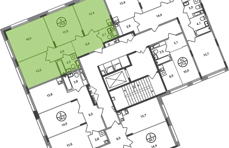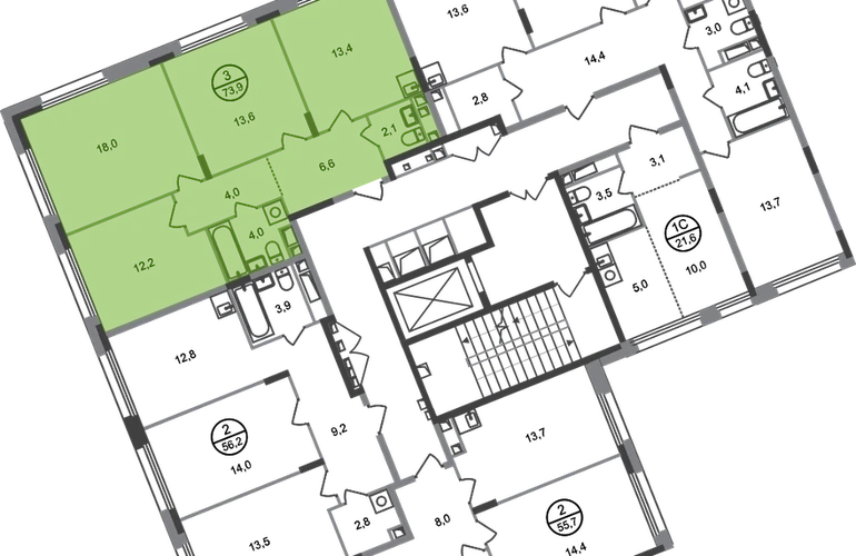 Продается трехкомнатная квартира в городе-парке "Переделкино Ближнее". Общая площадь квартиры - 73,9 кв. м, этаж 4 из 17. Срок сдачи - 3 квартал 2026 года. Тип дома - монолитный. Город-парк "Переделкино Ближнее" расположен в 8 км от МКАД по Боровскому шоссе. ТРАНСПОРТНАЯ ДОСТУПНОСТЬ: - 10 минут пешком до МЦД-4 «Мичуринец» - 15 минут пешком до станции метро «Рассказовка» Солнцевской линии - 10 минут на машине до станции метро «Филатов Луг» Сокольнической линии - 30 минут до центра Москвы - Прямой выезд на дорогу Солнцево-Бутово-Варшавское шоссе, минуя жилую застройку всего ЖК БЛАГОУСТРОЙСТВО: Новая фаза строительства уникальна своим расположением - в шаговой доступности парк на Лукинской улицы, река Алёшинка. На территории 18 фазы строительства будут построены 2 монолитных жилых корпуса повышенного комфорта разной этажности 7, 17 этажей. А также многоуровневый паркинг на 300 м/мест. Вход в жилую часть корпусов каждой секции осуществляется с двух сторон - с наружного контура жилого дома и со стороны дворового пространства, предусмотрен безбарьерный доступ. ВНУТРЕННЯЯ ИНФРАСТРУКТУРА: В рамках данной фазы, для жителей предусмотрено создание пространства, свободного от машин - благоустроенные огороженные дворы с современными детскими и спортивными площадками, разделенными на зоны по возрастам. На территории проекта есть все необходимые объекты социальной и бытовой инфраструктуры: детские сады, школы, магазины, паркинги, аптеки, поликлиники, пожарная часть и др. АВТОРСКИЙ ДИЗАЙН: Современный монолитный дом переменной этажности 7 и 17 этажей. На фасаде предусмотрены корзины для установки кондиционеров. Входные группы домов выполнены по авторскому дизайну. Колясочные располагаются при входе, велопарковка на -1 этаже.О застройщике