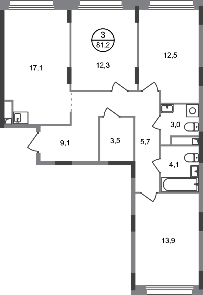 Продается трехкомнатная квартира в городе-парке "Переделкино Ближнее". Общая площадь квартиры - 81,2 кв. м, этаж 5 из 17. Срок сдачи - 3 квартал 2026 года. Тип дома - монолитный. Город-парк "Переделкино Ближнее" расположен в 8 км от МКАД по Боровскому шоссе. ТРАНСПОРТНАЯ ДОСТУПНОСТЬ: - 10 минут пешком до МЦД-4 «Мичуринец» - 15 минут пешком до станции метро «Рассказовка» Солнцевской линии - 10 минут на машине до станции метро «Филатов Луг» Сокольнической линии - 30 минут до центра Москвы - Прямой выезд на дорогу Солнцево-Бутово-Варшавское шоссе, минуя жилую застройку всего ЖК БЛАГОУСТРОЙСТВО: Новая фаза строительства уникальна своим расположением - в шаговой доступности парк на Лукинской улицы, река Алёшинка. На территории 18 фазы строительства будут построены 2 монолитных жилых корпуса повышенного комфорта разной этажности 7, 17 этажей. А также многоуровневый паркинг на 300 м/мест. Вход в жилую часть корпусов каждой секции осуществляется с двух сторон - с наружного контура жилого дома и со стороны дворового пространства, предусмотрен безбарьерный доступ. ВНУТРЕННЯЯ ИНФРАСТРУКТУРА: В рамках данной фазы, для жителей предусмотрено создание пространства, свободного от машин - благоустроенные огороженные дворы с современными детскими и спортивными площадками, разделенными на зоны по возрастам. На территории проекта есть все необходимые объекты социальной и бытовой инфраструктуры: детские сады, школы, магазины, паркинги, аптеки, поликлиники, пожарная часть и др. АВТОРСКИЙ ДИЗАЙН: Современный монолитный дом переменной этажности 7 и 17 этажей. На фасаде предусмотрены корзины для установки кондиционеров. Входные группы домов выполнены по авторскому дизайну. Колясочные располагаются при входе, велопарковка на -1 этаже.О застройщике