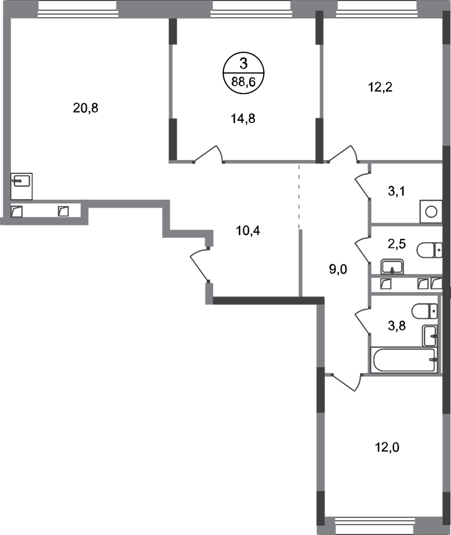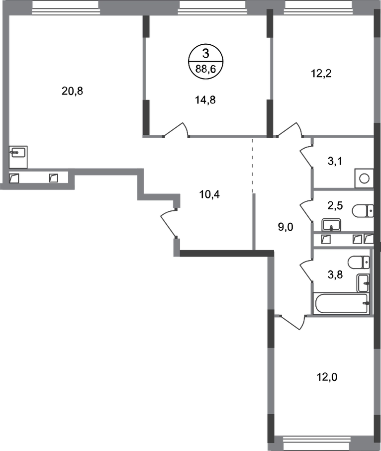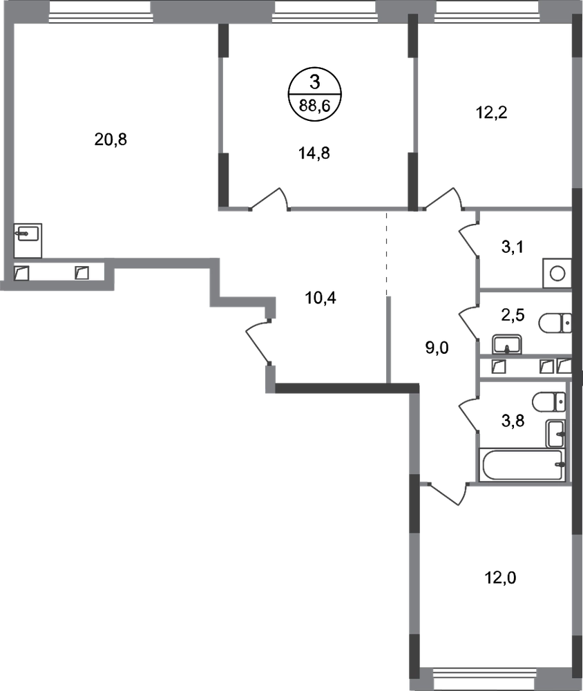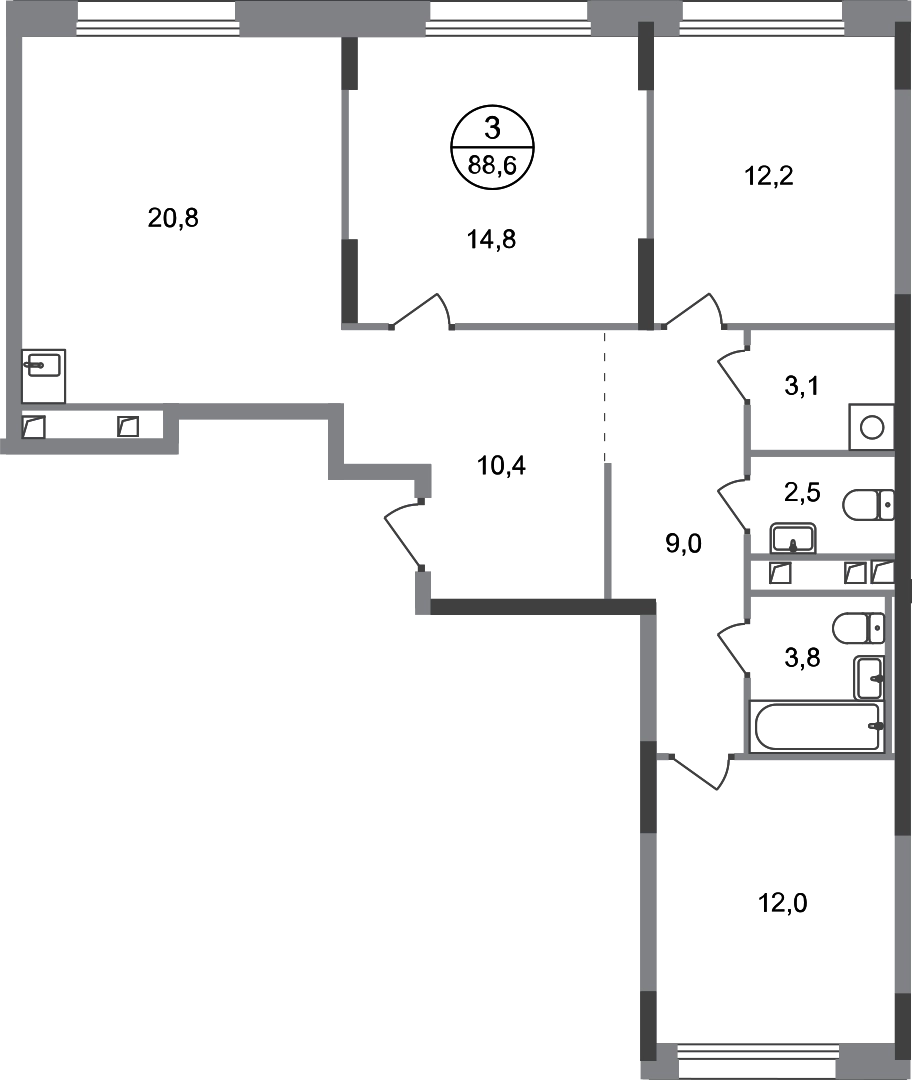 Продается трехкомнатная квартира в городе-парке "Переделкино Ближнее". Общая площадь квартиры - 88,6 кв. м, этаж 2 из 17. Срок сдачи - 3 квартал 2026 года. Тип дома - монолитный. Город-парк "Переделкино Ближнее" расположен в 8 км от МКАД по Боровскому шоссе. ТРАНСПОРТНАЯ ДОСТУПНОСТЬ: - 10 минут пешком до МЦД-4 «Мичуринец» - 15 минут пешком до станции метро «Рассказовка» Солнцевской линии - 10 минут на машине до станции метро «Филатов Луг» Сокольнической линии - 30 минут до центра Москвы - Прямой выезд на дорогу Солнцево-Бутово-Варшавское шоссе, минуя жилую застройку всего ЖК БЛАГОУСТРОЙСТВО: Новая фаза строительства уникальна своим расположением - в шаговой доступности парк на Лукинской улицы, река Алёшинка. На территории 18 фазы строительства будут построены 2 монолитных жилых корпуса повышенного комфорта разной этажности 7, 17 этажей. А также многоуровневый паркинг на 300 м/мест. Вход в жилую часть корпусов каждой секции осуществляется с двух сторон - с наружного контура жилого дома и со стороны дворового пространства, предусмотрен безбарьерный доступ. ВНУТРЕННЯЯ ИНФРАСТРУКТУРА: В рамках данной фазы, для жителей предусмотрено создание пространства, свободного от машин - благоустроенные огороженные дворы с современными детскими и спортивными площадками, разделенными на зоны по возрастам. На территории проекта есть все необходимые объекты социальной и бытовой инфраструктуры: детские сады, школы, магазины, паркинги, аптеки, поликлиники, пожарная часть и др. АВТОРСКИЙ ДИЗАЙН: Современный монолитный дом переменной этажности 7 и 17 этажей. На фасаде предусмотрены корзины для установки кондиционеров. Входные группы домов выполнены по авторскому дизайну. Колясочные располагаются при входе, велопарковка на -1 этаже.О застройщике
