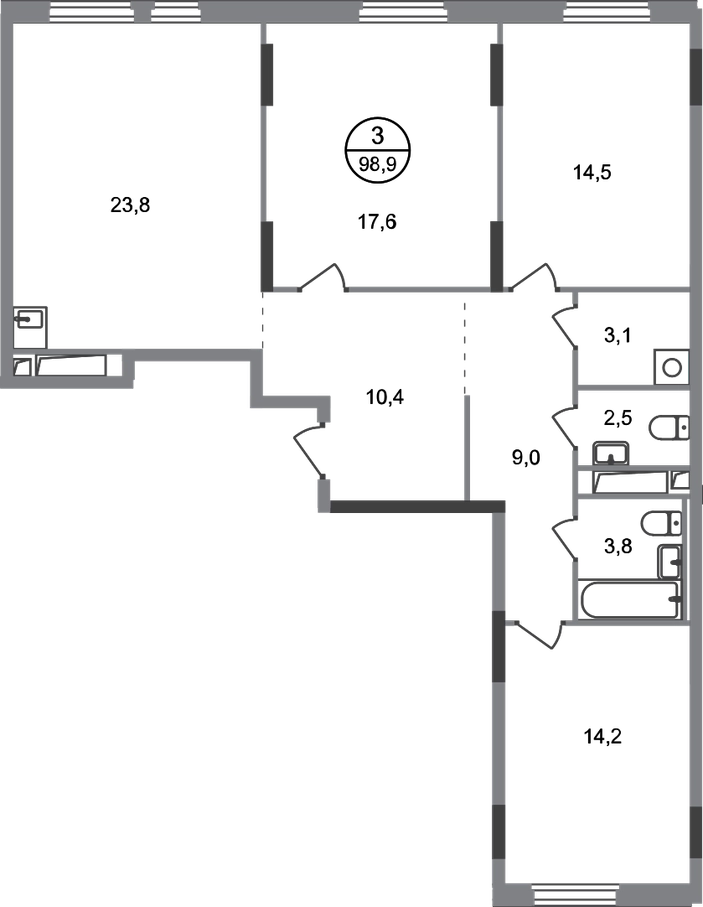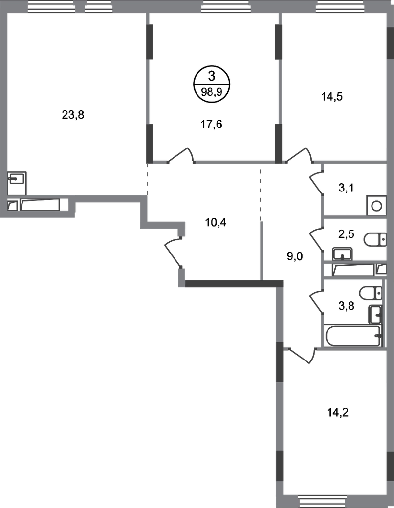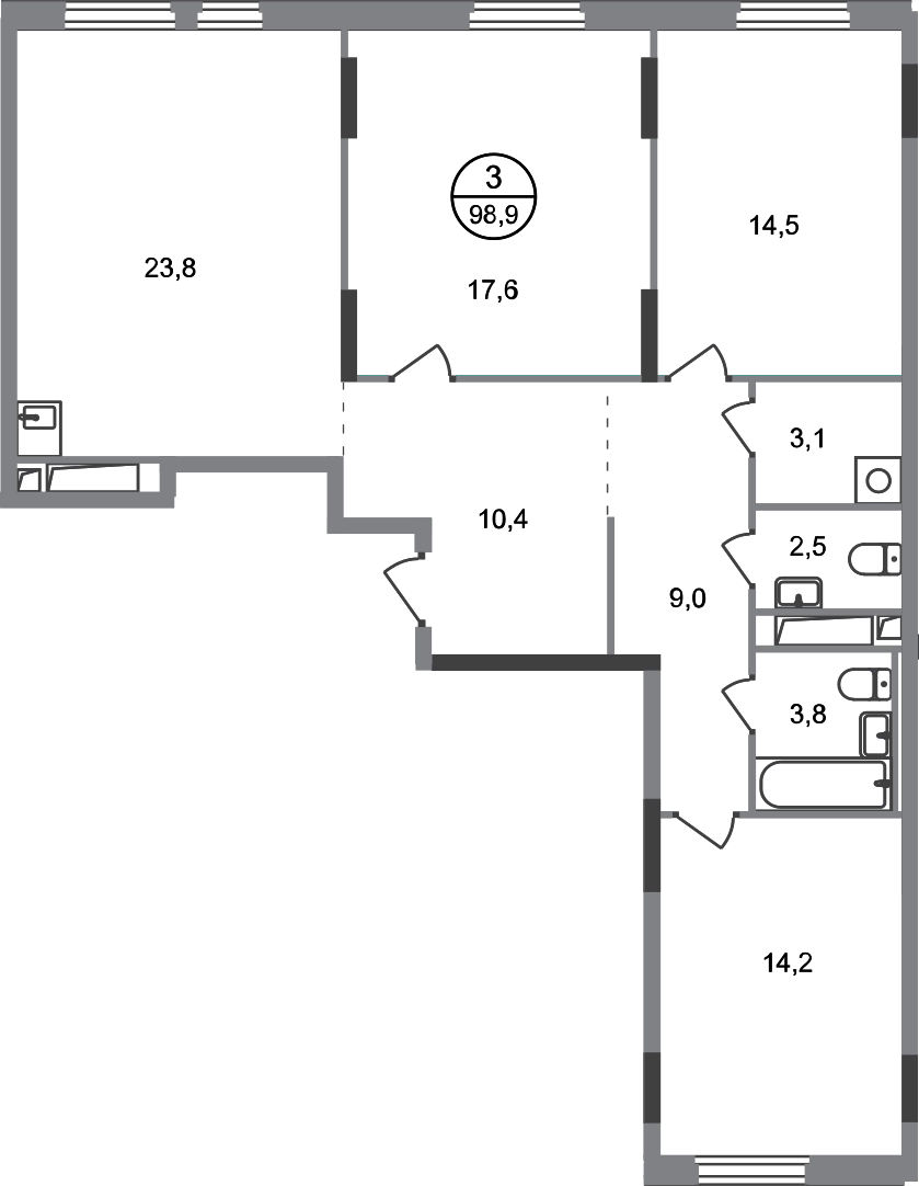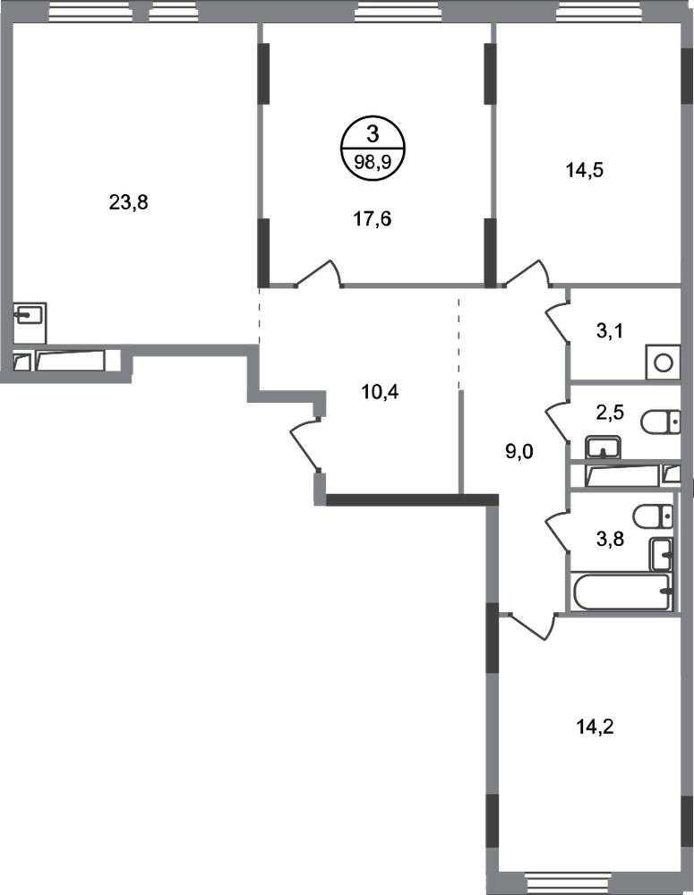 Продается трехкомнатная квартира в городе-парке "Переделкино Ближнее". Общая площадь квартиры - 98,9 кв. м, этаж 8 из 17. Срок сдачи - 3 квартал 2026 года. Тип дома - монолитный. Город-парк "Переделкино Ближнее" расположен в 8 км от МКАД по Боровскому шоссе. ТРАНСПОРТНАЯ ДОСТУПНОСТЬ: - 10 минут пешком до МЦД-4 «Мичуринец» - 15 минут пешком до станции метро «Рассказовка» Солнцевской линии - 10 минут на машине до станции метро «Филатов Луг» Сокольнической линии - 30 минут до центра Москвы - Прямой выезд на дорогу Солнцево-Бутово-Варшавское шоссе, минуя жилую застройку всего ЖК БЛАГОУСТРОЙСТВО: Новая фаза строительства уникальна своим расположением - в шаговой доступности парк на Лукинской улицы, река Алёшинка. На территории 18 фазы строительства будут построены 2 монолитных жилых корпуса повышенного комфорта разной этажности 7, 17 этажей. А также многоуровневый паркинг на 300 м/мест. Вход в жилую часть корпусов каждой секции осуществляется с двух сторон - с наружного контура жилого дома и со стороны дворового пространства, предусмотрен безбарьерный доступ. ВНУТРЕННЯЯ ИНФРАСТРУКТУРА: В рамках данной фазы, для жителей предусмотрено создание пространства, свободного от машин - благоустроенные огороженные дворы с современными детскими и спортивными площадками, разделенными на зоны по возрастам. На территории проекта есть все необходимые объекты социальной и бытовой инфраструктуры: детские сады, школы, магазины, паркинги, аптеки, поликлиники, пожарная часть и др. АВТОРСКИЙ ДИЗАЙН: Современный монолитный дом переменной этажности 7 и 17 этажей. На фасаде предусмотрены корзины для установки кондиционеров. Входные группы домов выполнены по авторскому дизайну. Колясочные располагаются при входе, велопарковка на -1 этаже.О застройщике