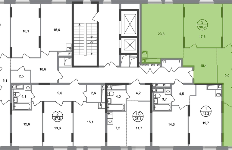 Продается трехкомнатная квартира в городе-парке "Переделкино Ближнее". Общая площадь квартиры - 98,9 кв. м, этаж 8 из 17. Срок сдачи - 3 квартал 2026 года. Тип дома - монолитный. Город-парк "Переделкино Ближнее" расположен в 8 км от МКАД по Боровскому шоссе. ТРАНСПОРТНАЯ ДОСТУПНОСТЬ: - 10 минут пешком до МЦД-4 «Мичуринец» - 15 минут пешком до станции метро «Рассказовка» Солнцевской линии - 10 минут на машине до станции метро «Филатов Луг» Сокольнической линии - 30 минут до центра Москвы - Прямой выезд на дорогу Солнцево-Бутово-Варшавское шоссе, минуя жилую застройку всего ЖК БЛАГОУСТРОЙСТВО: Новая фаза строительства уникальна своим расположением - в шаговой доступности парк на Лукинской улицы, река Алёшинка. На территории 18 фазы строительства будут построены 2 монолитных жилых корпуса повышенного комфорта разной этажности 7, 17 этажей. А также многоуровневый паркинг на 300 м/мест. Вход в жилую часть корпусов каждой секции осуществляется с двух сторон - с наружного контура жилого дома и со стороны дворового пространства, предусмотрен безбарьерный доступ. ВНУТРЕННЯЯ ИНФРАСТРУКТУРА: В рамках данной фазы, для жителей предусмотрено создание пространства, свободного от машин - благоустроенные огороженные дворы с современными детскими и спортивными площадками, разделенными на зоны по возрастам. На территории проекта есть все необходимые объекты социальной и бытовой инфраструктуры: детские сады, школы, магазины, паркинги, аптеки, поликлиники, пожарная часть и др. АВТОРСКИЙ ДИЗАЙН: Современный монолитный дом переменной этажности 7 и 17 этажей. На фасаде предусмотрены корзины для установки кондиционеров. Входные группы домов выполнены по авторскому дизайну. Колясочные располагаются при входе, велопарковка на -1 этаже.О застройщике