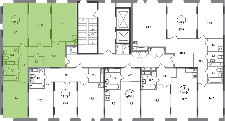 Продается трехкомнатная квартира в городе-парке "Переделкино Ближнее". Общая площадь квартиры - 89,4 кв. м, этаж 11 из 17. Срок сдачи - 3 квартал 2026 года. Тип дома - монолитный. Город-парк "Переделкино Ближнее" расположен в 8 км от МКАД по Боровскому шоссе. ТРАНСПОРТНАЯ ДОСТУПНОСТЬ: - 10 минут пешком до МЦД-4 «Мичуринец» - 15 минут пешком до станции метро «Рассказовка» Солнцевской линии - 10 минут на машине до станции метро «Филатов Луг» Сокольнической линии - 30 минут до центра Москвы - Прямой выезд на дорогу Солнцево-Бутово-Варшавское шоссе, минуя жилую застройку всего ЖК БЛАГОУСТРОЙСТВО: Новая фаза строительства уникальна своим расположением - в шаговой доступности парк на Лукинской улицы, река Алёшинка. На территории 18 фазы строительства будут построены 2 монолитных жилых корпуса повышенного комфорта разной этажности 7, 17 этажей. А также многоуровневый паркинг на 300 м/мест. Вход в жилую часть корпусов каждой секции осуществляется с двух сторон - с наружного контура жилого дома и со стороны дворового пространства, предусмотрен безбарьерный доступ. ВНУТРЕННЯЯ ИНФРАСТРУКТУРА: В рамках данной фазы, для жителей предусмотрено создание пространства, свободного от машин - благоустроенные огороженные дворы с современными детскими и спортивными площадками, разделенными на зоны по возрастам. На территории проекта есть все необходимые объекты социальной и бытовой инфраструктуры: детские сады, школы, магазины, паркинги, аптеки, поликлиники, пожарная часть и др. АВТОРСКИЙ ДИЗАЙН: Современный монолитный дом переменной этажности 7 и 17 этажей. На фасаде предусмотрены корзины для установки кондиционеров. Входные группы домов выполнены по авторскому дизайну. Колясочные располагаются при входе, велопарковка на -1 этаже.О застройщике