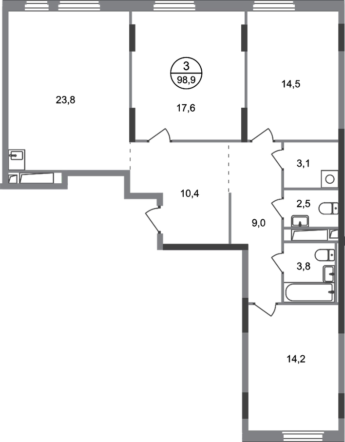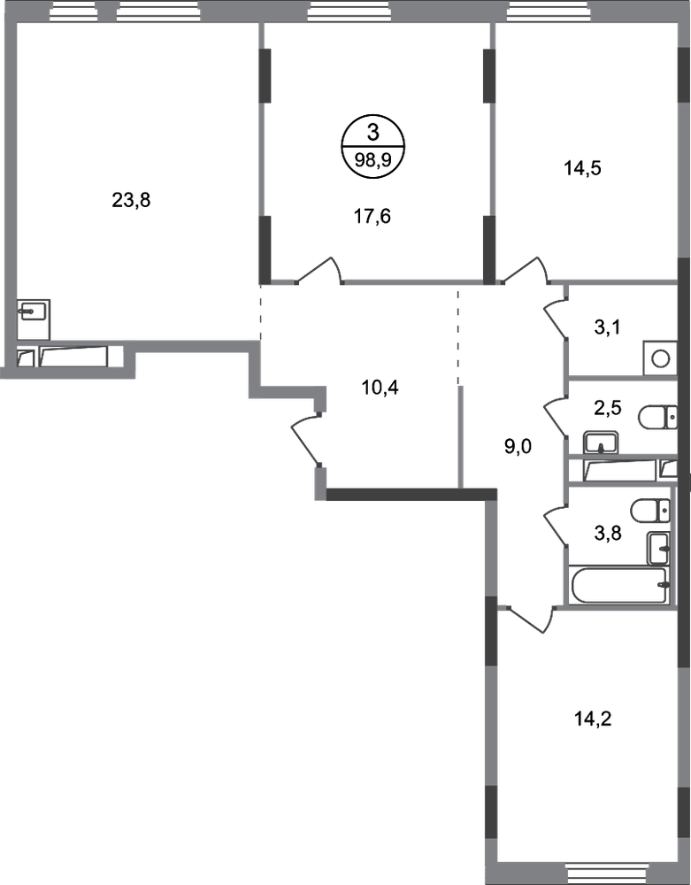 Продается трехкомнатная квартира в городе-парке "Переделкино Ближнее". Общая площадь квартиры - 98,9 кв. м, этаж 13 из 17. Срок сдачи - 3 квартал 2026 года. Тип дома - монолитный. Город-парк "Переделкино Ближнее" расположен в 8 км от МКАД по Боровскому шоссе. ТРАНСПОРТНАЯ ДОСТУПНОСТЬ: - 10 минут пешком до МЦД-4 «Мичуринец» - 15 минут пешком до станции метро «Рассказовка» Солнцевской линии - 10 минут на машине до станции метро «Филатов Луг» Сокольнической линии - 30 минут до центра Москвы - Прямой выезд на дорогу Солнцево-Бутово-Варшавское шоссе, минуя жилую застройку всего ЖК БЛАГОУСТРОЙСТВО: Новая фаза строительства уникальна своим расположением - в шаговой доступности парк на Лукинской улицы, река Алёшинка. На территории 18 фазы строительства будут построены 2 монолитных жилых корпуса повышенного комфорта разной этажности 7, 17 этажей. А также многоуровневый паркинг на 300 м/мест. Вход в жилую часть корпусов каждой секции осуществляется с двух сторон - с наружного контура жилого дома и со стороны дворового пространства, предусмотрен безбарьерный доступ. ВНУТРЕННЯЯ ИНФРАСТРУКТУРА: В рамках данной фазы, для жителей предусмотрено создание пространства, свободного от машин - благоустроенные огороженные дворы с современными детскими и спортивными площадками, разделенными на зоны по возрастам. На территории проекта есть все необходимые объекты социальной и бытовой инфраструктуры: детские сады, школы, магазины, паркинги, аптеки, поликлиники, пожарная часть и др. АВТОРСКИЙ ДИЗАЙН: Современный монолитный дом переменной этажности 7 и 17 этажей. На фасаде предусмотрены корзины для установки кондиционеров. Входные группы домов выполнены по авторскому дизайну. Колясочные располагаются при входе, велопарковка на -1 этаже.О застройщике