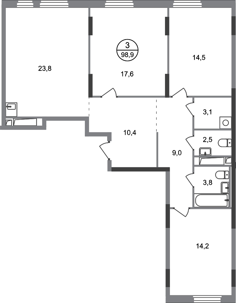 Продается трехкомнатная квартира в городе-парке "Переделкино Ближнее". Общая площадь квартиры - 98,9 кв. м, этаж 14 из 17. Срок сдачи - 3 квартал 2026 года. Тип дома - монолитный. Город-парк "Переделкино Ближнее" расположен в 8 км от МКАД по Боровскому шоссе. ТРАНСПОРТНАЯ ДОСТУПНОСТЬ: - 10 минут пешком до МЦД-4 «Мичуринец» - 15 минут пешком до станции метро «Рассказовка» Солнцевской линии - 10 минут на машине до станции метро «Филатов Луг» Сокольнической линии - 30 минут до центра Москвы - Прямой выезд на дорогу Солнцево-Бутово-Варшавское шоссе, минуя жилую застройку всего ЖК БЛАГОУСТРОЙСТВО: Новая фаза строительства уникальна своим расположением - в шаговой доступности парк на Лукинской улицы, река Алёшинка. На территории 18 фазы строительства будут построены 2 монолитных жилых корпуса повышенного комфорта разной этажности 7, 17 этажей. А также многоуровневый паркинг на 300 м/мест. Вход в жилую часть корпусов каждой секции осуществляется с двух сторон - с наружного контура жилого дома и со стороны дворового пространства, предусмотрен безбарьерный доступ. ВНУТРЕННЯЯ ИНФРАСТРУКТУРА: В рамках данной фазы, для жителей предусмотрено создание пространства, свободного от машин - благоустроенные огороженные дворы с современными детскими и спортивными площадками, разделенными на зоны по возрастам. На территории проекта есть все необходимые объекты социальной и бытовой инфраструктуры: детские сады, школы, магазины, паркинги, аптеки, поликлиники, пожарная часть и др. АВТОРСКИЙ ДИЗАЙН: Современный монолитный дом переменной этажности 7 и 17 этажей. На фасаде предусмотрены корзины для установки кондиционеров. Входные группы домов выполнены по авторскому дизайну. Колясочные располагаются при входе, велопарковка на -1 этаже.О застройщике