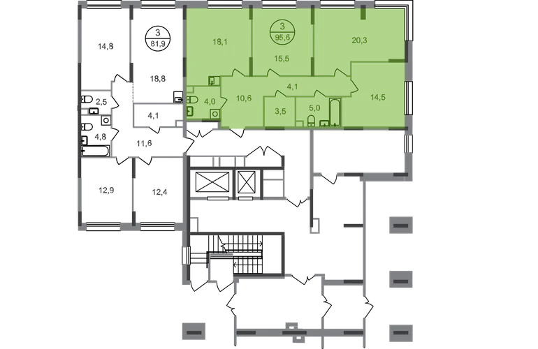 Продается трехкомнатная квартира в городе-парке "Переделкино Ближнее". Общая площадь квартиры - 95,6 кв. м, этаж 1 из 17. Срок сдачи - 3 квартал 2026 года. Тип дома - монолитный. Город-парк "Переделкино Ближнее" расположен в 8 км от МКАД по Боровскому шоссе. ТРАНСПОРТНАЯ ДОСТУПНОСТЬ: - 10 минут пешком до МЦД-4 «Мичуринец» - 15 минут пешком до станции метро «Рассказовка» Солнцевской линии - 10 минут на машине до станции метро «Филатов Луг» Сокольнической линии - 30 минут до центра Москвы - Прямой выезд на дорогу Солнцево-Бутово-Варшавское шоссе, минуя жилую застройку всего ЖК БЛАГОУСТРОЙСТВО: Новая фаза строительства уникальна своим расположением - в шаговой доступности парк на Лукинской улицы, река Алёшинка. На территории 18 фазы строительства будут построены 2 монолитных жилых корпуса повышенного комфорта разной этажности 7, 17 этажей. А также многоуровневый паркинг на 300 м/мест. Вход в жилую часть корпусов каждой секции осуществляется с двух сторон - с наружного контура жилого дома и со стороны дворового пространства, предусмотрен безбарьерный доступ. ВНУТРЕННЯЯ ИНФРАСТРУКТУРА: В рамках данной фазы, для жителей предусмотрено создание пространства, свободного от машин - благоустроенные огороженные дворы с современными детскими и спортивными площадками, разделенными на зоны по возрастам. На территории проекта есть все необходимые объекты социальной и бытовой инфраструктуры: детские сады, школы, магазины, паркинги, аптеки, поликлиники, пожарная часть и др. АВТОРСКИЙ ДИЗАЙН: Современный монолитный дом переменной этажности 7 и 17 этажей. На фасаде предусмотрены корзины для установки кондиционеров. Входные группы домов выполнены по авторскому дизайну. Колясочные располагаются при входе, велопарковка на -1 этаже.О застройщике