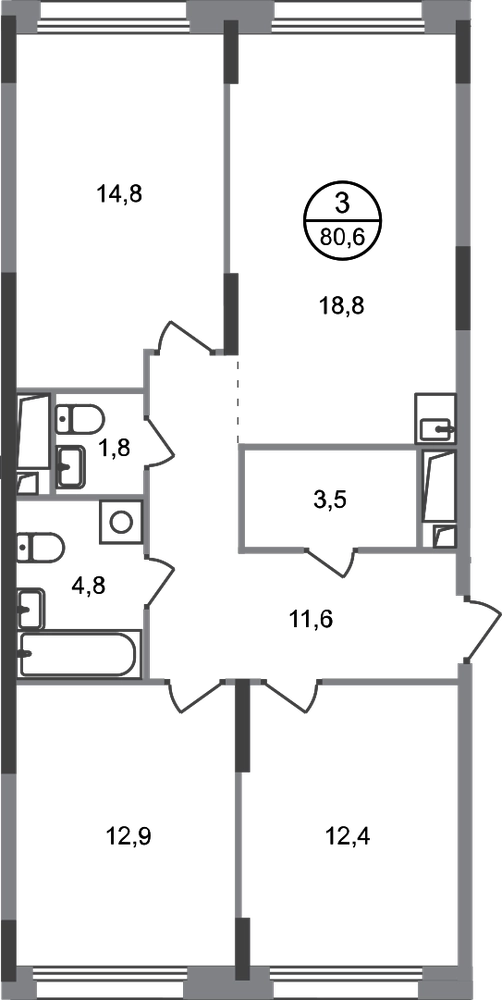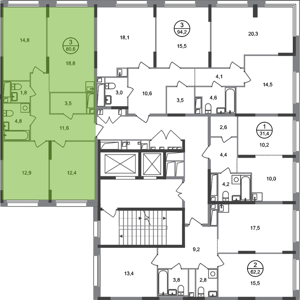 Продается трехкомнатная квартира в городе-парке "Переделкино Ближнее". Общая площадь квартиры - 80,6 кв. м, этаж 7 из 17. Срок сдачи - 3 квартал 2026 года. Тип дома - монолитный. Город-парк "Переделкино Ближнее" расположен в 8 км от МКАД по Боровскому шоссе. ТРАНСПОРТНАЯ ДОСТУПНОСТЬ: - 10 минут пешком до МЦД-4 «Мичуринец» - 15 минут пешком до станции метро «Рассказовка» Солнцевской линии - 10 минут на машине до станции метро «Филатов Луг» Сокольнической линии - 30 минут до центра Москвы - Прямой выезд на дорогу Солнцево-Бутово-Варшавское шоссе, минуя жилую застройку всего ЖК БЛАГОУСТРОЙСТВО: Новая фаза строительства уникальна своим расположением - в шаговой доступности парк на Лукинской улицы, река Алёшинка. На территории 18 фазы строительства будут построены 2 монолитных жилых корпуса повышенного комфорта разной этажности 7, 17 этажей. А также многоуровневый паркинг на 300 м/мест. Вход в жилую часть корпусов каждой секции осуществляется с двух сторон - с наружного контура жилого дома и со стороны дворового пространства, предусмотрен безбарьерный доступ. ВНУТРЕННЯЯ ИНФРАСТРУКТУРА: В рамках данной фазы, для жителей предусмотрено создание пространства, свободного от машин - благоустроенные огороженные дворы с современными детскими и спортивными площадками, разделенными на зоны по возрастам. На территории проекта есть все необходимые объекты социальной и бытовой инфраструктуры: детские сады, школы, магазины, паркинги, аптеки, поликлиники, пожарная часть и др. АВТОРСКИЙ ДИЗАЙН: Современный монолитный дом переменной этажности 7 и 17 этажей. На фасаде предусмотрены корзины для установки кондиционеров. Входные группы домов выполнены по авторскому дизайну. Колясочные располагаются при входе, велопарковка на -1 этаже.О застройщике