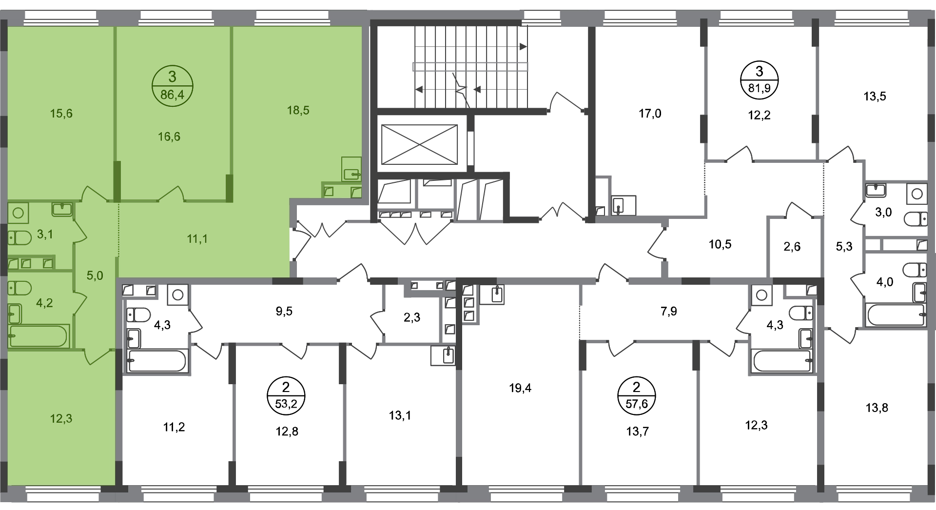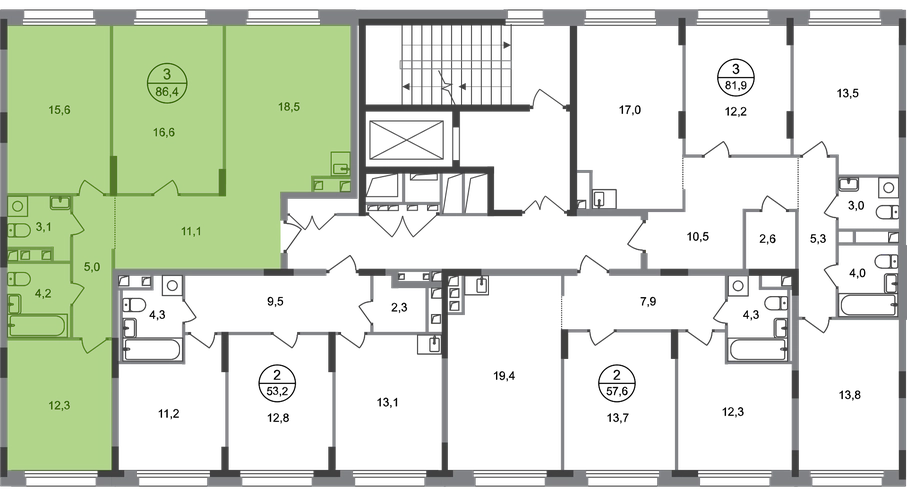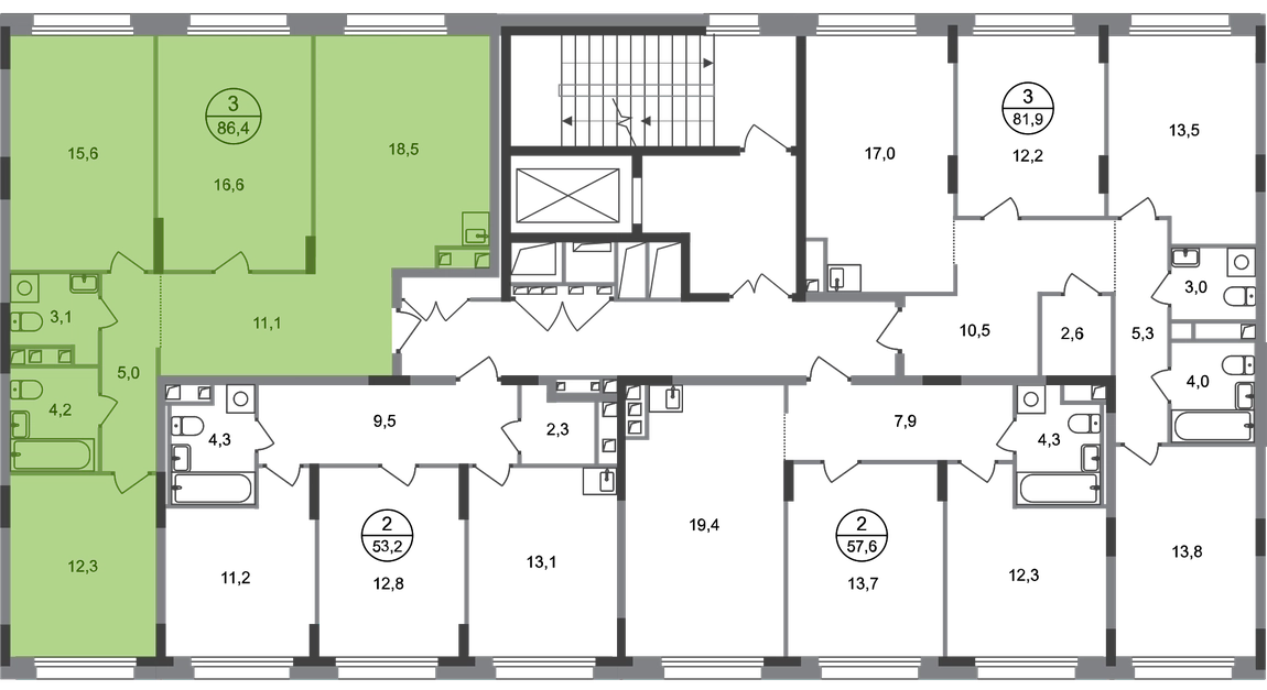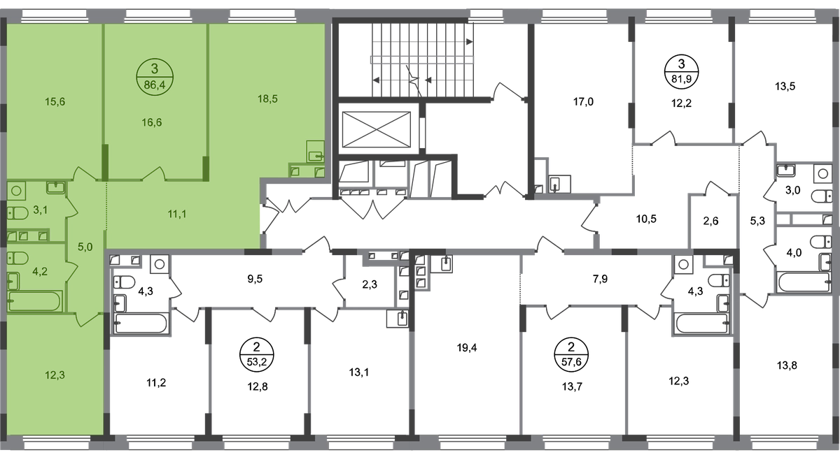 Продается трехкомнатная квартира в городе-парке "Переделкино Ближнее". Общая площадь квартиры - 86,4 кв. м, этаж 2 из 17. Срок сдачи - 3 квартал 2026 года. Тип дома - монолитный. Город-парк "Переделкино Ближнее" расположен в 8 км от МКАД по Боровскому шоссе. ТРАНСПОРТНАЯ ДОСТУПНОСТЬ: - 10 минут пешком до МЦД-4 «Мичуринец» - 15 минут пешком до станции метро «Рассказовка» Солнцевской линии - 10 минут на машине до станции метро «Филатов Луг» Сокольнической линии - 30 минут до центра Москвы - Прямой выезд на дорогу Солнцево-Бутово-Варшавское шоссе, минуя жилую застройку всего ЖК БЛАГОУСТРОЙСТВО: Новая фаза строительства уникальна своим расположением - в шаговой доступности парк на Лукинской улицы, река Алёшинка. На территории 18 фазы строительства будут построены 2 монолитных жилых корпуса повышенного комфорта разной этажности 7, 17 этажей. А также многоуровневый паркинг на 300 м/мест. Вход в жилую часть корпусов каждой секции осуществляется с двух сторон - с наружного контура жилого дома и со стороны дворового пространства, предусмотрен безбарьерный доступ. ВНУТРЕННЯЯ ИНФРАСТРУКТУРА: В рамках данной фазы, для жителей предусмотрено создание пространства, свободного от машин - благоустроенные огороженные дворы с современными детскими и спортивными площадками, разделенными на зоны по возрастам. На территории проекта есть все необходимые объекты социальной и бытовой инфраструктуры: детские сады, школы, магазины, паркинги, аптеки, поликлиники, пожарная часть и др. АВТОРСКИЙ ДИЗАЙН: Современный монолитный дом переменной этажности 7 и 17 этажей. На фасаде предусмотрены корзины для установки кондиционеров. Входные группы домов выполнены по авторскому дизайну. Колясочные располагаются при входе, велопарковка на -1 этаже.О застройщике
