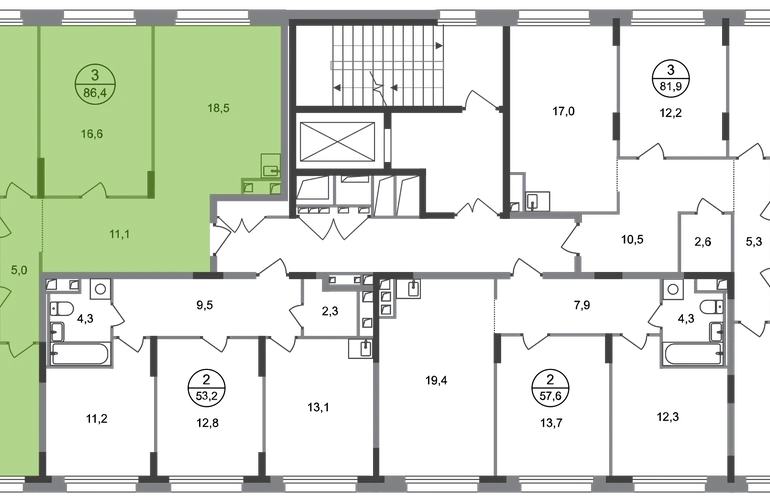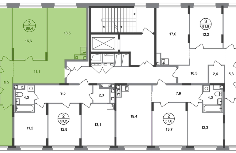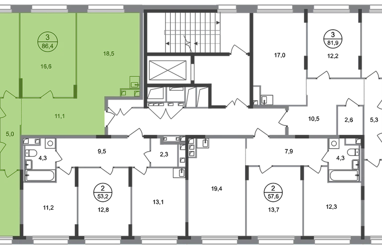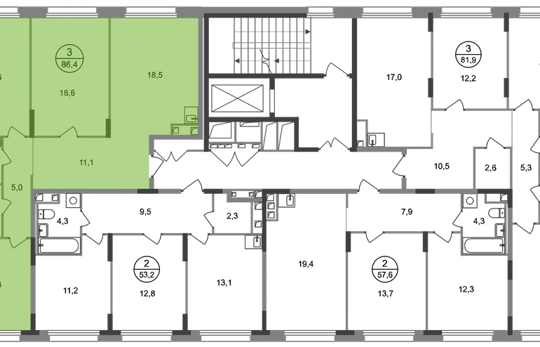 Продается трехкомнатная квартира в городе-парке "Переделкино Ближнее". Общая площадь квартиры - 86,4 кв. м, этаж 2 из 17. Срок сдачи - 3 квартал 2026 года. Тип дома - монолитный. Город-парк "Переделкино Ближнее" расположен в 8 км от МКАД по Боровскому шоссе. ТРАНСПОРТНАЯ ДОСТУПНОСТЬ: - 10 минут пешком до МЦД-4 «Мичуринец» - 15 минут пешком до станции метро «Рассказовка» Солнцевской линии - 10 минут на машине до станции метро «Филатов Луг» Сокольнической линии - 30 минут до центра Москвы - Прямой выезд на дорогу Солнцево-Бутово-Варшавское шоссе, минуя жилую застройку всего ЖК БЛАГОУСТРОЙСТВО: Новая фаза строительства уникальна своим расположением - в шаговой доступности парк на Лукинской улицы, река Алёшинка. На территории 18 фазы строительства будут построены 2 монолитных жилых корпуса повышенного комфорта разной этажности 7, 17 этажей. А также многоуровневый паркинг на 300 м/мест. Вход в жилую часть корпусов каждой секции осуществляется с двух сторон - с наружного контура жилого дома и со стороны дворового пространства, предусмотрен безбарьерный доступ. ВНУТРЕННЯЯ ИНФРАСТРУКТУРА: В рамках данной фазы, для жителей предусмотрено создание пространства, свободного от машин - благоустроенные огороженные дворы с современными детскими и спортивными площадками, разделенными на зоны по возрастам. На территории проекта есть все необходимые объекты социальной и бытовой инфраструктуры: детские сады, школы, магазины, паркинги, аптеки, поликлиники, пожарная часть и др. АВТОРСКИЙ ДИЗАЙН: Современный монолитный дом переменной этажности 7 и 17 этажей. На фасаде предусмотрены корзины для установки кондиционеров. Входные группы домов выполнены по авторскому дизайну. Колясочные располагаются при входе, велопарковка на -1 этаже.О застройщике
