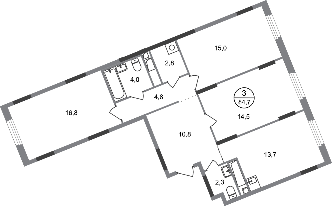 Продается трехкомнатная квартира в городе-парке "Переделкино Ближнее". Общая площадь квартиры - 84,7 кв. м, этаж 8 из 17. Срок сдачи - 3 квартал 2026 года. Тип дома - монолитный. Город-парк "Переделкино Ближнее" расположен в 8 км от МКАД по Боровскому шоссе. ТРАНСПОРТНАЯ ДОСТУПНОСТЬ: - 10 минут пешком до МЦД-4 «Мичуринец» - 15 минут пешком до станции метро «Рассказовка» Солнцевской линии - 10 минут на машине до станции метро «Филатов Луг» Сокольнической линии - 30 минут до центра Москвы - Прямой выезд на дорогу Солнцево-Бутово-Варшавское шоссе, минуя жилую застройку всего ЖК БЛАГОУСТРОЙСТВО: Новая фаза строительства уникальна своим расположением - в шаговой доступности парк на Лукинской улицы, река Алёшинка. На территории 18 фазы строительства будут построены 2 монолитных жилых корпуса повышенного комфорта разной этажности 7, 17 этажей. А также многоуровневый паркинг на 300 м/мест. Вход в жилую часть корпусов каждой секции осуществляется с двух сторон - с наружного контура жилого дома и со стороны дворового пространства, предусмотрен безбарьерный доступ. ВНУТРЕННЯЯ ИНФРАСТРУКТУРА: В рамках данной фазы, для жителей предусмотрено создание пространства, свободного от машин - благоустроенные огороженные дворы с современными детскими и спортивными площадками, разделенными на зоны по возрастам. На территории проекта есть все необходимые объекты социальной и бытовой инфраструктуры: детские сады, школы, магазины, паркинги, аптеки, поликлиники, пожарная часть и др. АВТОРСКИЙ ДИЗАЙН: Современный монолитный дом переменной этажности 7 и 17 этажей. На фасаде предусмотрены корзины для установки кондиционеров. Входные группы домов выполнены по авторскому дизайну. Колясочные располагаются при входе, велопарковка на -1 этаже.О застройщике