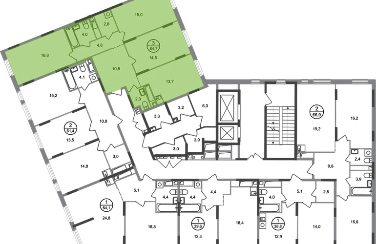 Продается трехкомнатная квартира в городе-парке "Переделкино Ближнее". Общая площадь квартиры - 84,7 кв. м, этаж 8 из 17. Срок сдачи - 3 квартал 2026 года. Тип дома - монолитный. Город-парк "Переделкино Ближнее" расположен в 8 км от МКАД по Боровскому шоссе. ТРАНСПОРТНАЯ ДОСТУПНОСТЬ: - 10 минут пешком до МЦД-4 «Мичуринец» - 15 минут пешком до станции метро «Рассказовка» Солнцевской линии - 10 минут на машине до станции метро «Филатов Луг» Сокольнической линии - 30 минут до центра Москвы - Прямой выезд на дорогу Солнцево-Бутово-Варшавское шоссе, минуя жилую застройку всего ЖК БЛАГОУСТРОЙСТВО: Новая фаза строительства уникальна своим расположением - в шаговой доступности парк на Лукинской улицы, река Алёшинка. На территории 18 фазы строительства будут построены 2 монолитных жилых корпуса повышенного комфорта разной этажности 7, 17 этажей. А также многоуровневый паркинг на 300 м/мест. Вход в жилую часть корпусов каждой секции осуществляется с двух сторон - с наружного контура жилого дома и со стороны дворового пространства, предусмотрен безбарьерный доступ. ВНУТРЕННЯЯ ИНФРАСТРУКТУРА: В рамках данной фазы, для жителей предусмотрено создание пространства, свободного от машин - благоустроенные огороженные дворы с современными детскими и спортивными площадками, разделенными на зоны по возрастам. На территории проекта есть все необходимые объекты социальной и бытовой инфраструктуры: детские сады, школы, магазины, паркинги, аптеки, поликлиники, пожарная часть и др. АВТОРСКИЙ ДИЗАЙН: Современный монолитный дом переменной этажности 7 и 17 этажей. На фасаде предусмотрены корзины для установки кондиционеров. Входные группы домов выполнены по авторскому дизайну. Колясочные располагаются при входе, велопарковка на -1 этаже.О застройщике