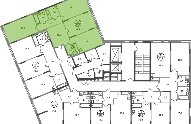 Продается трехкомнатная квартира в городе-парке "Переделкино Ближнее". Общая площадь квартиры - 84,7 кв. м, этаж 11 из 17. Срок сдачи - 3 квартал 2026 года. Тип дома - монолитный. Город-парк "Переделкино Ближнее" расположен в 8 км от МКАД по Боровскому шоссе. ТРАНСПОРТНАЯ ДОСТУПНОСТЬ: - 10 минут пешком до МЦД-4 «Мичуринец» - 15 минут пешком до станции метро «Рассказовка» Солнцевской линии - 10 минут на машине до станции метро «Филатов Луг» Сокольнической линии - 30 минут до центра Москвы - Прямой выезд на дорогу Солнцево-Бутово-Варшавское шоссе, минуя жилую застройку всего ЖК БЛАГОУСТРОЙСТВО: Новая фаза строительства уникальна своим расположением - в шаговой доступности парк на Лукинской улицы, река Алёшинка. На территории 18 фазы строительства будут построены 2 монолитных жилых корпуса повышенного комфорта разной этажности 7, 17 этажей. А также многоуровневый паркинг на 300 м/мест. Вход в жилую часть корпусов каждой секции осуществляется с двух сторон - с наружного контура жилого дома и со стороны дворового пространства, предусмотрен безбарьерный доступ. ВНУТРЕННЯЯ ИНФРАСТРУКТУРА: В рамках данной фазы, для жителей предусмотрено создание пространства, свободного от машин - благоустроенные огороженные дворы с современными детскими и спортивными площадками, разделенными на зоны по возрастам. На территории проекта есть все необходимые объекты социальной и бытовой инфраструктуры: детские сады, школы, магазины, паркинги, аптеки, поликлиники, пожарная часть и др. АВТОРСКИЙ ДИЗАЙН: Современный монолитный дом переменной этажности 7 и 17 этажей. На фасаде предусмотрены корзины для установки кондиционеров. Входные группы домов выполнены по авторскому дизайну. Колясочные располагаются при входе, велопарковка на -1 этаже.О застройщике