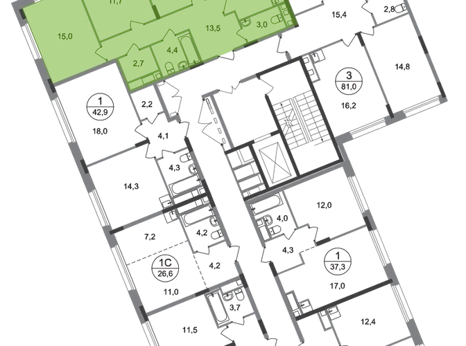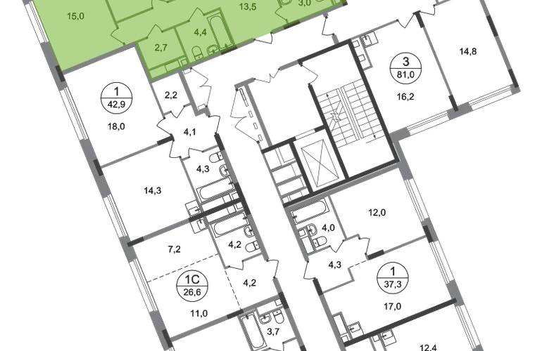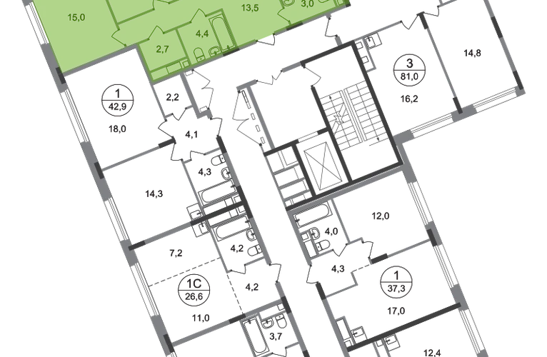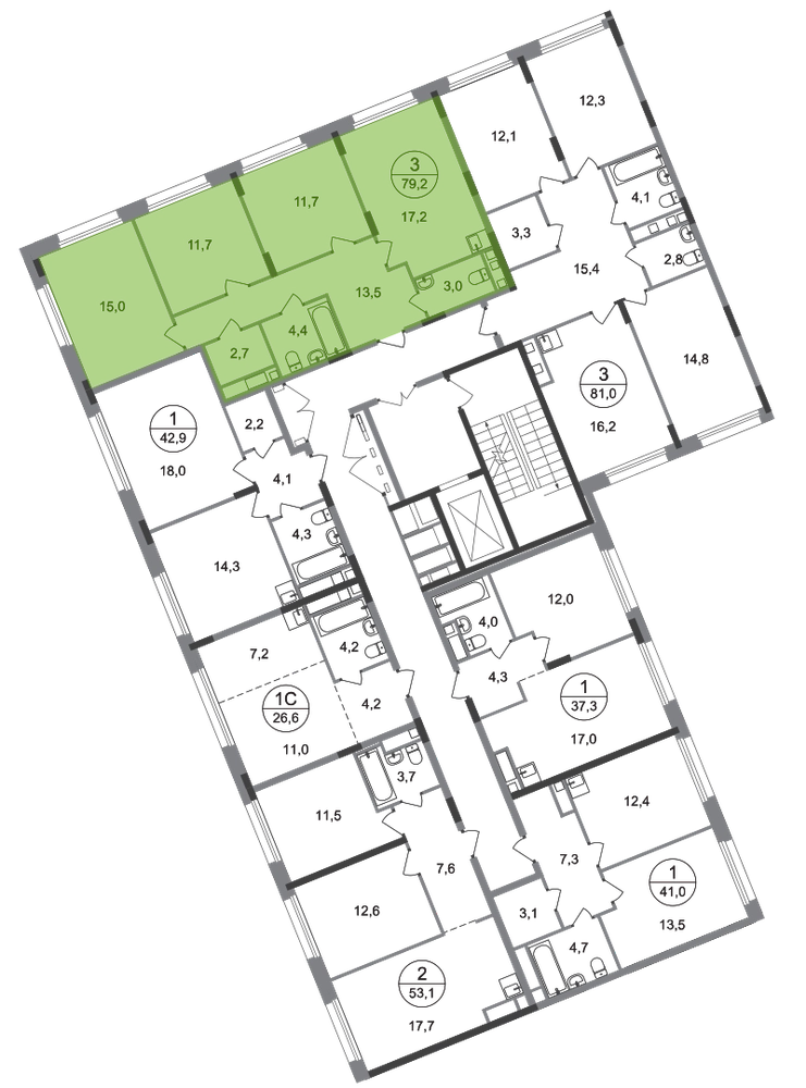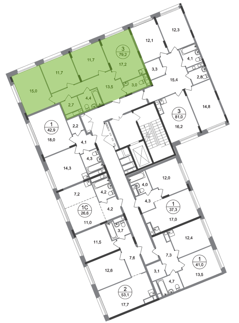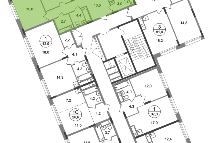 Продается трехкомнатная квартира с отделкой в 18 фазе города-парка "Переделкино Ближнее". Общая площадь квартиры - 79,2 кв. м, этаж 6 из 17. Срок сдачи - 2 квартал 2027 года. Тип дома - монолитный. Новый корпус состоит из 12 секций c переменной этажностью 8-17 этажей: Все секции с отделкой White Box с возможностью повышения за дополнительную плату до дизайнерской отделки: Classic или Smart+ Город-парк "Переделкино Ближнее" расположен в 8 км от МКАД по Боровскому шоссе. ТРАНСПОРТНАЯ ДОСТУПНОСТЬ: - 10 минут пешком до МЦД-4 «Мичуринец» - 14 минут на машине до станции метро «Филатов Луг» Сокольнической линии - 15 минут пешком до станции метро «Рассказовка» Солнцевской линии - 30 минут до центра Москвы - Прямой выезд на дорогу Солнцево-Бутово-Варшавское шоссе, минуя жилую застройку всего ЖК РАЗВИТАЯ СОЦИАЛЬНАЯ ИНФРАСТРУКТУРА: - 7 детских садов, 3 школы - детская музыкальная школа имени Б.Л. Пастернака - поликлиника для взрослых ГБУЗ ГП № 212 ДЗМ филиал № 70 - пожарная часть №66. Аварийно-спасательный отряд № 6 ГКУ - банки, продуктовые магазины, аптеки, фитнес центры, салоны красоты и пр БЛАГОУСТРОЙСТВО: - дворы без машин - игровые зоны и развивающие детские площадки - детские площадки разделены по возрастным группам - зоны для пассивного отдыха - зоны для занятий спорта ОСОБЕННОСТИ АРХИТЕКТУРЫ: - переменная этажность открывает видовые характеристики на реку “Алешинка” и на лесопарковую зону - увеличенное остекление в квартирах - высокие потолки от 3,03 м. - безбарьерные входные группы - колясочные в каждой входной группе - кладовые помещения расположены на -1 этаже каждой секции и на 2-17 жилых этажах в секции №11 - коммерческие помещения на 1 этаже в 11 и 12 секциях - в секциях 2-4, 6-7, 11-12 по 2 лифта: 1 пассажирский, 1 грузовой - в секциях 1, 5, 8-10: 1 грузовой лифт - мусоропроводы в домах не предусмотрены, запроектированы специальные зона для сбора мусора - на фасаде предусмотрены корзины для установки кондиционеров. - видеонаблюдение установленное в холлах первых этажей, у подъездов и прилегающей территории АВТОРСКИЙ ДИЗАЙН: Входные группы выполнены по авторскому дизайну, оснащены системой «тёплый пол». В каждой входной группе будет располагаться комфортабельная зона ожидания, почтовые ящики, колясочная, акцентные пуфы и столик.О застройщике