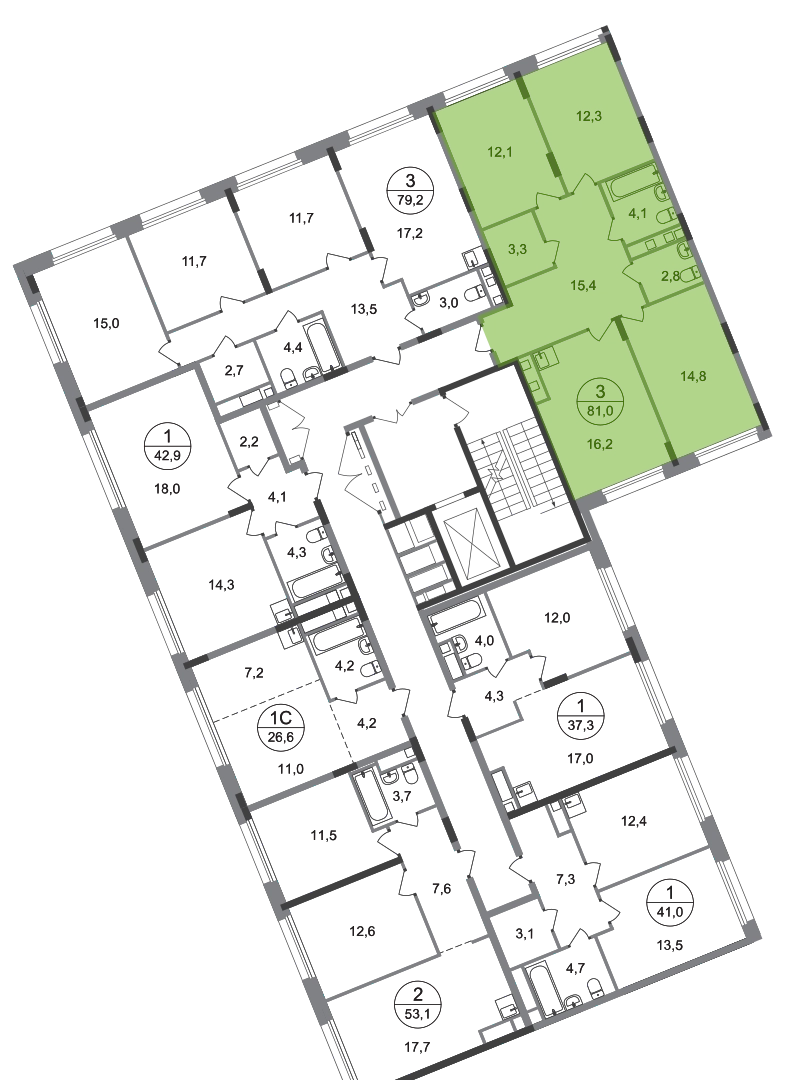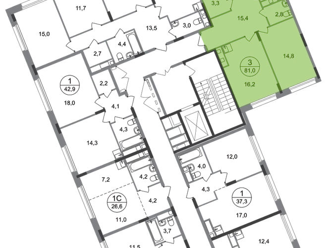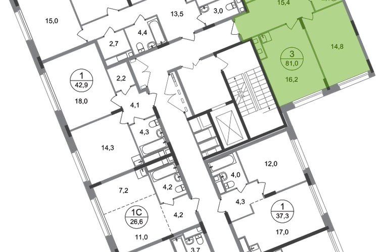 Продается трехкомнатная квартира с отделкой в 18 фазе города-парка "Переделкино Ближнее". Общая площадь квартиры - 81 кв. м, этаж 7 из 17. Срок сдачи - 2 квартал 2027 года. Тип дома - монолитный. Новый корпус состоит из 12 секций c переменной этажностью 8-17 этажей: Все секции с отделкой White Box с возможностью повышения за дополнительную плату до дизайнерской отделки: Classic или Smart+ Город-парк "Переделкино Ближнее" расположен в 8 км от МКАД по Боровскому шоссе. ТРАНСПОРТНАЯ ДОСТУПНОСТЬ: - 10 минут пешком до МЦД-4 «Мичуринец» - 14 минут на машине до станции метро «Филатов Луг» Сокольнической линии - 15 минут пешком до станции метро «Рассказовка» Солнцевской линии - 30 минут до центра Москвы - Прямой выезд на дорогу Солнцево-Бутово-Варшавское шоссе, минуя жилую застройку всего ЖК РАЗВИТАЯ СОЦИАЛЬНАЯ ИНФРАСТРУКТУРА: - 7 детских садов, 3 школы - детская музыкальная школа имени Б.Л. Пастернака - поликлиника для взрослых ГБУЗ ГП № 212 ДЗМ филиал № 70 - пожарная часть №66. Аварийно-спасательный отряд № 6 ГКУ - банки, продуктовые магазины, аптеки, фитнес центры, салоны красоты и пр БЛАГОУСТРОЙСТВО: - дворы без машин - игровые зоны и развивающие детские площадки - детские площадки разделены по возрастным группам - зоны для пассивного отдыха - зоны для занятий спорта ОСОБЕННОСТИ АРХИТЕКТУРЫ: - переменная этажность открывает видовые характеристики на реку “Алешинка” и на лесопарковую зону - увеличенное остекление в квартирах - высокие потолки от 3,03 м. - безбарьерные входные группы - колясочные в каждой входной группе - кладовые помещения расположены на -1 этаже каждой секции и на 2-17 жилых этажах в секции №11 - коммерческие помещения на 1 этаже в 11 и 12 секциях - в секциях 2-4, 6-7, 11-12 по 2 лифта: 1 пассажирский, 1 грузовой - в секциях 1, 5, 8-10: 1 грузовой лифт - мусоропроводы в домах не предусмотрены, запроектированы специальные зона для сбора мусора - на фасаде предусмотрены корзины для установки кондиционеров. - видеонаблюдение установленное в холлах первых этажей, у подъездов и прилегающей территории АВТОРСКИЙ ДИЗАЙН: Входные группы выполнены по авторскому дизайну, оснащены системой «тёплый пол». В каждой входной группе будет располагаться комфортабельная зона ожидания, почтовые ящики, колясочная, акцентные пуфы и столик.О застройщике