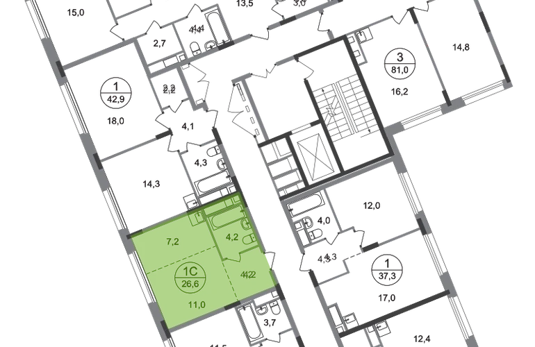 Продается квартира-студия с отделкой в 18 фазе города-парка "Переделкино Ближнее". Общая площадь квартиры - 26,6 кв. м, этаж 8 из 17. Срок сдачи - 2 квартал 2027 года. Тип дома - монолитный. Новый корпус состоит из 12 секций c переменной этажностью 8-17 этажей: Все секции с отделкой White Box с возможностью повышения за дополнительную плату до дизайнерской отделки: Classic или Smart+ Город-парк "Переделкино Ближнее" расположен в 8 км от МКАД по Боровскому шоссе. ТРАНСПОРТНАЯ ДОСТУПНОСТЬ: - 10 минут пешком до МЦД-4 «Мичуринец» - 14 минут на машине до станции метро «Филатов Луг» Сокольнической линии - 15 минут пешком до станции метро «Рассказовка» Солнцевской линии - 30 минут до центра Москвы - Прямой выезд на дорогу Солнцево-Бутово-Варшавское шоссе, минуя жилую застройку всего ЖК РАЗВИТАЯ СОЦИАЛЬНАЯ ИНФРАСТРУКТУРА: - 7 детских садов, 3 школы - детская музыкальная школа имени Б.Л. Пастернака - поликлиника для взрослых ГБУЗ ГП № 212 ДЗМ филиал № 70 - пожарная часть №66. Аварийно-спасательный отряд № 6 ГКУ - банки, продуктовые магазины, аптеки, фитнес центры, салоны красоты и пр БЛАГОУСТРОЙСТВО: - дворы без машин - игровые зоны и развивающие детские площадки - детские площадки разделены по возрастным группам - зоны для пассивного отдыха - зоны для занятий спорта ОСОБЕННОСТИ АРХИТЕКТУРЫ: - переменная этажность открывает видовые характеристики на реку “Алешинка” и на лесопарковую зону - увеличенное остекление в квартирах - высокие потолки от 3,03 м. - безбарьерные входные группы - колясочные в каждой входной группе - кладовые помещения расположены на -1 этаже каждой секции и на 2-17 жилых этажах в секции №11 - коммерческие помещения на 1 этаже в 11 и 12 секциях - в секциях 2-4, 6-7, 11-12 по 2 лифта: 1 пассажирский, 1 грузовой - в секциях 1, 5, 8-10: 1 грузовой лифт - мусоропроводы в домах не предусмотрены, запроектированы специальные зона для сбора мусора - на фасаде предусмотрены корзины для установки кондиционеров. - видеонаблюдение установленное в холлах первых этажей, у подъездов и прилегающей территории АВТОРСКИЙ ДИЗАЙН: Входные группы выполнены по авторскому дизайну, оснащены системой «тёплый пол». В каждой входной группе будет располагаться комфортабельная зона ожидания, почтовые ящики, колясочная, акцентные пуфы и столик.О застройщике