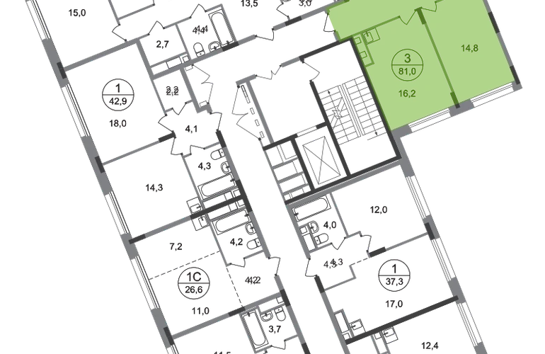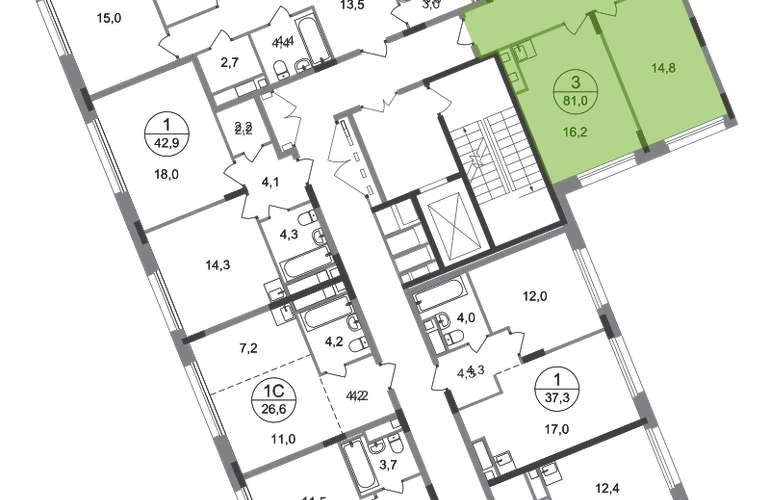 Продается трехкомнатная квартира с отделкой в 18 фазе города-парка "Переделкино Ближнее". Общая площадь квартиры - 81 кв. м, этаж 8 из 17. Срок сдачи - 2 квартал 2027 года. Тип дома - монолитный. Новый корпус состоит из 12 секций c переменной этажностью 8-17 этажей: Все секции с отделкой White Box с возможностью повышения за дополнительную плату до дизайнерской отделки: Classic или Smart+ Город-парк "Переделкино Ближнее" расположен в 8 км от МКАД по Боровскому шоссе. ТРАНСПОРТНАЯ ДОСТУПНОСТЬ: - 10 минут пешком до МЦД-4 «Мичуринец» - 14 минут на машине до станции метро «Филатов Луг» Сокольнической линии - 15 минут пешком до станции метро «Рассказовка» Солнцевской линии - 30 минут до центра Москвы - Прямой выезд на дорогу Солнцево-Бутово-Варшавское шоссе, минуя жилую застройку всего ЖК РАЗВИТАЯ СОЦИАЛЬНАЯ ИНФРАСТРУКТУРА: - 7 детских садов, 3 школы - детская музыкальная школа имени Б.Л. Пастернака - поликлиника для взрослых ГБУЗ ГП № 212 ДЗМ филиал № 70 - пожарная часть №66. Аварийно-спасательный отряд № 6 ГКУ - банки, продуктовые магазины, аптеки, фитнес центры, салоны красоты и пр БЛАГОУСТРОЙСТВО: - дворы без машин - игровые зоны и развивающие детские площадки - детские площадки разделены по возрастным группам - зоны для пассивного отдыха - зоны для занятий спорта ОСОБЕННОСТИ АРХИТЕКТУРЫ: - переменная этажность открывает видовые характеристики на реку “Алешинка” и на лесопарковую зону - увеличенное остекление в квартирах - высокие потолки от 3,03 м. - безбарьерные входные группы - колясочные в каждой входной группе - кладовые помещения расположены на -1 этаже каждой секции и на 2-17 жилых этажах в секции №11 - коммерческие помещения на 1 этаже в 11 и 12 секциях - в секциях 2-4, 6-7, 11-12 по 2 лифта: 1 пассажирский, 1 грузовой - в секциях 1, 5, 8-10: 1 грузовой лифт - мусоропроводы в домах не предусмотрены, запроектированы специальные зона для сбора мусора - на фасаде предусмотрены корзины для установки кондиционеров. - видеонаблюдение установленное в холлах первых этажей, у подъездов и прилегающей территории АВТОРСКИЙ ДИЗАЙН: Входные группы выполнены по авторскому дизайну, оснащены системой «тёплый пол». В каждой входной группе будет располагаться комфортабельная зона ожидания, почтовые ящики, колясочная, акцентные пуфы и столик.О застройщике