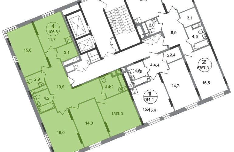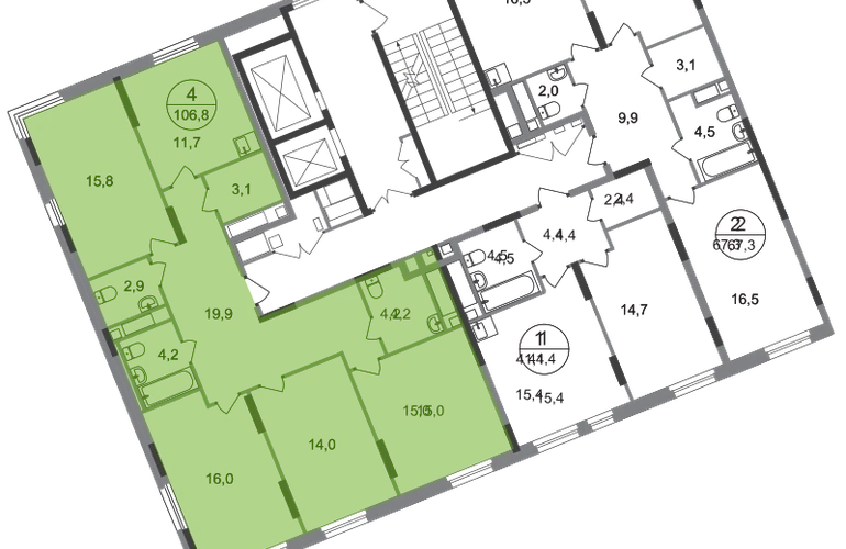 Продается четырехкомнатная квартира с отделкой в 18 фазе города-парка "Переделкино Ближнее". Общая площадь квартиры - 106,8 кв. м, этаж 17 из 17. Срок сдачи - 2 квартал 2027 года. Тип дома - монолитный. Новый корпус состоит из 12 секций c переменной этажностью 8-17 этажей: Все секции с отделкой White Box с возможностью повышения за дополнительную плату до дизайнерской отделки: Classic или Smart+ Город-парк "Переделкино Ближнее" расположен в 8 км от МКАД по Боровскому шоссе. ТРАНСПОРТНАЯ ДОСТУПНОСТЬ: - 10 минут пешком до МЦД-4 «Мичуринец» - 14 минут на машине до станции метро «Филатов Луг» Сокольнической линии - 15 минут пешком до станции метро «Рассказовка» Солнцевской линии - 30 минут до центра Москвы - Прямой выезд на дорогу Солнцево-Бутово-Варшавское шоссе, минуя жилую застройку всего ЖК РАЗВИТАЯ СОЦИАЛЬНАЯ ИНФРАСТРУКТУРА: - 7 детских садов, 3 школы - детская музыкальная школа имени Б.Л. Пастернака - поликлиника для взрослых ГБУЗ ГП № 212 ДЗМ филиал № 70 - пожарная часть №66. Аварийно-спасательный отряд № 6 ГКУ - банки, продуктовые магазины, аптеки, фитнес центры, салоны красоты и пр БЛАГОУСТРОЙСТВО: - дворы без машин - игровые зоны и развивающие детские площадки - детские площадки разделены по возрастным группам - зоны для пассивного отдыха - зоны для занятий спорта ОСОБЕННОСТИ АРХИТЕКТУРЫ: - переменная этажность открывает видовые характеристики на реку “Алешинка” и на лесопарковую зону - увеличенное остекление в квартирах - высокие потолки от 3,03 м. - безбарьерные входные группы - колясочные в каждой входной группе - кладовые помещения расположены на -1 этаже каждой секции и на 2-17 жилых этажах в секции №11 - коммерческие помещения на 1 этаже в 11 и 12 секциях - в секциях 2-4, 6-7, 11-12 по 2 лифта: 1 пассажирский, 1 грузовой - в секциях 1, 5, 8-10: 1 грузовой лифт - мусоропроводы в домах не предусмотрены, запроектированы специальные зона для сбора мусора - на фасаде предусмотрены корзины для установки кондиционеров. - видеонаблюдение установленное в холлах первых этажей, у подъездов и прилегающей территории АВТОРСКИЙ ДИЗАЙН: Входные группы выполнены по авторскому дизайну, оснащены системой «тёплый пол». В каждой входной группе будет располагаться комфортабельная зона ожидания, почтовые ящики, колясочная, акцентные пуфы и столик.О застройщике