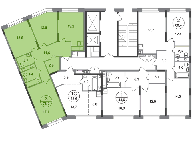 Продается трехкомнатная квартира с отделкой в 18 фазе города-парка "Переделкино Ближнее". Общая площадь квартиры - 78 кв. м, этаж 2 из 17. Срок сдачи - 2 квартал 2027 года. Тип дома - монолитный. Новый корпус состоит из 12 секций c переменной этажностью 8-17 этажей: Все секции с отделкой White Box с возможностью повышения за дополнительную плату до дизайнерской отделки: Classic или Smart+ Город-парк "Переделкино Ближнее" расположен в 8 км от МКАД по Боровскому шоссе. ТРАНСПОРТНАЯ ДОСТУПНОСТЬ: - 10 минут пешком до МЦД-4 «Мичуринец» - 14 минут на машине до станции метро «Филатов Луг» Сокольнической линии - 15 минут пешком до станции метро «Рассказовка» Солнцевской линии - 30 минут до центра Москвы - Прямой выезд на дорогу Солнцево-Бутово-Варшавское шоссе, минуя жилую застройку всего ЖК РАЗВИТАЯ СОЦИАЛЬНАЯ ИНФРАСТРУКТУРА: - 7 детских садов, 3 школы - детская музыкальная школа имени Б.Л. Пастернака - поликлиника для взрослых ГБУЗ ГП № 212 ДЗМ филиал № 70 - пожарная часть №66. Аварийно-спасательный отряд № 6 ГКУ - банки, продуктовые магазины, аптеки, фитнес центры, салоны красоты и пр БЛАГОУСТРОЙСТВО: - дворы без машин - игровые зоны и развивающие детские площадки - детские площадки разделены по возрастным группам - зоны для пассивного отдыха - зоны для занятий спорта ОСОБЕННОСТИ АРХИТЕКТУРЫ: - переменная этажность открывает видовые характеристики на реку “Алешинка” и на лесопарковую зону - увеличенное остекление в квартирах - высокие потолки от 3,03 м. - безбарьерные входные группы - колясочные в каждой входной группе - кладовые помещения расположены на -1 этаже каждой секции и на 2-17 жилых этажах в секции №11 - коммерческие помещения на 1 этаже в 11 и 12 секциях - в секциях 2-4, 6-7, 11-12 по 2 лифта: 1 пассажирский, 1 грузовой - в секциях 1, 5, 8-10: 1 грузовой лифт - мусоропроводы в домах не предусмотрены, запроектированы специальные зона для сбора мусора - на фасаде предусмотрены корзины для установки кондиционеров. - видеонаблюдение установленное в холлах первых этажей, у подъездов и прилегающей территории АВТОРСКИЙ ДИЗАЙН: Входные группы выполнены по авторскому дизайну, оснащены системой «тёплый пол». В каждой входной группе будет располагаться комфортабельная зона ожидания, почтовые ящики, колясочная, акцентные пуфы и столик.О застройщике