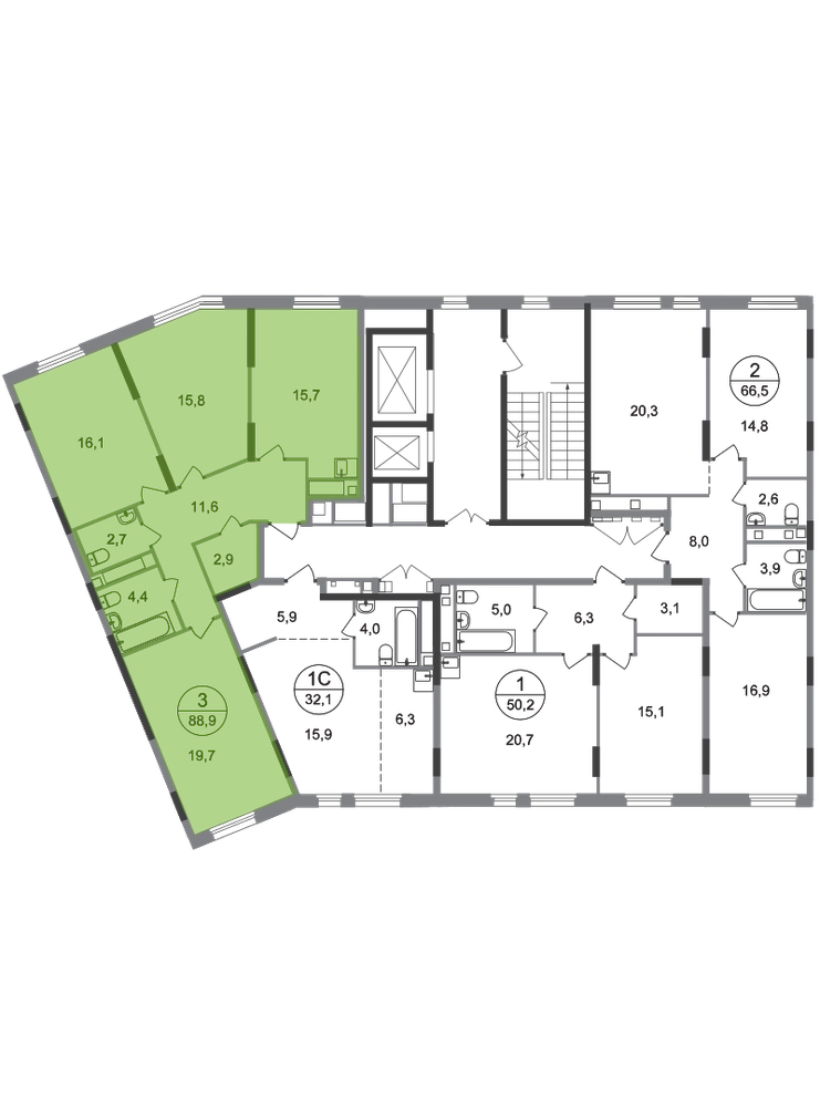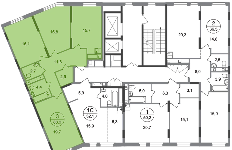 Продается трехкомнатная квартира с отделкой в 18 фазе города-парка "Переделкино Ближнее". Общая площадь квартиры - 88,9 кв. м, этаж 6 из 17. Срок сдачи - 2 квартал 2027 года. Тип дома - монолитный. Новый корпус состоит из 12 секций c переменной этажностью 8-17 этажей: Все секции с отделкой White Box с возможностью повышения за дополнительную плату до дизайнерской отделки: Classic или Smart+ Город-парк "Переделкино Ближнее" расположен в 8 км от МКАД по Боровскому шоссе. ТРАНСПОРТНАЯ ДОСТУПНОСТЬ: - 10 минут пешком до МЦД-4 «Мичуринец» - 14 минут на машине до станции метро «Филатов Луг» Сокольнической линии - 15 минут пешком до станции метро «Рассказовка» Солнцевской линии - 30 минут до центра Москвы - Прямой выезд на дорогу Солнцево-Бутово-Варшавское шоссе, минуя жилую застройку всего ЖК РАЗВИТАЯ СОЦИАЛЬНАЯ ИНФРАСТРУКТУРА: - 7 детских садов, 3 школы - детская музыкальная школа имени Б.Л. Пастернака - поликлиника для взрослых ГБУЗ ГП № 212 ДЗМ филиал № 70 - пожарная часть №66. Аварийно-спасательный отряд № 6 ГКУ - банки, продуктовые магазины, аптеки, фитнес центры, салоны красоты и пр БЛАГОУСТРОЙСТВО: - дворы без машин - игровые зоны и развивающие детские площадки - детские площадки разделены по возрастным группам - зоны для пассивного отдыха - зоны для занятий спорта ОСОБЕННОСТИ АРХИТЕКТУРЫ: - переменная этажность открывает видовые характеристики на реку “Алешинка” и на лесопарковую зону - увеличенное остекление в квартирах - высокие потолки от 3,03 м. - безбарьерные входные группы - колясочные в каждой входной группе - кладовые помещения расположены на -1 этаже каждой секции и на 2-17 жилых этажах в секции №11 - коммерческие помещения на 1 этаже в 11 и 12 секциях - в секциях 2-4, 6-7, 11-12 по 2 лифта: 1 пассажирский, 1 грузовой - в секциях 1, 5, 8-10: 1 грузовой лифт - мусоропроводы в домах не предусмотрены, запроектированы специальные зона для сбора мусора - на фасаде предусмотрены корзины для установки кондиционеров. - видеонаблюдение установленное в холлах первых этажей, у подъездов и прилегающей территории АВТОРСКИЙ ДИЗАЙН: Входные группы выполнены по авторскому дизайну, оснащены системой «тёплый пол». В каждой входной группе будет располагаться комфортабельная зона ожидания, почтовые ящики, колясочная, акцентные пуфы и столик.О застройщике