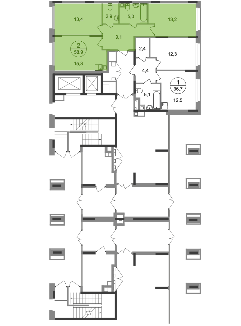 Продается двухкомнатная квартира с отделкой в 18 фазе города-парка "Переделкино Ближнее". Общая площадь квартиры - 58,9 кв. м, этаж 1 из 17. Срок сдачи - 2 квартал 2027 года. Тип дома - монолитный. Новый корпус состоит из 12 секций c переменной этажностью 8-17 этажей: Все секции с отделкой White Box с возможностью повышения за дополнительную плату до дизайнерской отделки: Classic или Smart+ Город-парк "Переделкино Ближнее" расположен в 8 км от МКАД по Боровскому шоссе. ТРАНСПОРТНАЯ ДОСТУПНОСТЬ: - 10 минут пешком до МЦД-4 «Мичуринец» - 14 минут на машине до станции метро «Филатов Луг» Сокольнической линии - 15 минут пешком до станции метро «Рассказовка» Солнцевской линии - 30 минут до центра Москвы - Прямой выезд на дорогу Солнцево-Бутово-Варшавское шоссе, минуя жилую застройку всего ЖК РАЗВИТАЯ СОЦИАЛЬНАЯ ИНФРАСТРУКТУРА: - 7 детских садов, 3 школы - детская музыкальная школа имени Б.Л. Пастернака - поликлиника для взрослых ГБУЗ ГП № 212 ДЗМ филиал № 70 - пожарная часть №66. Аварийно-спасательный отряд № 6 ГКУ - банки, продуктовые магазины, аптеки, фитнес центры, салоны красоты и пр БЛАГОУСТРОЙСТВО: - дворы без машин - игровые зоны и развивающие детские площадки - детские площадки разделены по возрастным группам - зоны для пассивного отдыха - зоны для занятий спорта ОСОБЕННОСТИ АРХИТЕКТУРЫ: - переменная этажность открывает видовые характеристики на реку “Алешинка” и на лесопарковую зону - увеличенное остекление в квартирах - высокие потолки от 3,03 м. - безбарьерные входные группы - колясочные в каждой входной группе - кладовые помещения расположены на -1 этаже каждой секции и на 2-17 жилых этажах в секции №11 - коммерческие помещения на 1 этаже в 11 и 12 секциях - в секциях 2-4, 6-7, 11-12 по 2 лифта: 1 пассажирский, 1 грузовой - в секциях 1, 5, 8-10: 1 грузовой лифт - мусоропроводы в домах не предусмотрены, запроектированы специальные зона для сбора мусора - на фасаде предусмотрены корзины для установки кондиционеров. - видеонаблюдение установленное в холлах первых этажей, у подъездов и прилегающей территории АВТОРСКИЙ ДИЗАЙН: Входные группы выполнены по авторскому дизайну, оснащены системой «тёплый пол». В каждой входной группе будет располагаться комфортабельная зона ожидания, почтовые ящики, колясочная, акцентные пуфы и столик.О застройщике