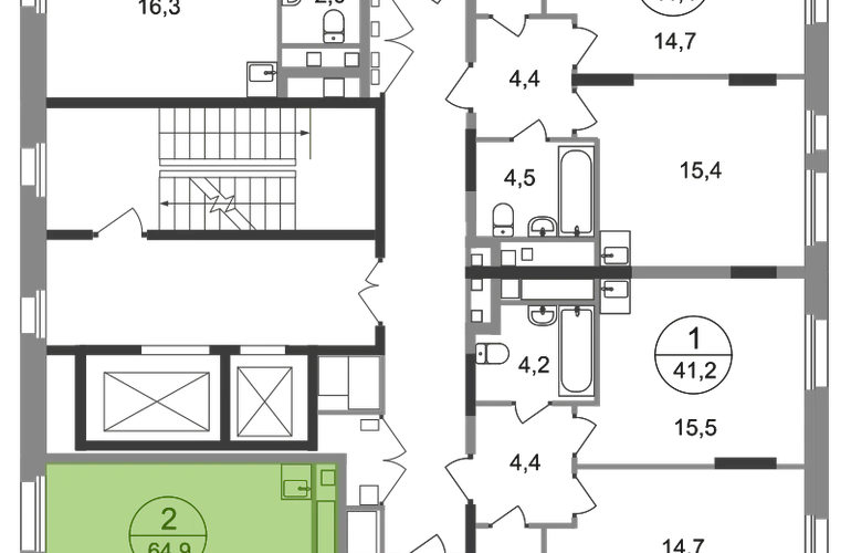 • Комнатность2 ком