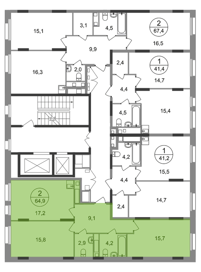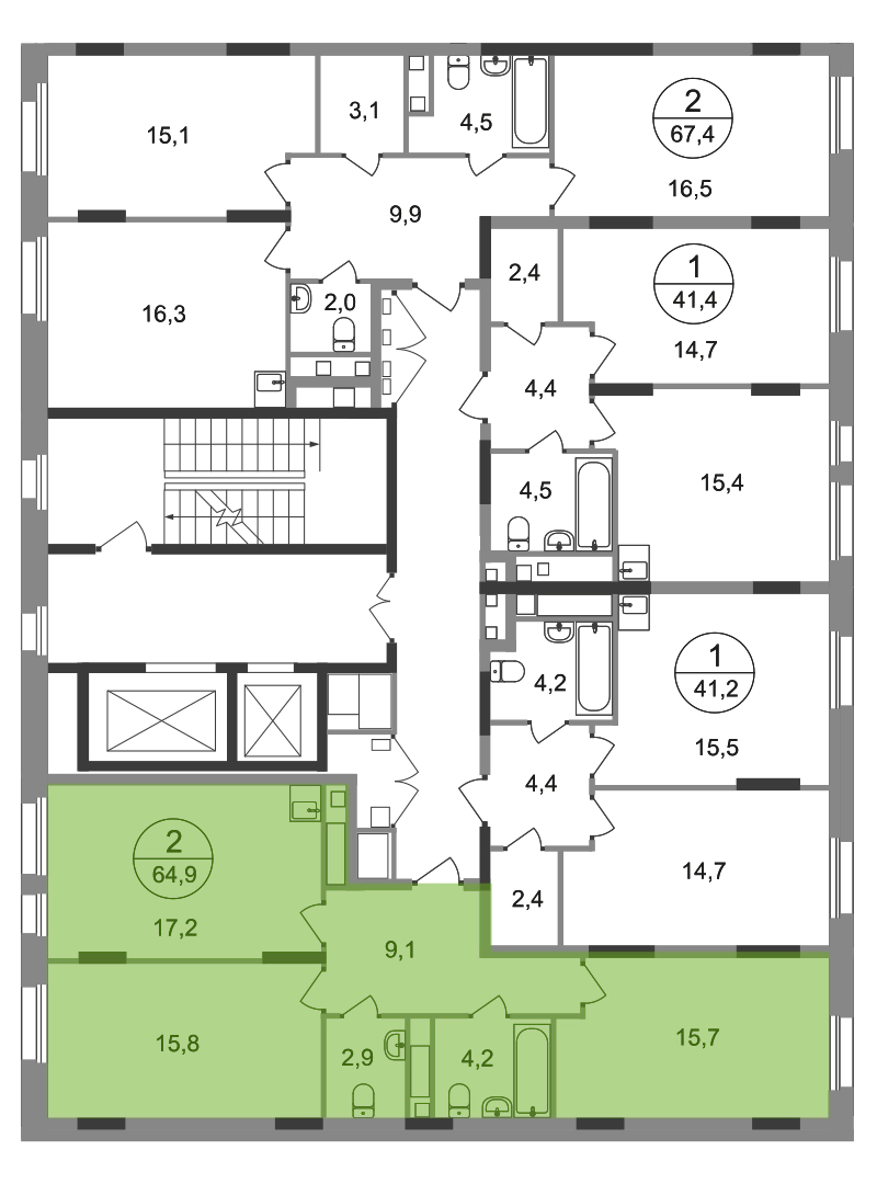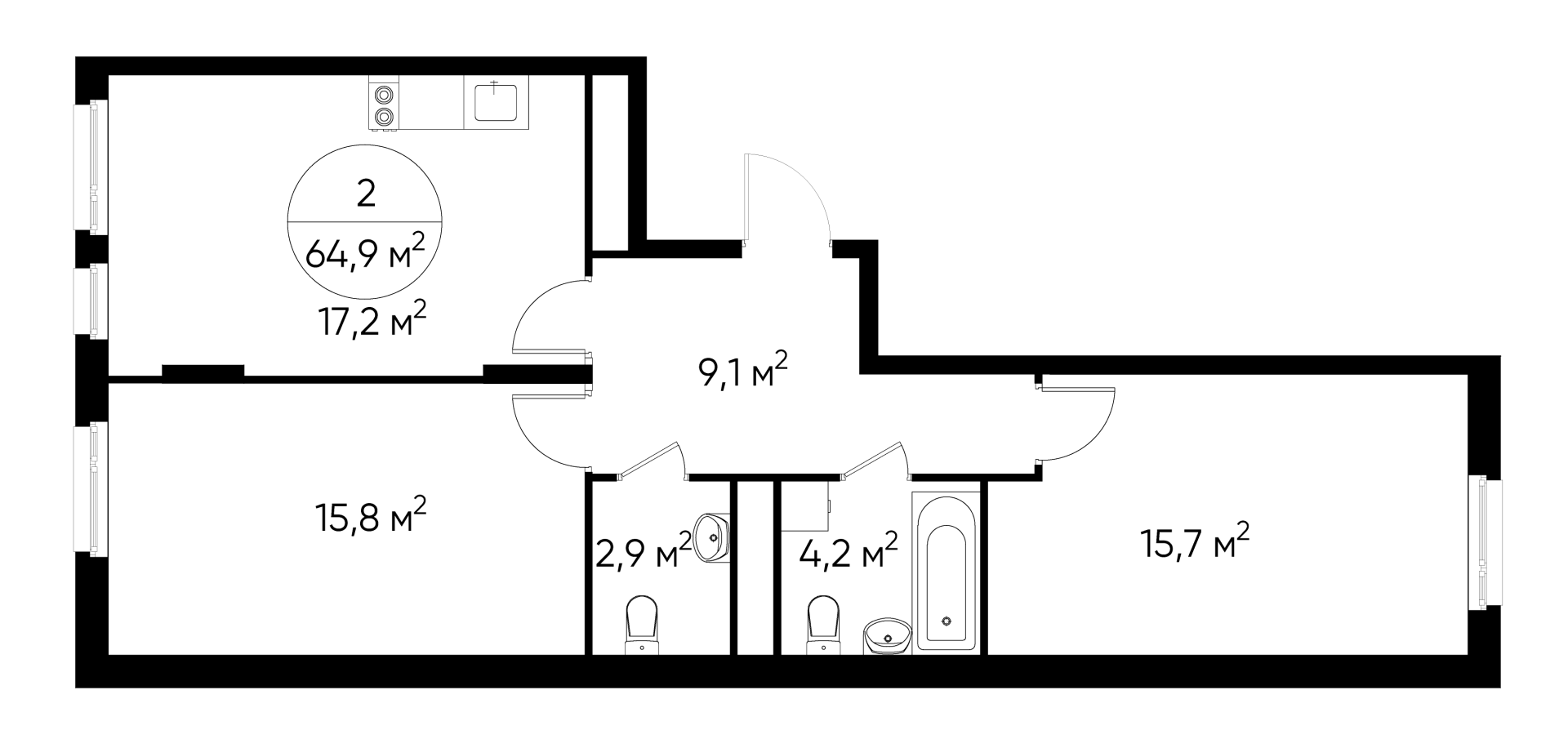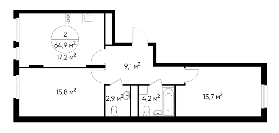2-ком, 64,9 кв.м., 9/17эт.