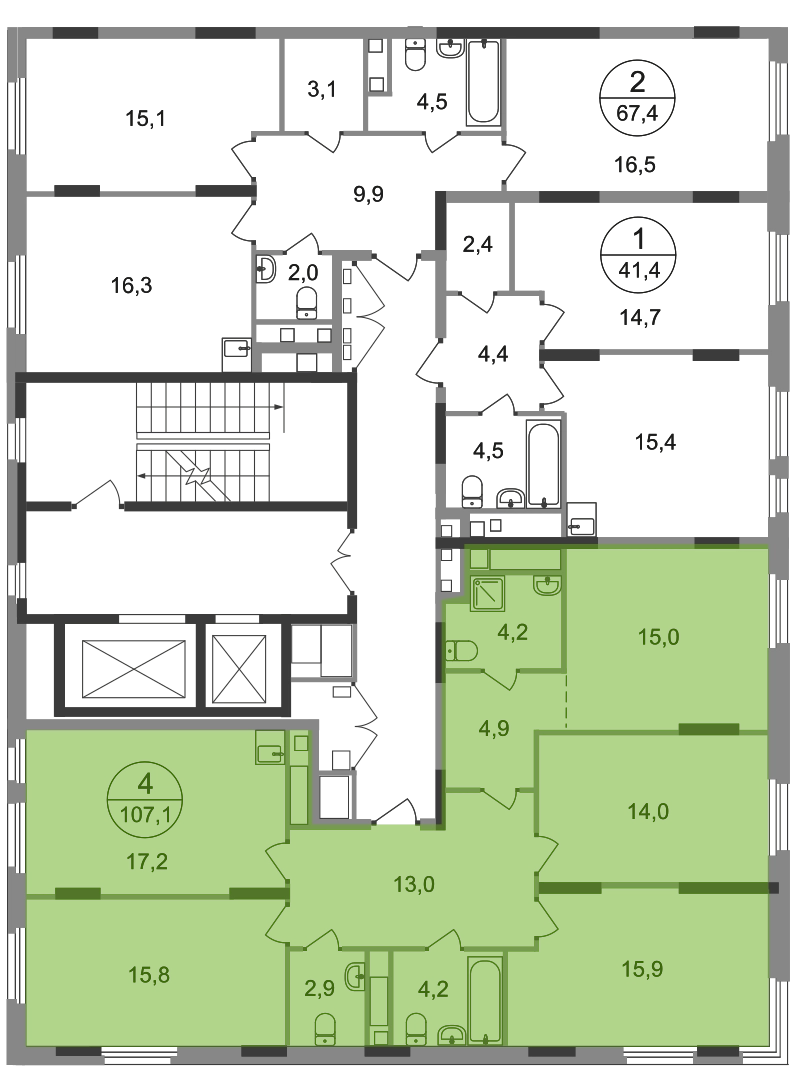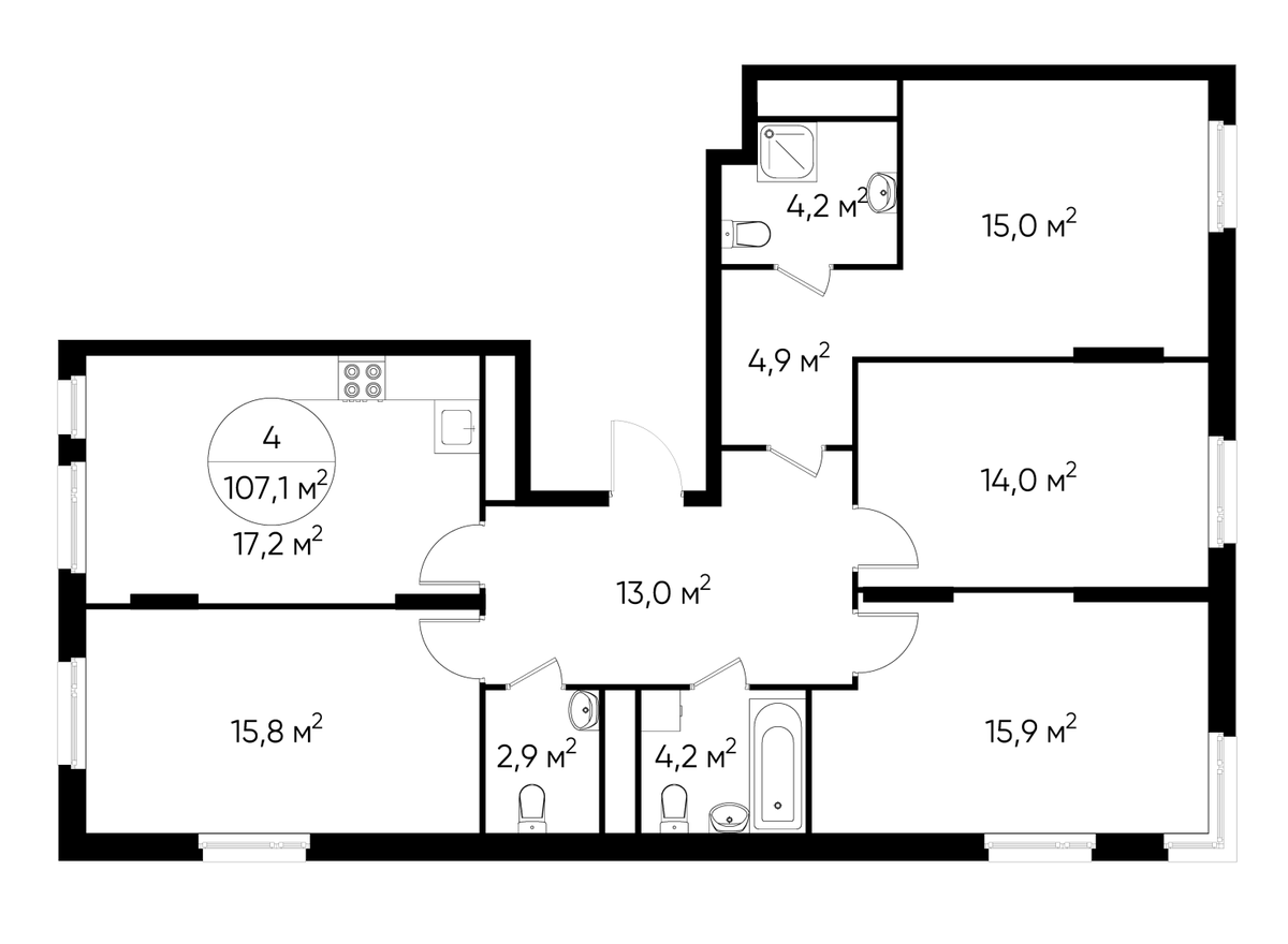 Продается четырехкомнатная квартира с отделкой в 18 фазе города-парка "Переделкино Ближнее". Общая площадь квартиры - 107,1 кв. м, этаж 15 из 17. Срок сдачи - 2 квартал 2027 года. Тип дома - монолитный. Новый корпус состоит из 12 секций c переменной этажностью 8-17 этажей: Все секции с отделкой White Box с возможностью повышения за дополнительную плату до дизайнерской отделки: Classic или Smart+ Город-парк "Переделкино Ближнее" расположен в 8 км от МКАД по Боровскому шоссе. ТРАНСПОРТНАЯ ДОСТУПНОСТЬ: - 10 минут пешком до МЦД-4 «Мичуринец» - 14 минут на машине до станции метро «Филатов Луг» Сокольнической линии - 15 минут пешком до станции метро «Рассказовка» Солнцевской линии - 30 минут до центра Москвы - Прямой выезд на дорогу Солнцево-Бутово-Варшавское шоссе, минуя жилую застройку всего ЖК РАЗВИТАЯ СОЦИАЛЬНАЯ ИНФРАСТРУКТУРА: - 7 детских садов, 3 школы - детская музыкальная школа имени Б.Л. Пастернака - поликлиника для взрослых ГБУЗ ГП № 212 ДЗМ филиал № 70 - пожарная часть №66. Аварийно-спасательный отряд № 6 ГКУ - банки, продуктовые магазины, аптеки, фитнес центры, салоны красоты и пр БЛАГОУСТРОЙСТВО: - дворы без машин - игровые зоны и развивающие детские площадки - детские площадки разделены по возрастным группам - зоны для пассивного отдыха - зоны для занятий спорта ОСОБЕННОСТИ АРХИТЕКТУРЫ: - переменная этажность открывает видовые характеристики на реку “Алешинка” и на лесопарковую зону - увеличенное остекление в квартирах - высокие потолки от 3,03 м. - безбарьерные входные группы - колясочные в каждой входной группе - кладовые помещения расположены на -1 этаже каждой секции и на 2-17 жилых этажах в секции №11 - коммерческие помещения на 1 этаже в 11 и 12 секциях - в секциях 2-4, 6-7, 11-12 по 2 лифта: 1 пассажирский, 1 грузовой - в секциях 1, 5, 8-10: 1 грузовой лифт - мусоропроводы в домах не предусмотрены, запроектированы специальные зона для сбора мусора - на фасаде предусмотрены корзины для установки кондиционеров. - видеонаблюдение установленное в холлах первых этажей, у подъездов и прилегающей территории АВТОРСКИЙ ДИЗАЙН: Входные группы выполнены по авторскому дизайну, оснащены системой «тёплый пол». В каждой входной группе будет располагаться комфортабельная зона ожидания, почтовые ящики, колясочная, акцентные пуфы и столик.О застройщике