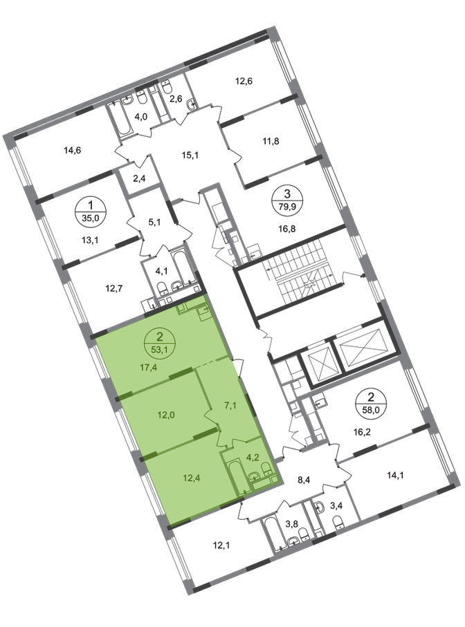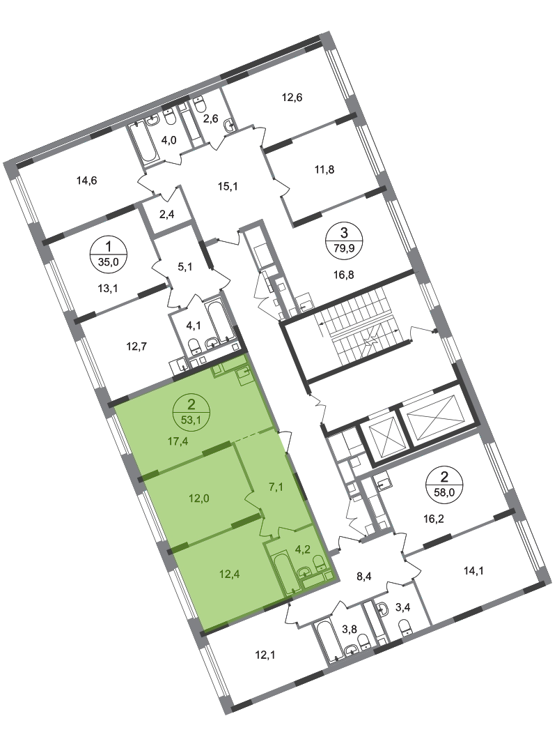 Продается двухкомнатная квартира без отделки в 18 фазе города-парка "Переделкино Ближнее". Общая площадь квартиры - 53,1 кв. м, этаж 4 из 17. Срок сдачи - 2 квартал 2027 года. Тип дома - монолитный. Новый корпус состоит из 12 секций c переменной этажностью 8-17 этажей: Все секции с отделкой White Box с возможностью повышения за дополнительную плату до дизайнерской отделки: Classic или Smart+ Город-парк "Переделкино Ближнее" расположен в 8 км от МКАД по Боровскому шоссе. ТРАНСПОРТНАЯ ДОСТУПНОСТЬ: - 10 минут пешком до МЦД-4 «Мичуринец» - 14 минут на машине до станции метро «Филатов Луг» Сокольнической линии - 15 минут пешком до станции метро «Рассказовка» Солнцевской линии - 30 минут до центра Москвы - Прямой выезд на дорогу Солнцево-Бутово-Варшавское шоссе, минуя жилую застройку всего ЖК РАЗВИТАЯ СОЦИАЛЬНАЯ ИНФРАСТРУКТУРА: - 7 детских садов, 3 школы - детская музыкальная школа имени Б.Л. Пастернака - поликлиника для взрослых ГБУЗ ГП № 212 ДЗМ филиал № 70 - пожарная часть №66. Аварийно-спасательный отряд № 6 ГКУ - банки, продуктовые магазины, аптеки, фитнес центры, салоны красоты и пр БЛАГОУСТРОЙСТВО: - дворы без машин - игровые зоны и развивающие детские площадки - детские площадки разделены по возрастным группам - зоны для пассивного отдыха - зоны для занятий спорта ОСОБЕННОСТИ АРХИТЕКТУРЫ: - переменная этажность открывает видовые характеристики на реку “Алешинка” и на лесопарковую зону - увеличенное остекление в квартирах - высокие потолки от 3,03 м. - безбарьерные входные группы - колясочные в каждой входной группе - кладовые помещения расположены на -1 этаже каждой секции и на 2-17 жилых этажах в секции №11 - коммерческие помещения на 1 этаже в 11 и 12 секциях - в секциях 2-4, 6-7, 11-12 по 2 лифта: 1 пассажирский, 1 грузовой - в секциях 1, 5, 8-10: 1 грузовой лифт - мусоропроводы в домах не предусмотрены, запроектированы специальные зона для сбора мусора - на фасаде предусмотрены корзины для установки кондиционеров. - видеонаблюдение установленное в холлах первых этажей, у подъездов и прилегающей территории АВТОРСКИЙ ДИЗАЙН: Входные группы выполнены по авторскому дизайну, оснащены системой «тёплый пол». В каждой входной группе будет располагаться комфортабельная зона ожидания, почтовые ящики, колясочная, акцентные пуфы и столик.О застройщике