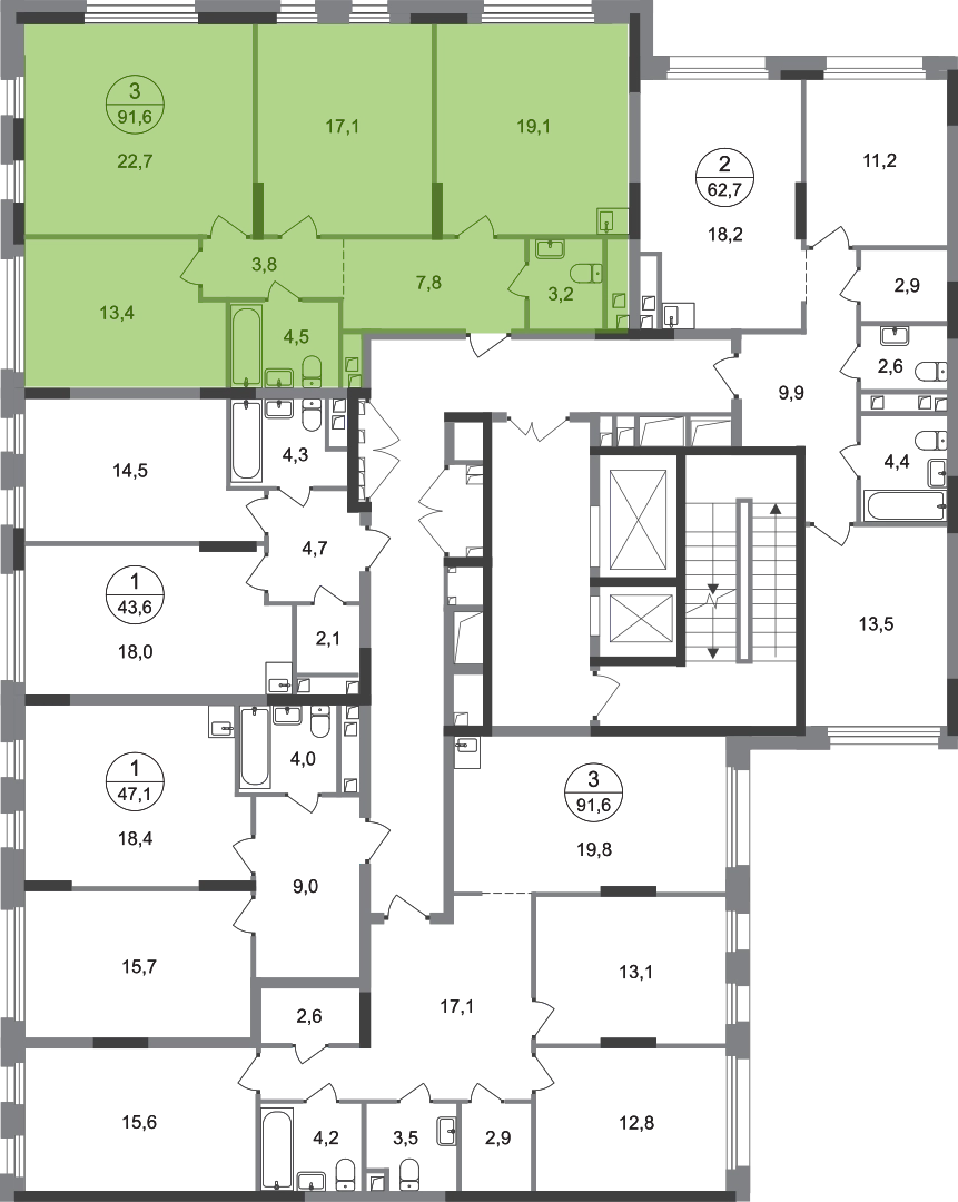 Продается трехкомнатная квартира в городе-парке "Переделкино Ближнее". Общая площадь квартиры - 91,6 кв. м, этаж 2 из 17. Срок сдачи - 3 квартал 2028 года. Тип дома - монолитный. Корпус расположен в новой 13 фазе строительства и состоит из 6 секций с переменной этажностью 12-17 этажей. Все секции с отделкой White Box с возможностью повышения за дополнительную плату до дизайнерской отделки: Classic или Smart+ Около 13 фазы запланировано строительство многоуровневого паркинга на 300 м/мест. 13 фаза имеет уникальное расположение и находится непосредственно на берегу Федосьинского пруда, который является сердцем города-парка «Переделкино Ближнее». Город-парк "Переделкино Ближнее" расположен в 8 км от МКАД по Боровскому шоссе. ТРАНСПОРТНАЯ ДОСТУПНОСТЬ: - 15 минут пешком до станции МЦД-4 «Мичуринец» - 25 минут пешком до станции метро «Рассказовка» Солнцевской линии - 30 минут до центра Москвы - 2026 г. - открытие трассы Солнцево-Бутово-Варшавское шоссе РАЗВИТАЯ СОЦИАЛЬНАЯ ИНФРАСТРУКТУРА: - 7 детских садов, 3 школы - банки, продуктовые магазины, аптеки, фитнес центры, салоны красоты и пр БЛАГОУСТРОЙСТВО: - дворы без машин - игровые зоны и развивающие детские площадки - зоны для созерцательного и медитативного отдыха - зоны для занятий спортом ОСОБЕННОСТИ АРХИТЕКТУРЫ: - высокие потолки от 3,03 м - безбарьерные входные группы - колясочные в каждой входной группе - кладовые помещения расположены на -1 этаже каждой секции - в каждой секции 2 лифта: 1 пассажирский, 1 грузовой - на фасаде предусмотрены корзины для установки кондиционеров АВТОРСКИЙ ДИЗАЙН: Входные группы выполнены по авторскому дизайну, благодаря панорамному остеклению наполнены естественным светом. В каждой входной группе будет располагаться комфортабельная зона ожидания с возможностью зарядить электронные устройства, почтовые ящики, колясочная, акцентные пуфы и столик.О застройщике