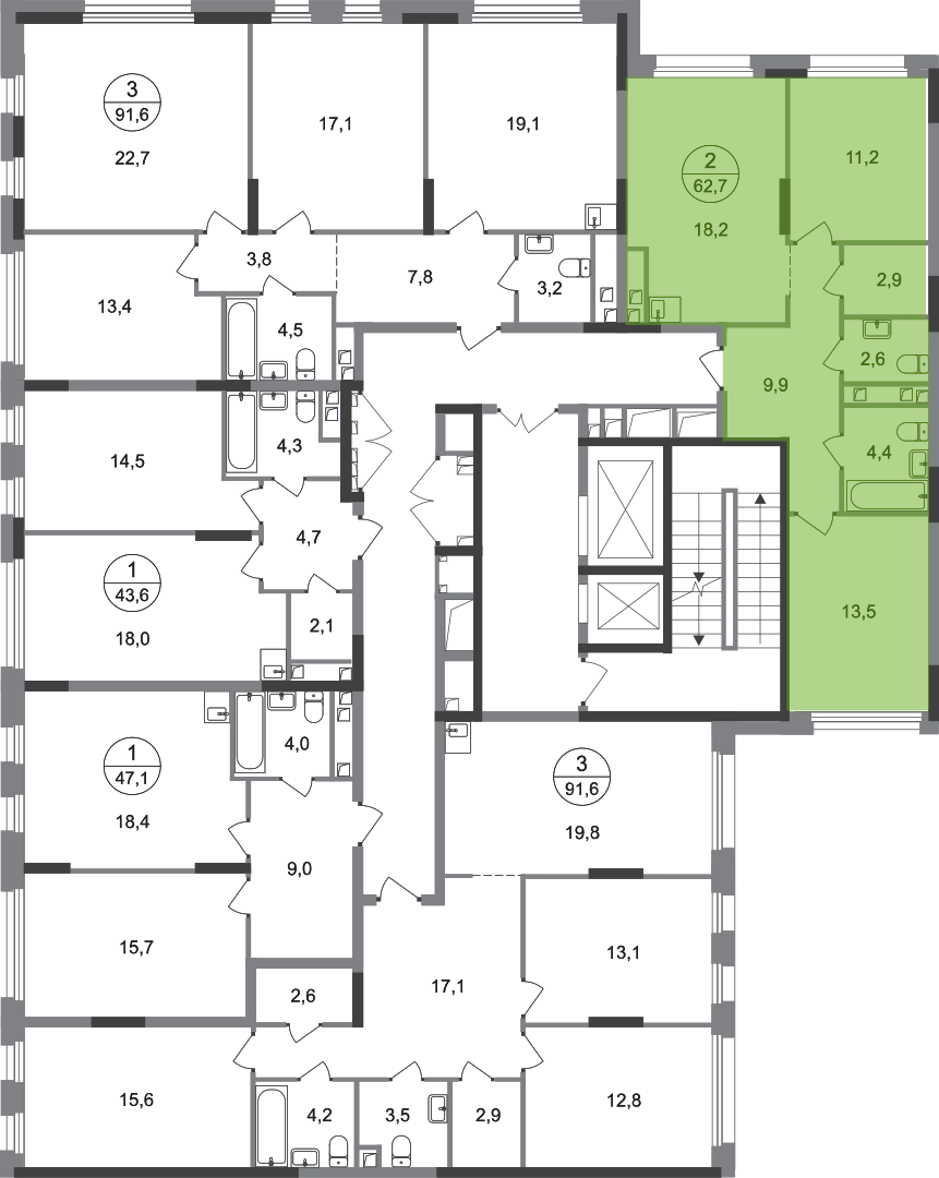 Продается двухкомнатная квартира в городе-парке "Переделкино Ближнее". Общая площадь квартиры - 62,7 кв. м, этаж 2 из 17. Срок сдачи - 3 квартал 2028 года. Тип дома - монолитный. Корпус расположен в новой 13 фазе строительства и состоит из 6 секций с переменной этажностью 12-17 этажей. Все секции с отделкой White Box с возможностью повышения за дополнительную плату до дизайнерской отделки: Classic или Smart+ Около 13 фазы запланировано строительство многоуровневого паркинга на 300 м/мест. 13 фаза имеет уникальное расположение и находится непосредственно на берегу Федосьинского пруда, который является сердцем города-парка «Переделкино Ближнее». Город-парк "Переделкино Ближнее" расположен в 8 км от МКАД по Боровскому шоссе. ТРАНСПОРТНАЯ ДОСТУПНОСТЬ: - 15 минут пешком до станции МЦД-4 «Мичуринец» - 25 минут пешком до станции метро «Рассказовка» Солнцевской линии - 30 минут до центра Москвы - 2026 г. - открытие трассы Солнцево-Бутово-Варшавское шоссе РАЗВИТАЯ СОЦИАЛЬНАЯ ИНФРАСТРУКТУРА: - 7 детских садов, 3 школы - банки, продуктовые магазины, аптеки, фитнес центры, салоны красоты и пр БЛАГОУСТРОЙСТВО: - дворы без машин - игровые зоны и развивающие детские площадки - зоны для созерцательного и медитативного отдыха - зоны для занятий спортом ОСОБЕННОСТИ АРХИТЕКТУРЫ: - высокие потолки от 3,03 м - безбарьерные входные группы - колясочные в каждой входной группе - кладовые помещения расположены на -1 этаже каждой секции - в каждой секции 2 лифта: 1 пассажирский, 1 грузовой - на фасаде предусмотрены корзины для установки кондиционеров АВТОРСКИЙ ДИЗАЙН: Входные группы выполнены по авторскому дизайну, благодаря панорамному остеклению наполнены естественным светом. В каждой входной группе будет располагаться комфортабельная зона ожидания с возможностью зарядить электронные устройства, почтовые ящики, колясочная, акцентные пуфы и столик.О застройщике