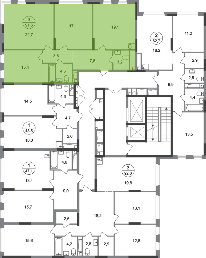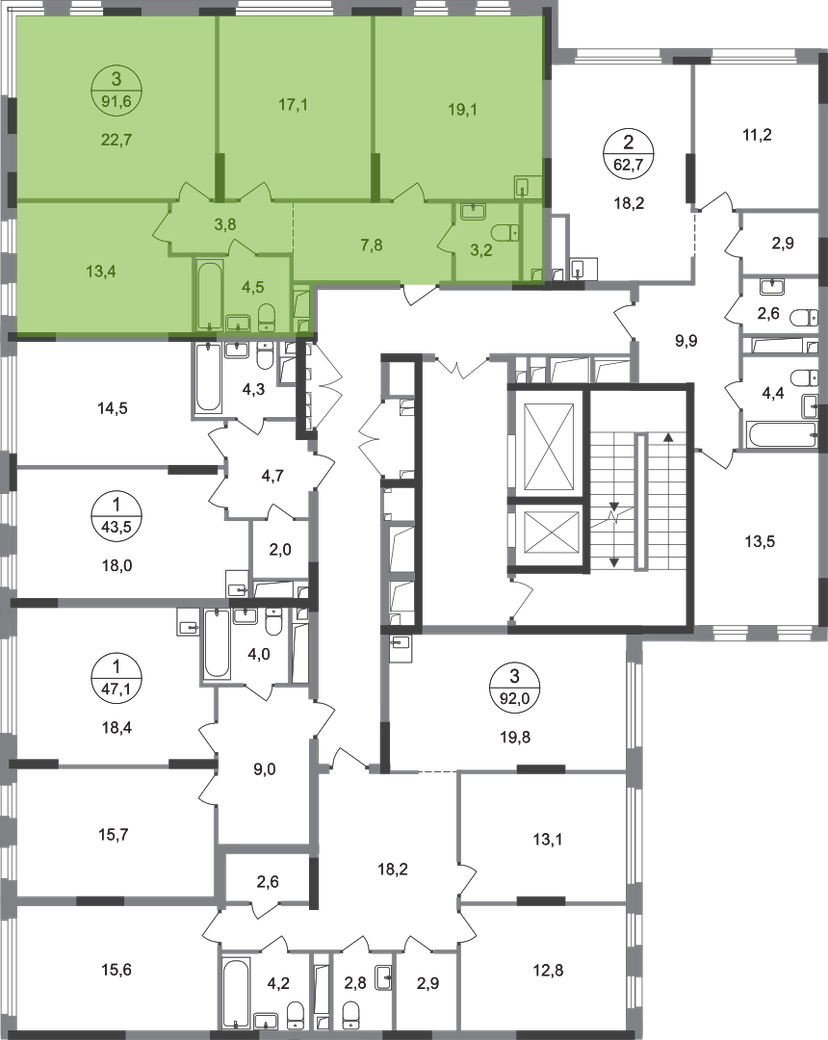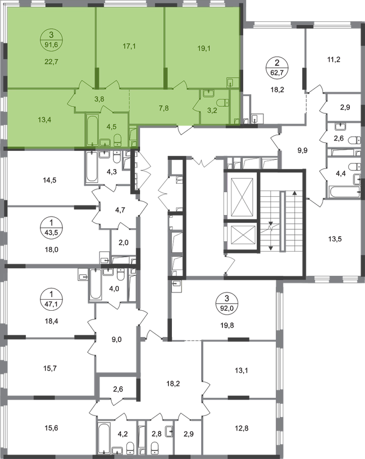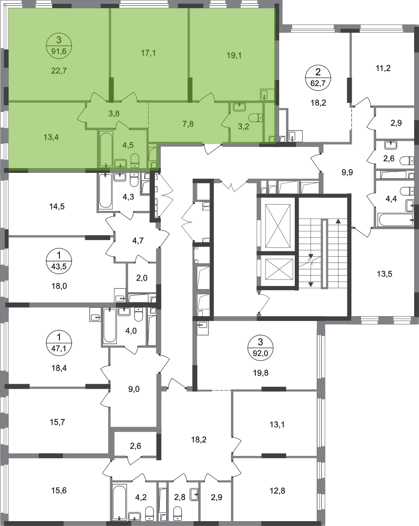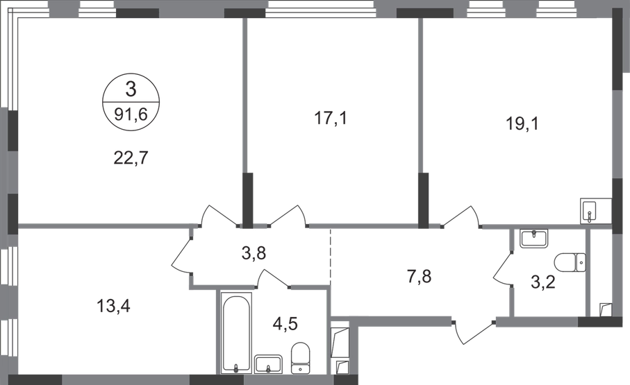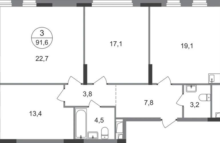 Продается трехкомнатная квартира в городе-парке "Переделкино Ближнее". Общая площадь квартиры - 91,6 кв. м, этаж 8 из 17. Срок сдачи - 3 квартал 2028 года. Тип дома - монолитный. Корпус расположен в новой 13 фазе строительства и состоит из 6 секций с переменной этажностью 12-17 этажей. Все секции с отделкой White Box с возможностью повышения за дополнительную плату до дизайнерской отделки: Classic или Smart+ Около 13 фазы запланировано строительство многоуровневого паркинга на 300 м/мест. 13 фаза имеет уникальное расположение и находится непосредственно на берегу Федосьинского пруда, который является сердцем города-парка «Переделкино Ближнее». Город-парк "Переделкино Ближнее" расположен в 8 км от МКАД по Боровскому шоссе. ТРАНСПОРТНАЯ ДОСТУПНОСТЬ: - 15 минут пешком до станции МЦД-4 «Мичуринец» - 25 минут пешком до станции метро «Рассказовка» Солнцевской линии - 30 минут до центра Москвы - 2026 г. - открытие трассы Солнцево-Бутово-Варшавское шоссе РАЗВИТАЯ СОЦИАЛЬНАЯ ИНФРАСТРУКТУРА: - 7 детских садов, 3 школы - банки, продуктовые магазины, аптеки, фитнес центры, салоны красоты и пр БЛАГОУСТРОЙСТВО: - дворы без машин - игровые зоны и развивающие детские площадки - зоны для созерцательного и медитативного отдыха - зоны для занятий спортом ОСОБЕННОСТИ АРХИТЕКТУРЫ: - высокие потолки от 3,03 м - безбарьерные входные группы - колясочные в каждой входной группе - кладовые помещения расположены на -1 этаже каждой секции - в каждой секции 2 лифта: 1 пассажирский, 1 грузовой - на фасаде предусмотрены корзины для установки кондиционеров АВТОРСКИЙ ДИЗАЙН: Входные группы выполнены по авторскому дизайну, благодаря панорамному остеклению наполнены естественным светом. В каждой входной группе будет располагаться комфортабельная зона ожидания с возможностью зарядить электронные устройства, почтовые ящики, колясочная, акцентные пуфы и столик.О застройщике