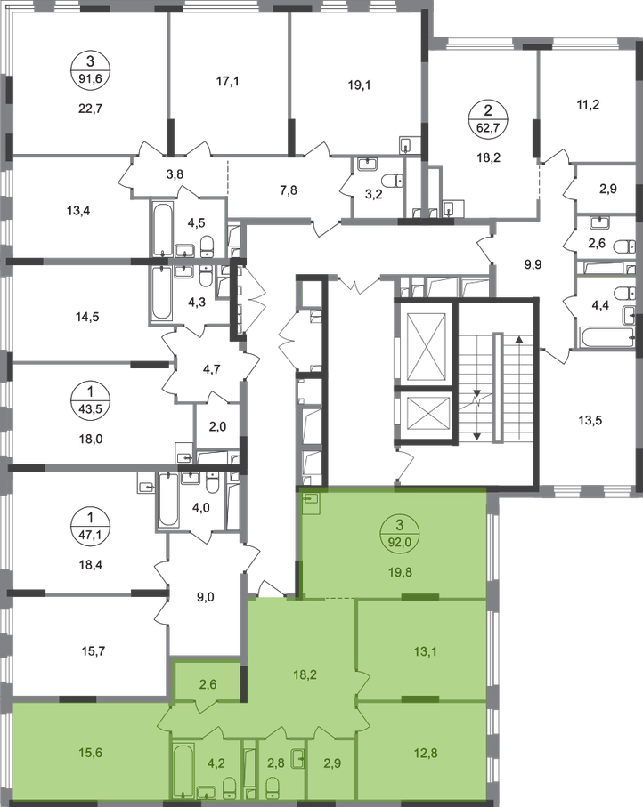 Продается трехкомнатная квартира в городе-парке "Переделкино Ближнее". Общая площадь квартиры - 92 кв. м, этаж 12 из 17. Срок сдачи - 3 квартал 2028 года. Тип дома - монолитный. Корпус расположен в новой 13 фазе строительства и состоит из 6 секций с переменной этажностью 12-17 этажей. Все секции с отделкой White Box с возможностью повышения за дополнительную плату до дизайнерской отделки: Classic или Smart+ Около 13 фазы запланировано строительство многоуровневого паркинга на 300 м/мест. 13 фаза имеет уникальное расположение и находится непосредственно на берегу Федосьинского пруда, который является сердцем города-парка «Переделкино Ближнее». Город-парк "Переделкино Ближнее" расположен в 8 км от МКАД по Боровскому шоссе. ТРАНСПОРТНАЯ ДОСТУПНОСТЬ: - 15 минут пешком до станции МЦД-4 «Мичуринец» - 25 минут пешком до станции метро «Рассказовка» Солнцевской линии - 30 минут до центра Москвы - 2026 г. - открытие трассы Солнцево-Бутово-Варшавское шоссе РАЗВИТАЯ СОЦИАЛЬНАЯ ИНФРАСТРУКТУРА: - 7 детских садов, 3 школы - банки, продуктовые магазины, аптеки, фитнес центры, салоны красоты и пр БЛАГОУСТРОЙСТВО: - дворы без машин - игровые зоны и развивающие детские площадки - зоны для созерцательного и медитативного отдыха - зоны для занятий спортом ОСОБЕННОСТИ АРХИТЕКТУРЫ: - высокие потолки от 3,03 м - безбарьерные входные группы - колясочные в каждой входной группе - кладовые помещения расположены на -1 этаже каждой секции - в каждой секции 2 лифта: 1 пассажирский, 1 грузовой - на фасаде предусмотрены корзины для установки кондиционеров АВТОРСКИЙ ДИЗАЙН: Входные группы выполнены по авторскому дизайну, благодаря панорамному остеклению наполнены естественным светом. В каждой входной группе будет располагаться комфортабельная зона ожидания с возможностью зарядить электронные устройства, почтовые ящики, колясочная, акцентные пуфы и столик.О застройщике