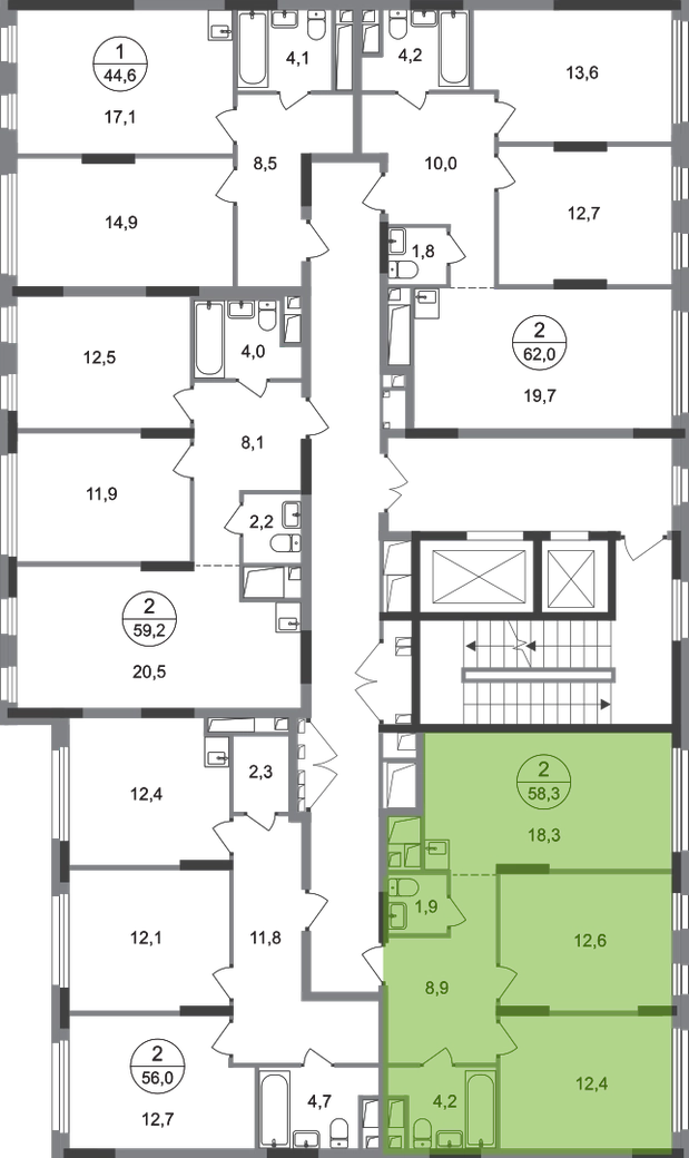Продается двухкомнатная квартира в городе-парке "Переделкино Ближнее". Общая площадь квартиры - 58,3 кв. м, этаж 8 из 17. Срок сдачи - 3 квартал 2028 года. Тип дома - монолитный. Корпус расположен в новой 13 фазе строительства и состоит из 6 секций с переменной этажностью 12-17 этажей. Все секции с отделкой White Box с возможностью повышения за дополнительную плату до дизайнерской отделки: Classic или Smart+ Около 13 фазы запланировано строительство многоуровневого паркинга на 300 м/мест. 13 фаза имеет уникальное расположение и находится непосредственно на берегу Федосьинского пруда, который является сердцем города-парка «Переделкино Ближнее». Город-парк "Переделкино Ближнее" расположен в 8 км от МКАД по Боровскому шоссе. ТРАНСПОРТНАЯ ДОСТУПНОСТЬ: - 15 минут пешком до станции МЦД-4 «Мичуринец» - 25 минут пешком до станции метро «Рассказовка» Солнцевской линии - 30 минут до центра Москвы - 2026 г. - открытие трассы Солнцево-Бутово-Варшавское шоссе РАЗВИТАЯ СОЦИАЛЬНАЯ ИНФРАСТРУКТУРА: - 7 детских садов, 3 школы - банки, продуктовые магазины, аптеки, фитнес центры, салоны красоты и пр БЛАГОУСТРОЙСТВО: - дворы без машин - игровые зоны и развивающие детские площадки - зоны для созерцательного и медитативного отдыха - зоны для занятий спортом ОСОБЕННОСТИ АРХИТЕКТУРЫ: - высокие потолки от 3,03 м - безбарьерные входные группы - колясочные в каждой входной группе - кладовые помещения расположены на -1 этаже каждой секции - в каждой секции 2 лифта: 1 пассажирский, 1 грузовой - на фасаде предусмотрены корзины для установки кондиционеров АВТОРСКИЙ ДИЗАЙН: Входные группы выполнены по авторскому дизайну, благодаря панорамному остеклению наполнены естественным светом. В каждой входной группе будет располагаться комфортабельная зона ожидания с возможностью зарядить электронные устройства, почтовые ящики, колясочная, акцентные пуфы и столик.О застройщике