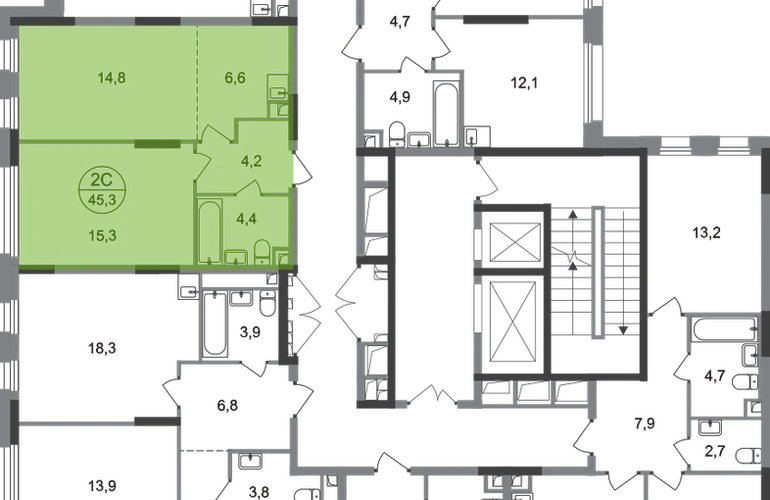 Продается двухкомнатная квартира в городе-парке "Переделкино Ближнее". Общая площадь квартиры - 45,3 кв. м, этаж 2 из 17. Срок сдачи - 3 квартал 2028 года. Тип дома - монолитный. Корпус расположен в новой 13 фазе строительства и состоит из 6 секций с переменной этажностью 12-17 этажей. Все секции с отделкой White Box с возможностью повышения за дополнительную плату до дизайнерской отделки: Classic или Smart+ Около 13 фазы запланировано строительство многоуровневого паркинга на 300 м/мест. 13 фаза имеет уникальное расположение и находится непосредственно на берегу Федосьинского пруда, который является сердцем города-парка «Переделкино Ближнее». Город-парк "Переделкино Ближнее" расположен в 8 км от МКАД по Боровскому шоссе. ТРАНСПОРТНАЯ ДОСТУПНОСТЬ: - 15 минут пешком до станции МЦД-4 «Мичуринец» - 25 минут пешком до станции метро «Рассказовка» Солнцевской линии - 30 минут до центра Москвы - 2026 г. - открытие трассы Солнцево-Бутово-Варшавское шоссе РАЗВИТАЯ СОЦИАЛЬНАЯ ИНФРАСТРУКТУРА: - 7 детских садов, 3 школы - банки, продуктовые магазины, аптеки, фитнес центры, салоны красоты и пр БЛАГОУСТРОЙСТВО: - дворы без машин - игровые зоны и развивающие детские площадки - зоны для созерцательного и медитативного отдыха - зоны для занятий спортом ОСОБЕННОСТИ АРХИТЕКТУРЫ: - высокие потолки от 3,03 м - безбарьерные входные группы - колясочные в каждой входной группе - кладовые помещения расположены на -1 этаже каждой секции - в каждой секции 2 лифта: 1 пассажирский, 1 грузовой - на фасаде предусмотрены корзины для установки кондиционеров АВТОРСКИЙ ДИЗАЙН: Входные группы выполнены по авторскому дизайну, благодаря панорамному остеклению наполнены естественным светом. В каждой входной группе будет располагаться комфортабельная зона ожидания с возможностью зарядить электронные устройства, почтовые ящики, колясочная, акцентные пуфы и столик.О застройщике