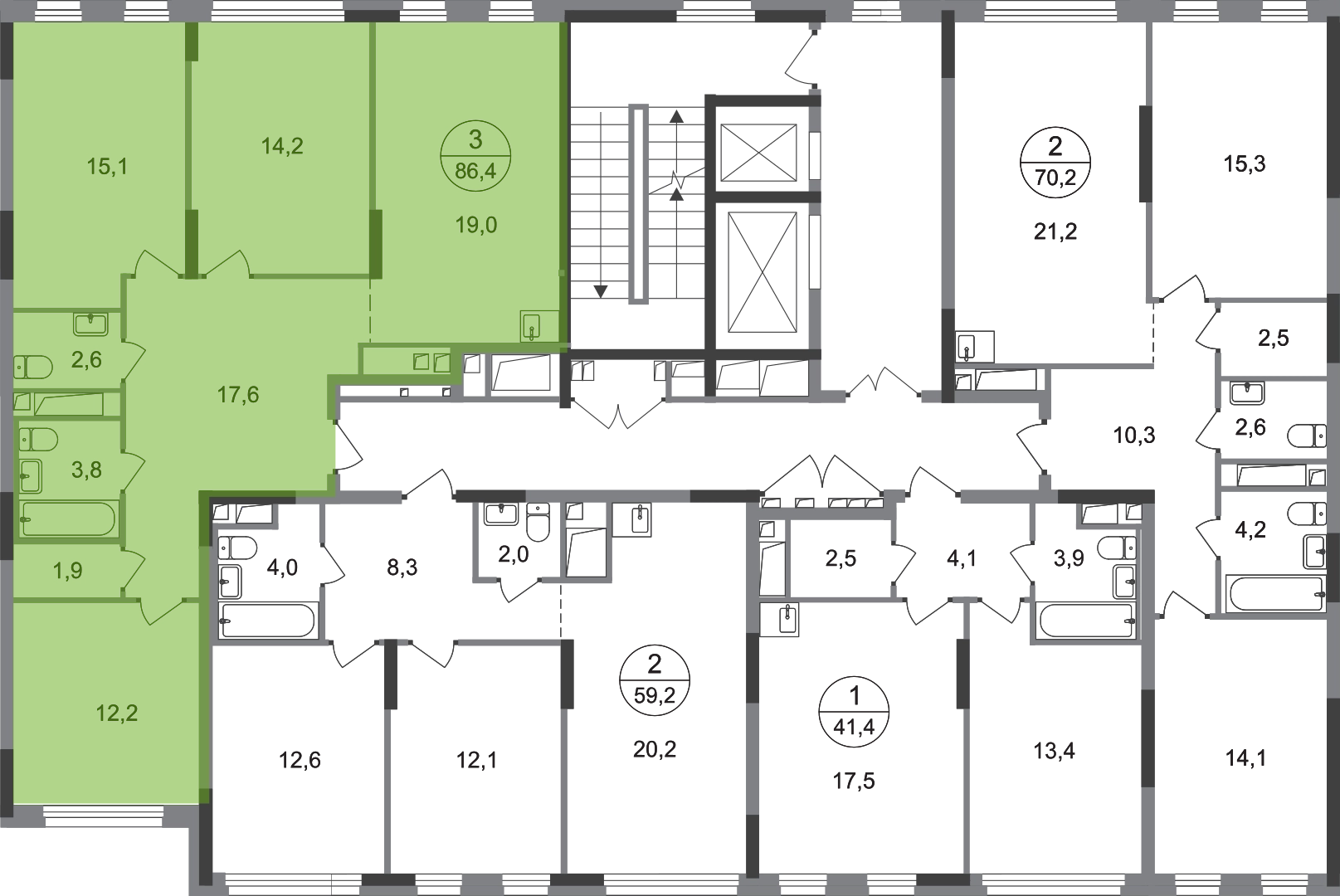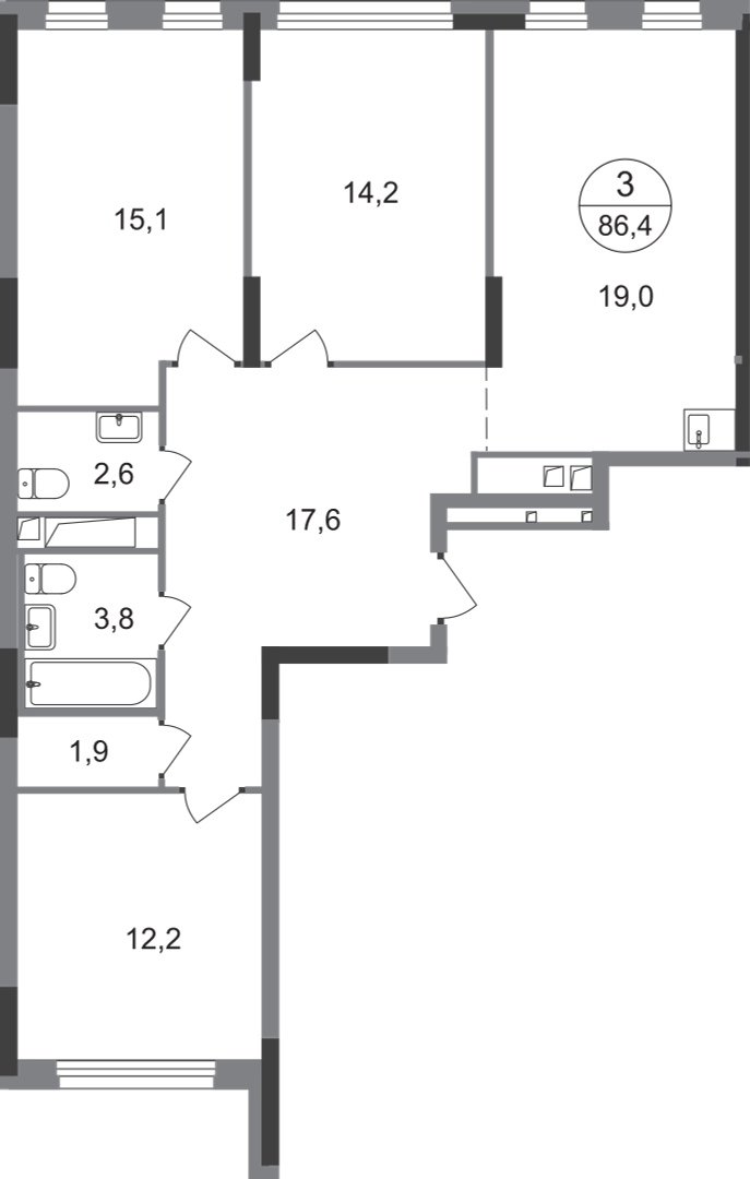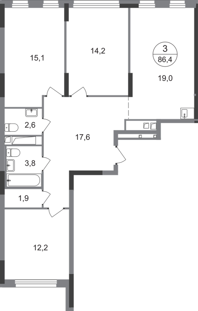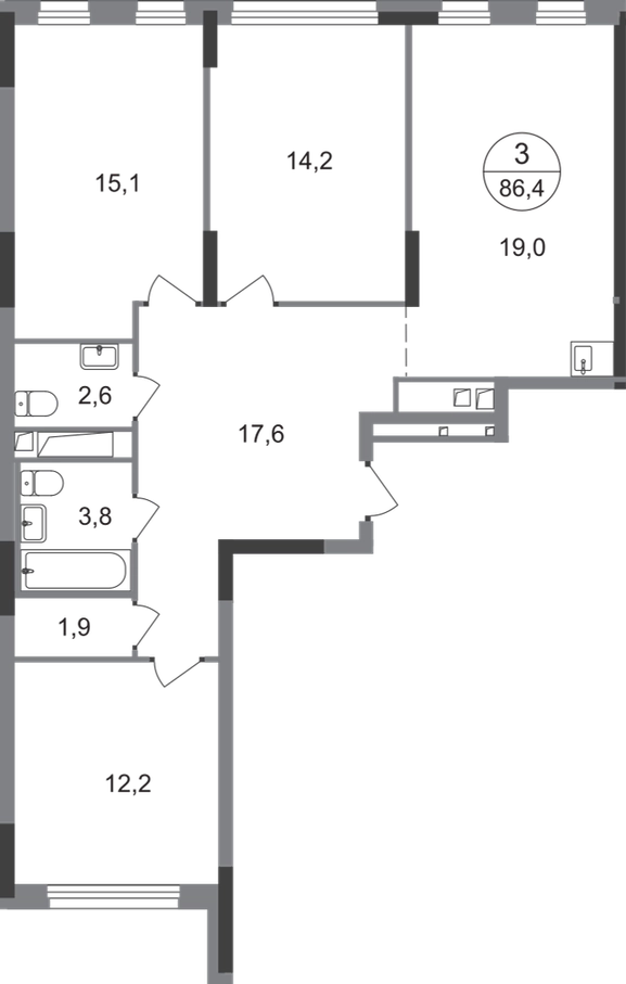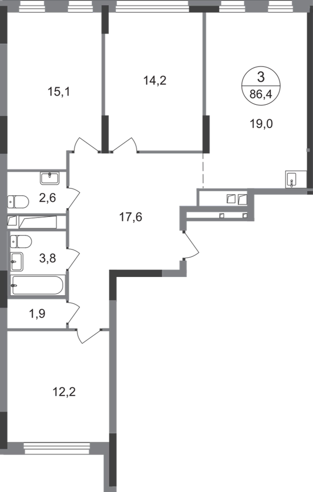 Продается трехкомнатная квартира в городе-парке "Переделкино Ближнее". Общая площадь квартиры - 86,4 кв. м, этаж 3 из 17. Срок сдачи - 3 квартал 2028 года. Тип дома - монолитный. Корпус расположен в новой 13 фазе строительства и состоит из 6 секций с переменной этажностью 12-17 этажей. Все секции с отделкой White Box с возможностью повышения за дополнительную плату до дизайнерской отделки: Classic или Smart+ Около 13 фазы запланировано строительство многоуровневого паркинга на 300 м/мест. 13 фаза имеет уникальное расположение и находится непосредственно на берегу Федосьинского пруда, который является сердцем города-парка «Переделкино Ближнее». Город-парк "Переделкино Ближнее" расположен в 8 км от МКАД по Боровскому шоссе. ТРАНСПОРТНАЯ ДОСТУПНОСТЬ: - 15 минут пешком до станции МЦД-4 «Мичуринец» - 25 минут пешком до станции метро «Рассказовка» Солнцевской линии - 30 минут до центра Москвы - 2026 г. - открытие трассы Солнцево-Бутово-Варшавское шоссе РАЗВИТАЯ СОЦИАЛЬНАЯ ИНФРАСТРУКТУРА: - 7 детских садов, 3 школы - банки, продуктовые магазины, аптеки, фитнес центры, салоны красоты и пр БЛАГОУСТРОЙСТВО: - дворы без машин - игровые зоны и развивающие детские площадки - зоны для созерцательного и медитативного отдыха - зоны для занятий спортом ОСОБЕННОСТИ АРХИТЕКТУРЫ: - высокие потолки от 3,03 м - безбарьерные входные группы - колясочные в каждой входной группе - кладовые помещения расположены на -1 этаже каждой секции - в каждой секции 2 лифта: 1 пассажирский, 1 грузовой - на фасаде предусмотрены корзины для установки кондиционеров АВТОРСКИЙ ДИЗАЙН: Входные группы выполнены по авторскому дизайну, благодаря панорамному остеклению наполнены естественным светом. В каждой входной группе будет располагаться комфортабельная зона ожидания с возможностью зарядить электронные устройства, почтовые ящики, колясочная, акцентные пуфы и столик.О застройщике