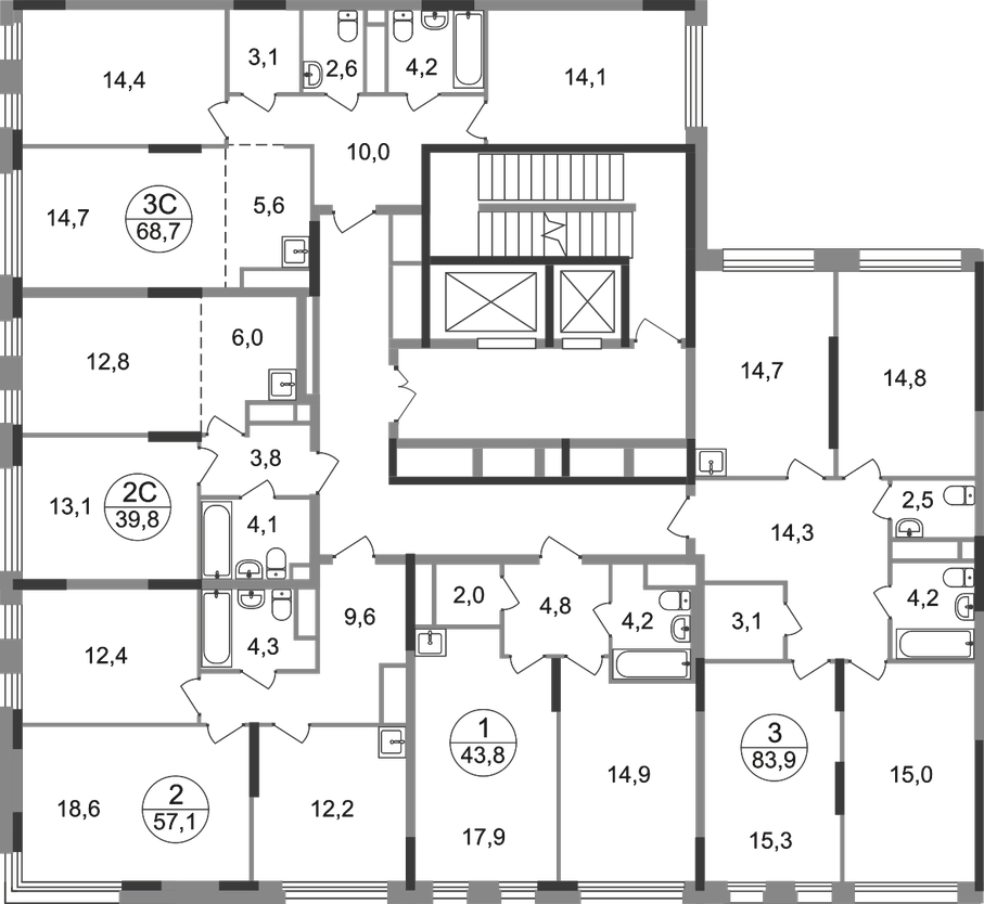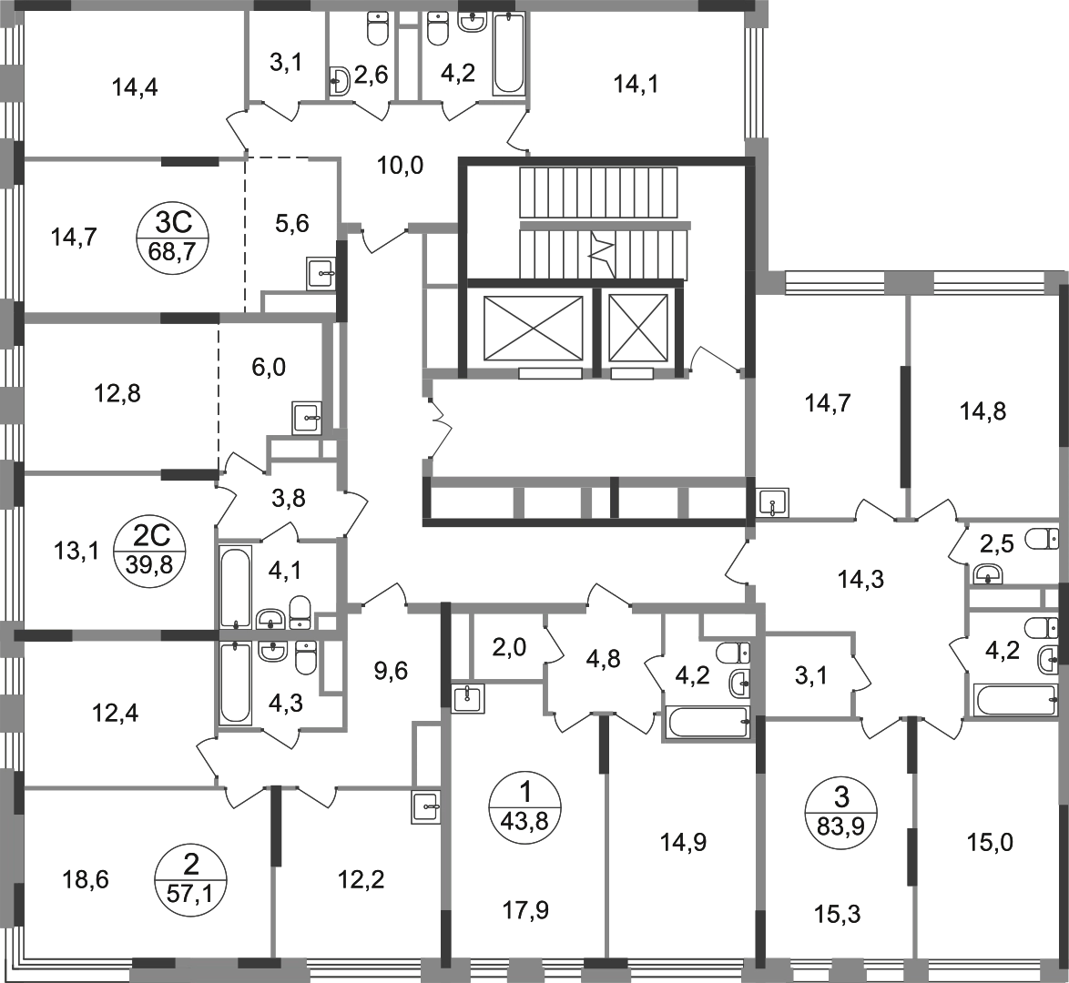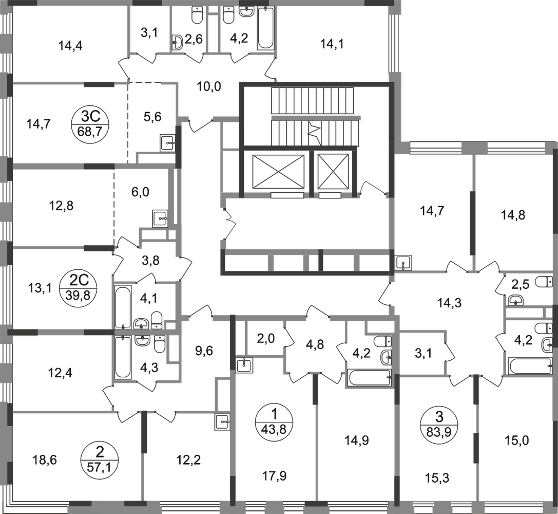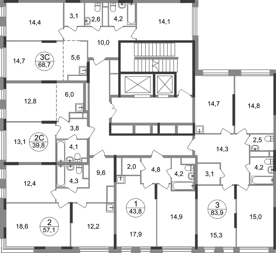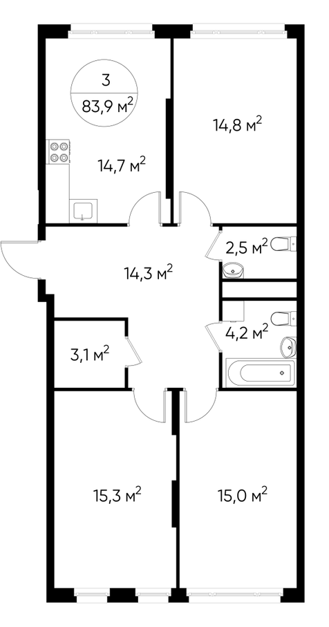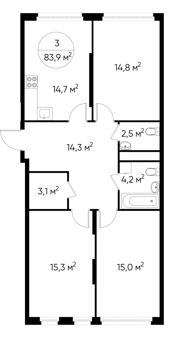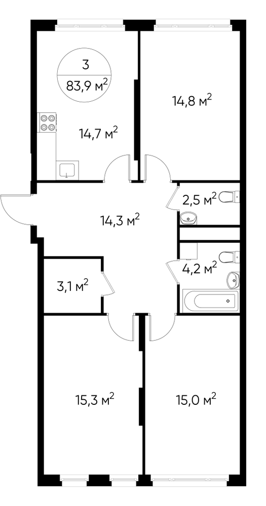 Продается трехкомнатная квартира в городе-парке "Переделкино Ближнее". Общая площадь квартиры - 83,9 кв. м, этаж 3 из 17. Срок сдачи - 1 квартал 2028 года. Тип дома - монолитный. Корпус расположен в новой 13 фазе строительства и состоит из 8 секций с переменной этажностью 12-17 этажей. Все секции без отделки. Около 13 фазы запланировано строительство многоуровневого паркинга на 300 м/мест. 13 фаза имеет уникальное расположение и находится непосредственно на берегу Федосьинского пруда, который является сердцем города-парка «Переделкино Ближнее». Город-парк "Переделкино Ближнее" расположен в 8 км от МКАД по Боровскому шоссе. ТРАНСПОРТНАЯ ДОСТУПНОСТЬ: - 15 минут пешком до станции МЦД-4 «Мичуринец» - 25 минут пешком до станции метро «Рассказовка» Солнцевской линии - 30 минут до центра Москвы - 2026 г. - открытие трассы Солнцево-Бутово-Варшавское шоссе РАЗВИТАЯ СОЦИАЛЬНАЯ ИНФРАСТРУКТУРА: - 7 детских садов, 3 школы - банки, продуктовые магазины, аптеки, фитнес центры, салоны красоты и пр БЛАГОУСТРОЙСТВО: - дворы без машин - игровые зоны и развивающие детские площадки - зоны для созерцательного и медитативного отдыха - зоны для занятий спортом ОСОБЕННОСТИ АРХИТЕКТУРЫ: - высокие потолки от 3,03 м - безбарьерные входные группы - колясочные в каждой входной группе - кладовые помещения расположены на -1 этаже каждой секции - в каждой секции 2 лифта: 1 пассажирский, 1 грузовой - на фасаде предусмотрены корзины для установки кондиционеров АВТОРСКИЙ ДИЗАЙН: Входные группы выполнены по авторскому дизайну, благодаря панорамному остеклению наполнены естественным светом. В каждой входной группе будет располагаться комфортабельная зона ожидания с возможностью зарядить электронные устройства, почтовые ящики, колясочная, акцентные пуфы и столик.О застройщике