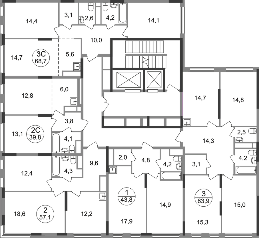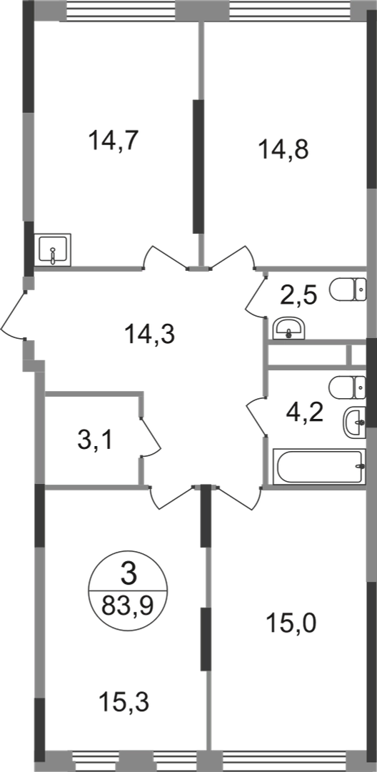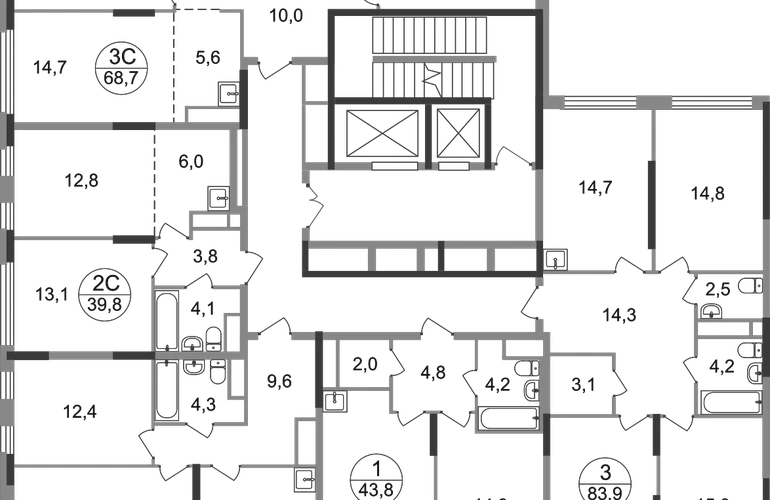 Продается трехкомнатная квартира в городе-парке "Переделкино Ближнее". Общая площадь квартиры - 83,9 кв. м, этаж 12 из 17. Срок сдачи - 1 квартал 2028 года. Тип дома - монолитный. Корпус расположен в новой 13 фазе строительства и состоит из 8 секций с переменной этажностью 12-17 этажей. Все секции без отделки. Около 13 фазы запланировано строительство многоуровневого паркинга на 300 м/мест. 13 фаза имеет уникальное расположение и находится непосредственно на берегу Федосьинского пруда, который является сердцем города-парка «Переделкино Ближнее». Город-парк "Переделкино Ближнее" расположен в 8 км от МКАД по Боровскому шоссе. ТРАНСПОРТНАЯ ДОСТУПНОСТЬ: - 15 минут пешком до станции МЦД-4 «Мичуринец» - 25 минут пешком до станции метро «Рассказовка» Солнцевской линии - 30 минут до центра Москвы - 2026 г. - открытие трассы Солнцево-Бутово-Варшавское шоссе РАЗВИТАЯ СОЦИАЛЬНАЯ ИНФРАСТРУКТУРА: - 7 детских садов, 3 школы - банки, продуктовые магазины, аптеки, фитнес центры, салоны красоты и пр БЛАГОУСТРОЙСТВО: - дворы без машин - игровые зоны и развивающие детские площадки - зоны для созерцательного и медитативного отдыха - зоны для занятий спортом ОСОБЕННОСТИ АРХИТЕКТУРЫ: - высокие потолки от 3,03 м - безбарьерные входные группы - колясочные в каждой входной группе - кладовые помещения расположены на -1 этаже каждой секции - в каждой секции 2 лифта: 1 пассажирский, 1 грузовой - на фасаде предусмотрены корзины для установки кондиционеров АВТОРСКИЙ ДИЗАЙН: Входные группы выполнены по авторскому дизайну, благодаря панорамному остеклению наполнены естественным светом. В каждой входной группе будет располагаться комфортабельная зона ожидания с возможностью зарядить электронные устройства, почтовые ящики, колясочная, акцентные пуфы и столик.О застройщике