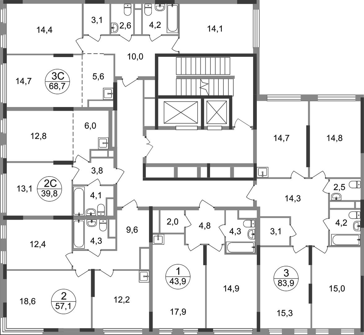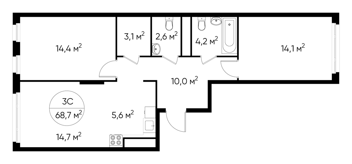 Продается трехкомнатная квартира в городе-парке "Переделкино Ближнее". Общая площадь квартиры - 68,7 кв. м, этаж 14 из 17. Срок сдачи - 1 квартал 2028 года. Тип дома - монолитный. Корпус расположен в новой 13 фазе строительства и состоит из 8 секций с переменной этажностью 12-17 этажей. Все секции без отделки. Около 13 фазы запланировано строительство многоуровневого паркинга на 300 м/мест. 13 фаза имеет уникальное расположение и находится непосредственно на берегу Федосьинского пруда, который является сердцем города-парка «Переделкино Ближнее». Город-парк "Переделкино Ближнее" расположен в 8 км от МКАД по Боровскому шоссе. ТРАНСПОРТНАЯ ДОСТУПНОСТЬ: - 15 минут пешком до станции МЦД-4 «Мичуринец» - 25 минут пешком до станции метро «Рассказовка» Солнцевской линии - 30 минут до центра Москвы - 2026 г. - открытие трассы Солнцево-Бутово-Варшавское шоссе РАЗВИТАЯ СОЦИАЛЬНАЯ ИНФРАСТРУКТУРА: - 7 детских садов, 3 школы - банки, продуктовые магазины, аптеки, фитнес центры, салоны красоты и пр БЛАГОУСТРОЙСТВО: - дворы без машин - игровые зоны и развивающие детские площадки - зоны для созерцательного и медитативного отдыха - зоны для занятий спортом ОСОБЕННОСТИ АРХИТЕКТУРЫ: - высокие потолки от 3,03 м - безбарьерные входные группы - колясочные в каждой входной группе - кладовые помещения расположены на -1 этаже каждой секции - в каждой секции 2 лифта: 1 пассажирский, 1 грузовой - на фасаде предусмотрены корзины для установки кондиционеров АВТОРСКИЙ ДИЗАЙН: Входные группы выполнены по авторскому дизайну, благодаря панорамному остеклению наполнены естественным светом. В каждой входной группе будет располагаться комфортабельная зона ожидания с возможностью зарядить электронные устройства, почтовые ящики, колясочная, акцентные пуфы и столик.О застройщике