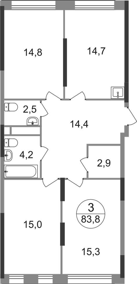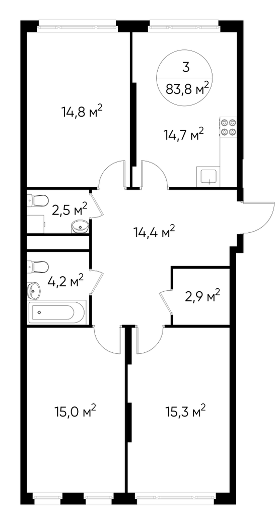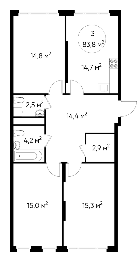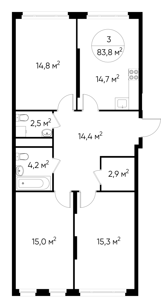 Продается трехкомнатная квартира в городе-парке "Переделкино Ближнее". Общая площадь квартиры - 83,8 кв. м, этаж 8 из 17. Срок сдачи - 1 квартал 2028 года. Тип дома - монолитный. Корпус расположен в новой 13 фазе строительства и состоит из 8 секций с переменной этажностью 12-17 этажей. Все секции без отделки. Около 13 фазы запланировано строительство многоуровневого паркинга на 300 м/мест. 13 фаза имеет уникальное расположение и находится непосредственно на берегу Федосьинского пруда, который является сердцем города-парка «Переделкино Ближнее». Город-парк "Переделкино Ближнее" расположен в 8 км от МКАД по Боровскому шоссе. ТРАНСПОРТНАЯ ДОСТУПНОСТЬ: - 15 минут пешком до станции МЦД-4 «Мичуринец» - 25 минут пешком до станции метро «Рассказовка» Солнцевской линии - 30 минут до центра Москвы - 2026 г. - открытие трассы Солнцево-Бутово-Варшавское шоссе РАЗВИТАЯ СОЦИАЛЬНАЯ ИНФРАСТРУКТУРА: - 7 детских садов, 3 школы - банки, продуктовые магазины, аптеки, фитнес центры, салоны красоты и пр БЛАГОУСТРОЙСТВО: - дворы без машин - игровые зоны и развивающие детские площадки - зоны для созерцательного и медитативного отдыха - зоны для занятий спортом ОСОБЕННОСТИ АРХИТЕКТУРЫ: - высокие потолки от 3,03 м - безбарьерные входные группы - колясочные в каждой входной группе - кладовые помещения расположены на -1 этаже каждой секции - в каждой секции 2 лифта: 1 пассажирский, 1 грузовой - на фасаде предусмотрены корзины для установки кондиционеров АВТОРСКИЙ ДИЗАЙН: Входные группы выполнены по авторскому дизайну, благодаря панорамному остеклению наполнены естественным светом. В каждой входной группе будет располагаться комфортабельная зона ожидания с возможностью зарядить электронные устройства, почтовые ящики, колясочная, акцентные пуфы и столик.О застройщике