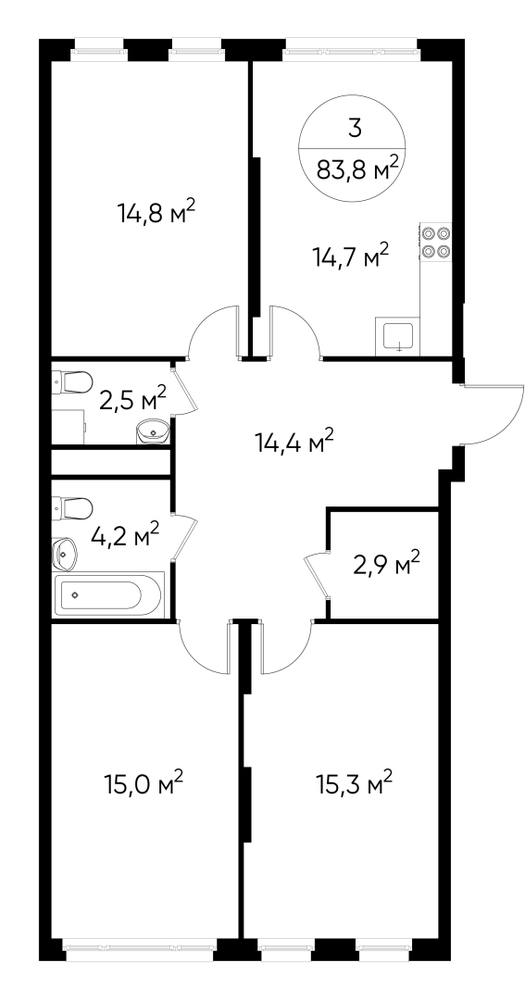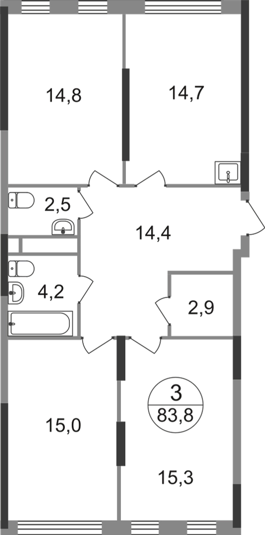 Продается трехкомнатная квартира в городе-парке "Переделкино Ближнее". Общая площадь квартиры - 83,8 кв. м, этаж 10 из 17. Срок сдачи - 1 квартал 2028 года. Тип дома - монолитный. Корпус расположен в новой 13 фазе строительства и состоит из 8 секций с переменной этажностью 12-17 этажей. Все секции без отделки. Около 13 фазы запланировано строительство многоуровневого паркинга на 300 м/мест. 13 фаза имеет уникальное расположение и находится непосредственно на берегу Федосьинского пруда, который является сердцем города-парка «Переделкино Ближнее». Город-парк "Переделкино Ближнее" расположен в 8 км от МКАД по Боровскому шоссе. ТРАНСПОРТНАЯ ДОСТУПНОСТЬ: - 15 минут пешком до станции МЦД-4 «Мичуринец» - 25 минут пешком до станции метро «Рассказовка» Солнцевской линии - 30 минут до центра Москвы - 2026 г. - открытие трассы Солнцево-Бутово-Варшавское шоссе РАЗВИТАЯ СОЦИАЛЬНАЯ ИНФРАСТРУКТУРА: - 7 детских садов, 3 школы - банки, продуктовые магазины, аптеки, фитнес центры, салоны красоты и пр БЛАГОУСТРОЙСТВО: - дворы без машин - игровые зоны и развивающие детские площадки - зоны для созерцательного и медитативного отдыха - зоны для занятий спортом ОСОБЕННОСТИ АРХИТЕКТУРЫ: - высокие потолки от 3,03 м - безбарьерные входные группы - колясочные в каждой входной группе - кладовые помещения расположены на -1 этаже каждой секции - в каждой секции 2 лифта: 1 пассажирский, 1 грузовой - на фасаде предусмотрены корзины для установки кондиционеров АВТОРСКИЙ ДИЗАЙН: Входные группы выполнены по авторскому дизайну, благодаря панорамному остеклению наполнены естественным светом. В каждой входной группе будет располагаться комфортабельная зона ожидания с возможностью зарядить электронные устройства, почтовые ящики, колясочная, акцентные пуфы и столик.О застройщике