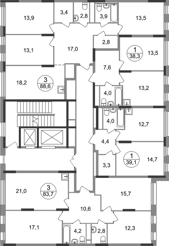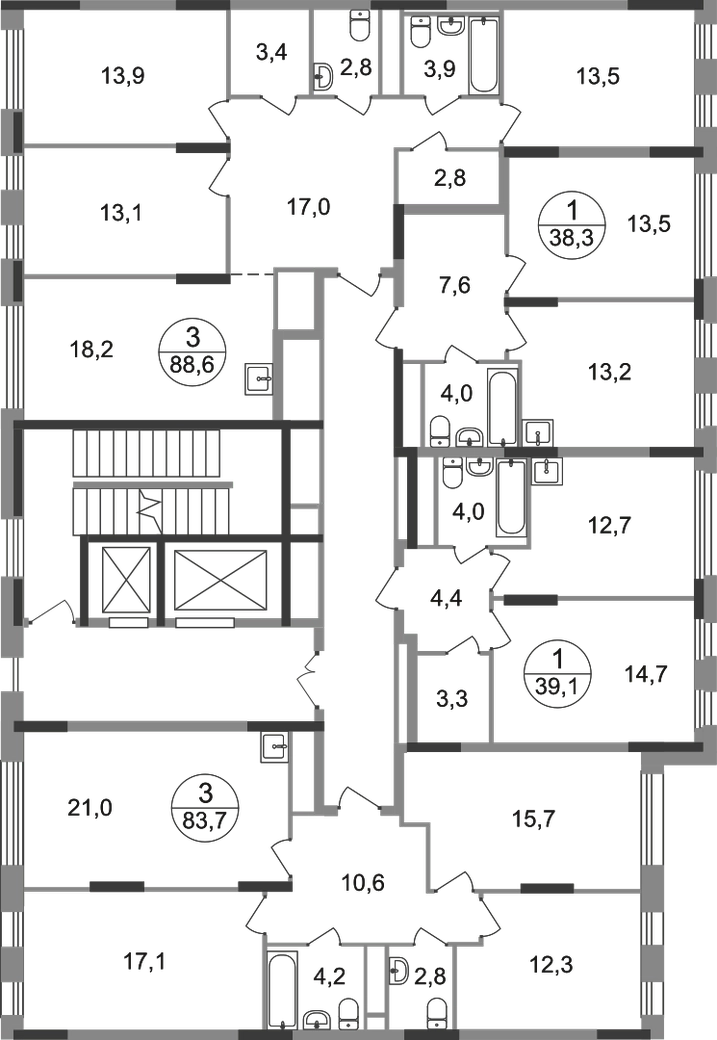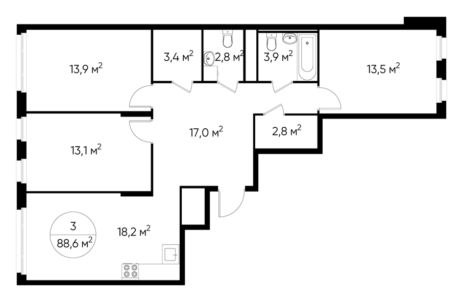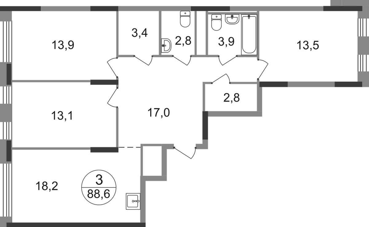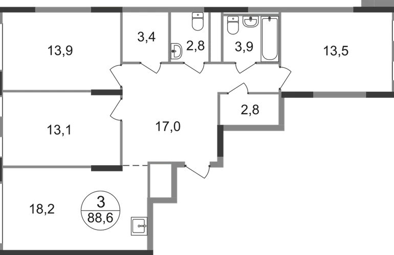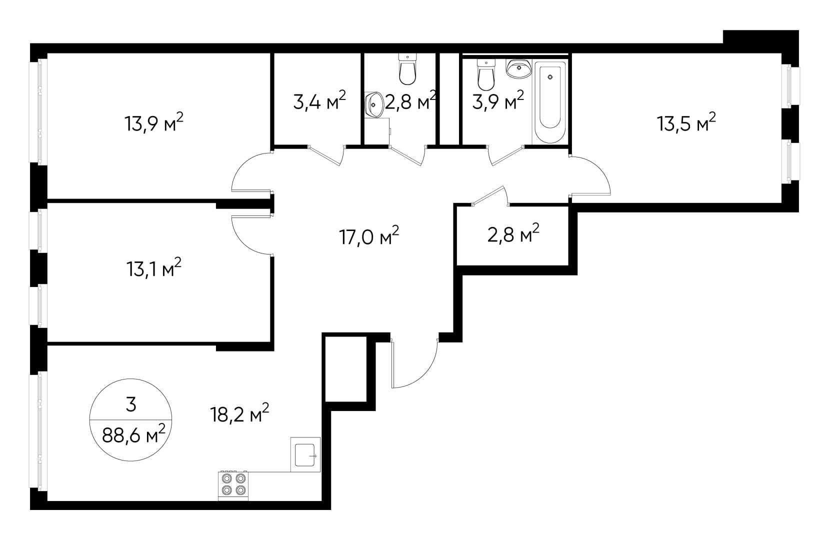 Продается трехкомнатная квартира в городе-парке "Переделкино Ближнее". Общая площадь квартиры - 88,6 кв. м, этаж 3 из 17. Срок сдачи - 1 квартал 2028 года. Тип дома - монолитный. Корпус расположен в новой 13 фазе строительства и состоит из 8 секций с переменной этажностью 12-17 этажей. Все секции без отделки. Около 13 фазы запланировано строительство многоуровневого паркинга на 300 м/мест. 13 фаза имеет уникальное расположение и находится непосредственно на берегу Федосьинского пруда, который является сердцем города-парка «Переделкино Ближнее». Город-парк "Переделкино Ближнее" расположен в 8 км от МКАД по Боровскому шоссе. ТРАНСПОРТНАЯ ДОСТУПНОСТЬ: - 15 минут пешком до станции МЦД-4 «Мичуринец» - 25 минут пешком до станции метро «Рассказовка» Солнцевской линии - 30 минут до центра Москвы - 2026 г. - открытие трассы Солнцево-Бутово-Варшавское шоссе РАЗВИТАЯ СОЦИАЛЬНАЯ ИНФРАСТРУКТУРА: - 7 детских садов, 3 школы - банки, продуктовые магазины, аптеки, фитнес центры, салоны красоты и пр БЛАГОУСТРОЙСТВО: - дворы без машин - игровые зоны и развивающие детские площадки - зоны для созерцательного и медитативного отдыха - зоны для занятий спортом ОСОБЕННОСТИ АРХИТЕКТУРЫ: - высокие потолки от 3,03 м - безбарьерные входные группы - колясочные в каждой входной группе - кладовые помещения расположены на -1 этаже каждой секции - в каждой секции 2 лифта: 1 пассажирский, 1 грузовой - на фасаде предусмотрены корзины для установки кондиционеров АВТОРСКИЙ ДИЗАЙН: Входные группы выполнены по авторскому дизайну, благодаря панорамному остеклению наполнены естественным светом. В каждой входной группе будет располагаться комфортабельная зона ожидания с возможностью зарядить электронные устройства, почтовые ящики, колясочная, акцентные пуфы и столик.О застройщике