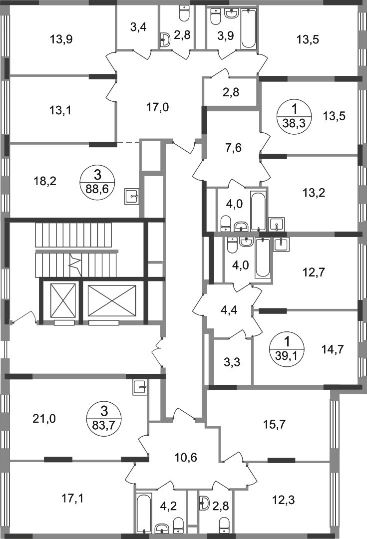 Продается трехкомнатная квартира в городе-парке "Переделкино Ближнее". Общая площадь квартиры - 88,6 кв. м, этаж 5 из 17. Срок сдачи - 1 квартал 2028 года. Тип дома - монолитный. Корпус расположен в новой 13 фазе строительства и состоит из 8 секций с переменной этажностью 12-17 этажей. Все секции без отделки. Около 13 фазы запланировано строительство многоуровневого паркинга на 300 м/мест. 13 фаза имеет уникальное расположение и находится непосредственно на берегу Федосьинского пруда, который является сердцем города-парка «Переделкино Ближнее». Город-парк "Переделкино Ближнее" расположен в 8 км от МКАД по Боровскому шоссе. ТРАНСПОРТНАЯ ДОСТУПНОСТЬ: - 15 минут пешком до станции МЦД-4 «Мичуринец» - 25 минут пешком до станции метро «Рассказовка» Солнцевской линии - 30 минут до центра Москвы - 2026 г. - открытие трассы Солнцево-Бутово-Варшавское шоссе РАЗВИТАЯ СОЦИАЛЬНАЯ ИНФРАСТРУКТУРА: - 7 детских садов, 3 школы - банки, продуктовые магазины, аптеки, фитнес центры, салоны красоты и пр БЛАГОУСТРОЙСТВО: - дворы без машин - игровые зоны и развивающие детские площадки - зоны для созерцательного и медитативного отдыха - зоны для занятий спортом ОСОБЕННОСТИ АРХИТЕКТУРЫ: - высокие потолки от 3,03 м - безбарьерные входные группы - колясочные в каждой входной группе - кладовые помещения расположены на -1 этаже каждой секции - в каждой секции 2 лифта: 1 пассажирский, 1 грузовой - на фасаде предусмотрены корзины для установки кондиционеров АВТОРСКИЙ ДИЗАЙН: Входные группы выполнены по авторскому дизайну, благодаря панорамному остеклению наполнены естественным светом. В каждой входной группе будет располагаться комфортабельная зона ожидания с возможностью зарядить электронные устройства, почтовые ящики, колясочная, акцентные пуфы и столик.О застройщике