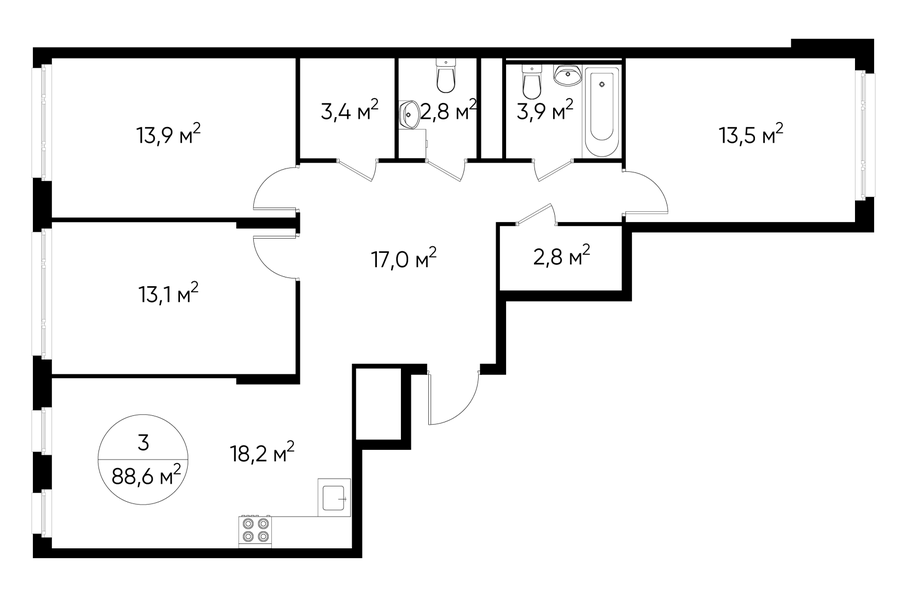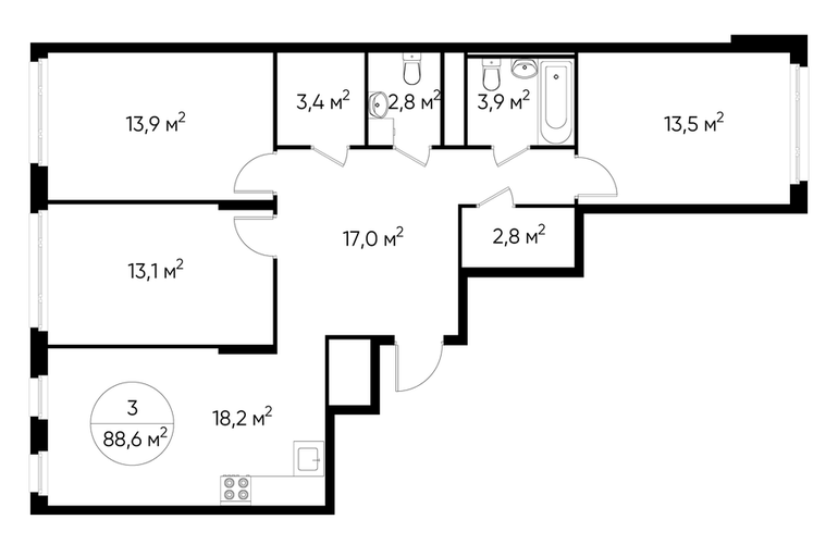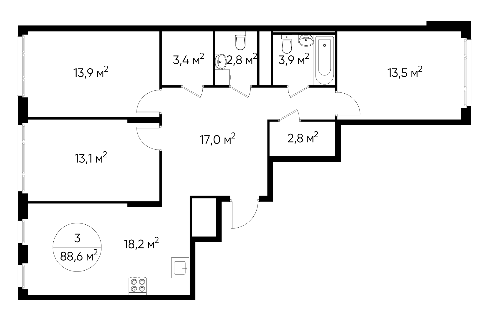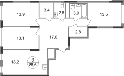 Продается трехкомнатная квартира в городе-парке "Переделкино Ближнее". Общая площадь квартиры - 88,6 кв. м, этаж 9 из 17. Срок сдачи - 1 квартал 2028 года. Тип дома - монолитный. Корпус расположен в новой 13 фазе строительства и состоит из 8 секций с переменной этажностью 12-17 этажей. Все секции без отделки. Около 13 фазы запланировано строительство многоуровневого паркинга на 300 м/мест. 13 фаза имеет уникальное расположение и находится непосредственно на берегу Федосьинского пруда, который является сердцем города-парка «Переделкино Ближнее». Город-парк "Переделкино Ближнее" расположен в 8 км от МКАД по Боровскому шоссе. ТРАНСПОРТНАЯ ДОСТУПНОСТЬ: - 15 минут пешком до станции МЦД-4 «Мичуринец» - 25 минут пешком до станции метро «Рассказовка» Солнцевской линии - 30 минут до центра Москвы - 2026 г. - открытие трассы Солнцево-Бутово-Варшавское шоссе РАЗВИТАЯ СОЦИАЛЬНАЯ ИНФРАСТРУКТУРА: - 7 детских садов, 3 школы - банки, продуктовые магазины, аптеки, фитнес центры, салоны красоты и пр БЛАГОУСТРОЙСТВО: - дворы без машин - игровые зоны и развивающие детские площадки - зоны для созерцательного и медитативного отдыха - зоны для занятий спортом ОСОБЕННОСТИ АРХИТЕКТУРЫ: - высокие потолки от 3,03 м - безбарьерные входные группы - колясочные в каждой входной группе - кладовые помещения расположены на -1 этаже каждой секции - в каждой секции 2 лифта: 1 пассажирский, 1 грузовой - на фасаде предусмотрены корзины для установки кондиционеров АВТОРСКИЙ ДИЗАЙН: Входные группы выполнены по авторскому дизайну, благодаря панорамному остеклению наполнены естественным светом. В каждой входной группе будет располагаться комфортабельная зона ожидания с возможностью зарядить электронные устройства, почтовые ящики, колясочная, акцентные пуфы и столик.О застройщике