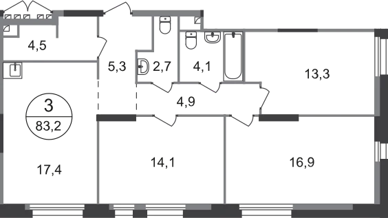 Продается трехкомнатная квартира без отделки в 9 фазе города-парка "Первый Московский". Общая площадь квартиры - 83,2 кв. м, этаж 2 из 19. Срок сдачи - 2 квартал 2026 года. Тип дома - монолитный. Цена указана при 100% оплате. Город-парк "Первый Московский" расположен всего в 7 км по Киевскому шоссе (Новая Москва). Из города-парка есть удобный выезд на Киевское шоссе. ТРАНСПОРТНАЯ ДОСТУПНОСТЬ: - 5 мин. на личном автомобиле или 10 мин. на автобусе №189 и №876 до станции метро «Филатов Луг» - 20 мин. пешком до станции метро «Филатов Луг» ИНФРАСТРУКТУРА И БЛАГОУСТРОЙСТВО: 9 фаза сочетает в себе максимальную близость данной фазы строительства к парку Филатов луг. Основной акцент в благоустройстве сделан на разнообразные детские площадки и развивающие комплексы, с зонами для активного и спокойного отдыха взрослых. В доме предусмотрен подвальный этаж для кладовых помещений. В корпусе предусмотрено 2 коммерческих помещения свободного назначения на 1 этаже. АВТОРСКИЙ ДИЗАЙН: Входные группы выполнены по авторскому дизайну, оснащены системой «тёплый пол». В каждой входной группе будет располагаться комфортабельная зона ожидания. При входе предусмотрено помещение для хранения колясок и на -1 этаже располагается велопарковка.О застройщике