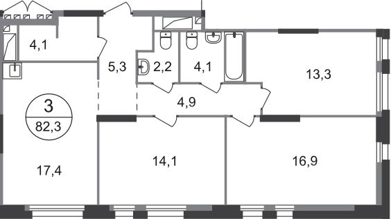 Продается трехкомнатная квартира без отделки в 9 фазе города-парка "Первый Московский". Общая площадь квартиры - 82,3 кв. м, этаж 8 из 19. Срок сдачи - 2 квартал 2026 года. Тип дома - монолитный. Цена указана при 100% оплате. Город-парк "Первый Московский" расположен всего в 7 км по Киевскому шоссе (Новая Москва). Из города-парка есть удобный выезд на Киевское шоссе. ТРАНСПОРТНАЯ ДОСТУПНОСТЬ: - 5 мин. на личном автомобиле или 10 мин. на автобусе №189 и №876 до станции метро «Филатов Луг» - 20 мин. пешком до станции метро «Филатов Луг» ИНФРАСТРУКТУРА И БЛАГОУСТРОЙСТВО: 9 фаза сочетает в себе максимальную близость данной фазы строительства к парку Филатов луг. Основной акцент в благоустройстве сделан на разнообразные детские площадки и развивающие комплексы, с зонами для активного и спокойного отдыха взрослых. В доме предусмотрен подвальный этаж для кладовых помещений. В корпусе предусмотрено 2 коммерческих помещения свободного назначения на 1 этаже. АВТОРСКИЙ ДИЗАЙН: Входные группы выполнены по авторскому дизайну, оснащены системой «тёплый пол». В каждой входной группе будет располагаться комфортабельная зона ожидания. При входе предусмотрено помещение для хранения колясок и на -1 этаже располагается велопарковка.О застройщике