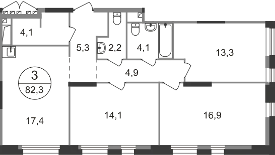 Продается трехкомнатная квартира без отделки в 9 фазе города-парка "Первый Московский". Общая площадь квартиры - 82,3 кв. м, этаж 13 из 19. Срок сдачи - 2 квартал 2026 года. Тип дома - монолитный. Цена указана при 100% оплате. Город-парк "Первый Московский" расположен всего в 7 км по Киевскому шоссе (Новая Москва). Из города-парка есть удобный выезд на Киевское шоссе. ТРАНСПОРТНАЯ ДОСТУПНОСТЬ: - 5 мин. на личном автомобиле или 10 мин. на автобусе №189 и №876 до станции метро «Филатов Луг» - 20 мин. пешком до станции метро «Филатов Луг» ИНФРАСТРУКТУРА И БЛАГОУСТРОЙСТВО: 9 фаза сочетает в себе максимальную близость данной фазы строительства к парку Филатов луг. Основной акцент в благоустройстве сделан на разнообразные детские площадки и развивающие комплексы, с зонами для активного и спокойного отдыха взрослых. В доме предусмотрен подвальный этаж для кладовых помещений. В корпусе предусмотрено 2 коммерческих помещения свободного назначения на 1 этаже. АВТОРСКИЙ ДИЗАЙН: Входные группы выполнены по авторскому дизайну, оснащены системой «тёплый пол». В каждой входной группе будет располагаться комфортабельная зона ожидания. При входе предусмотрено помещение для хранения колясок и на -1 этаже располагается велопарковка.О застройщике