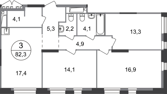 Продается трехкомнатная квартира без отделки в 9 фазе города-парка "Первый Московский". Общая площадь квартиры - 82,3 кв. м, этаж 18 из 19. Срок сдачи - 2 квартал 2026 года. Тип дома - монолитный. Цена указана при 100% оплате. Город-парк "Первый Московский" расположен всего в 7 км по Киевскому шоссе (Новая Москва). Из города-парка есть удобный выезд на Киевское шоссе. ТРАНСПОРТНАЯ ДОСТУПНОСТЬ: - 5 мин. на личном автомобиле или 10 мин. на автобусе №189 и №876 до станции метро «Филатов Луг» - 20 мин. пешком до станции метро «Филатов Луг» ИНФРАСТРУКТУРА И БЛАГОУСТРОЙСТВО: 9 фаза сочетает в себе максимальную близость данной фазы строительства к парку Филатов луг. Основной акцент в благоустройстве сделан на разнообразные детские площадки и развивающие комплексы, с зонами для активного и спокойного отдыха взрослых. В доме предусмотрен подвальный этаж для кладовых помещений. В корпусе предусмотрено 2 коммерческих помещения свободного назначения на 1 этаже. АВТОРСКИЙ ДИЗАЙН: Входные группы выполнены по авторскому дизайну, оснащены системой «тёплый пол». В каждой входной группе будет располагаться комфортабельная зона ожидания. При входе предусмотрено помещение для хранения колясок и на -1 этаже располагается велопарковка.О застройщике