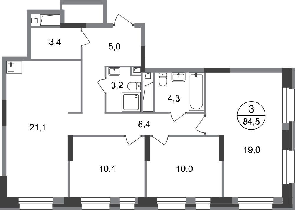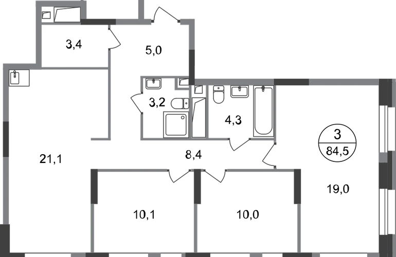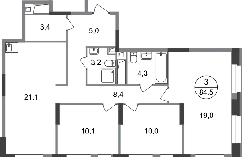 Продается трехкомнатная квартира с отделкой в 7 фазе города-парка "Первый Московский". Общая площадь квартиры - 84,5 кв. м, этаж 3 из 20. Срок сдачи - 1 квартал 2027 года. Тип дома - монолитный. Цена указана при 100% оплате. Новый корпус состоит из 3 секций: - 1 и 2 секции — с отделкой White Box с возможностью приобретения чистовой отделки за дополнительную плату - 3 секция — без отделки Город-парк "Первый Московский" расположен всего в 7 км по Киевскому шоссе (Новая Москва). Из города-парка прямой выезд на Киевское шоссе и трассу Солнцево-Бутово-Варшавское шоссе. ТРАНСПОРТНАЯ ДОСТУПНОСТЬ: - 5 мин. на личном автомобиле или 10 мин. на автобусе №189 и №147 до станции метро «Филатов Луг» - 25 мин. пешком до станции метро «Филатов Луг» ИНФРАСТРУКТУРА: Около 7 фазы запланировано строительство детского сада, школы, 2 многоуровневых паркингов. Также на территории проекта есть все необходимые объекты действующей социальной и бытовой инфраструктуры: 8 детских садов, 5 школ, ТЦ, магазины, паркинги, аптеки и др. БЛАГОУСТРОЙСТВО: - Дворы без машин - Игровые зоны для детей, зоны для занятия спортом, зоны для отдыха с навесами/качелями - Детские площадки разделены по возрастным группам - Пешеходный и веломаршрут с двухполосной велодорожкой 2,5 м в ширину - Озеленение с растениями всесезонного цветения ОСОБЕННОСТИ АРХИТЕКТУРЫ: В каждой секции 3 корпуса предусмотрены: - колясочные во входных группах - кладовые помещения с -1 по 20 этажи - коммерческие помещения на 1 этажах - по 4 лифта: 2 пассажирских, 2 грузовых - видеонаблюдение, установленное в холлах первых этажей, у подъездов и на прилегающей территории АВТОРСКИЙ ДИЗАЙН: Входные группы выполнены по авторскому дизайну, оснащены системой «тёплый пол». В каждой входной группе будет располагаться комфортабельная зона ожидания с мягким диваном, акцентными пуфами и столиком.О застройщике