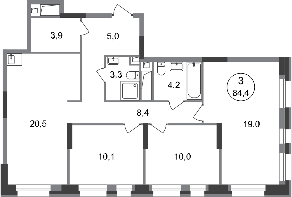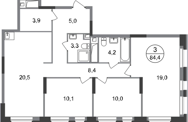 Продается трехкомнатная квартира без отделки в 7 фазе города-парка "Первый Московский". Общая площадь квартиры - 84,4 кв. м, этаж 5 из 20. Срок сдачи - 1 квартал 2027 года. Тип дома - монолитный. Только до 12.05.25 г. - АКЦИЯ «ПОЙМАЙ МАЙ» : -выгодные условия на бронирование квартиры -бесплатная регистрация договора -участие в розыгрыше с гарантированными подарками *более подробную информацию об акции уточняйте в офисе продаж Новый корпус состоит из 3х секций: - 1 и 2 секции с отделкой White Box с возможностью приобретения чистовой отделки за дополнительную плату - 3 секция без отделки Город-парк "Первый Московский" расположен всего в 7 км по Киевскому шоссе (Новая Москва). Из города-парка прямой выезд на Киевское шоссе и трассу Солнцево-Бутово-Варшавское шоссе. ТРАНСПОРТНАЯ ДОСТУПНОСТЬ: - 5 мин. на личном автомобиле или 10 мин. на автобусе №189 и №147 до станции метро «Филатов Луг» - 25 мин. пешком до станции метро «Филатов Луг» ИНФРАСТРУКТУРА: Около 7 фазы запланировано строительство детского сада, школы, 2 многоуровневых паркинга. Также на территории проекта есть все необходимые объекты действующей социальной и бытовой инфраструктуры: 8 детских садов, 5 школ, тц, магазины, паркинги, аптеки и др. БЛАГОУСТРОЙСТВО: - Дворы без машин - Игровые зоны для детей, зоны для занятия спортом, зоны для отдыха с навесами/качелями - Детские площадки разделены по возрастным группам - Пешеходный и вело-маршрут с двуполостной велодорожкой 2,5 м. в ширину - Озеленение с растениями всесезонного цветения ОСОБЕННОСТИ АРХИТЕКТУРЫ: В каждой секции 3 корпуса предусмотрены: - колясочные во входных группах - кладовые помещения с -1 по 20 этажи - коммерческие помещения на 1 этажах - по 4 лифта: 2 пассажирских, 2 грузовых - видеонаблюдение установленное в холлах первых этажей, у подъездов и прилегающей территории АВТОРСКИЙ ДИЗАЙН: Входные группы выполнены по авторскому дизайну, оснащены системой «тёплый пол». В каждой входной группе будет располагаться комфортабельная зона ожидания с мягким диваном, акцентными пуфами и столиком.О застройщике